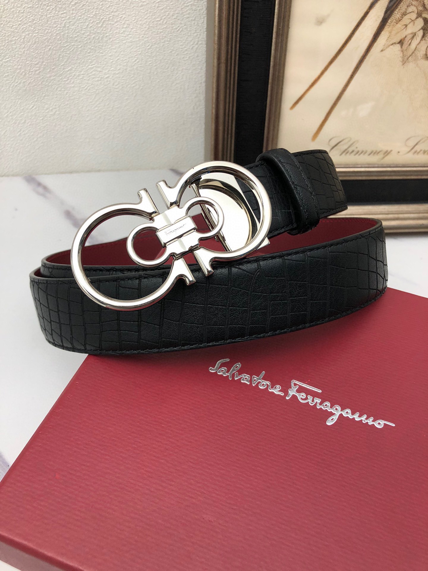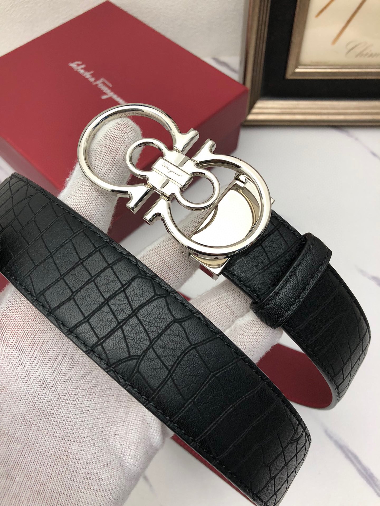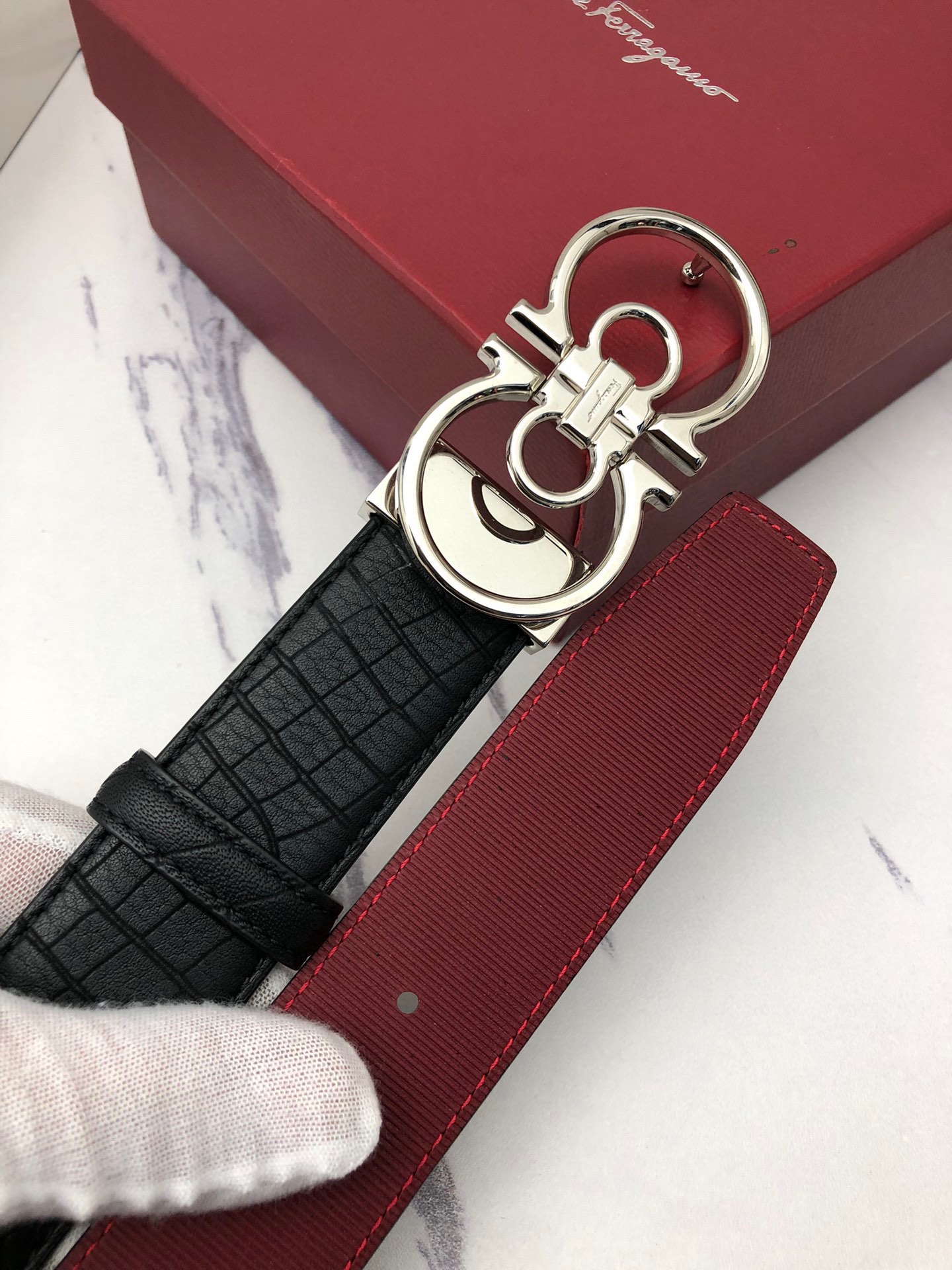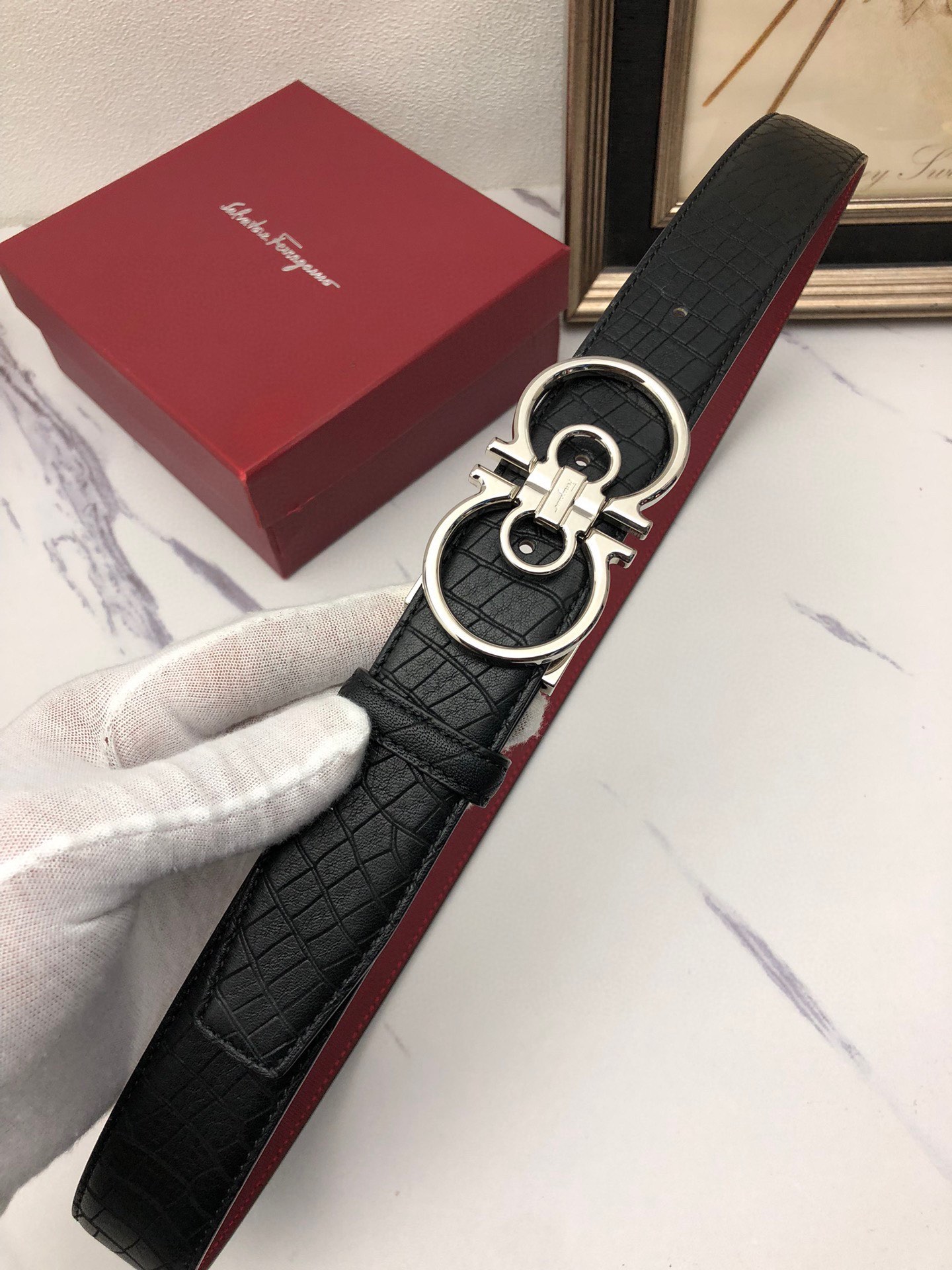 這款皮帶是AAAAA 1:1 質量(非常棒). 使用了和原版一模一樣的材料. 商標部分也保持了和菲拉格慕/Salvatore Ferragamo一樣. 圖片拍攝是實物皮帶拍攝, 您所收到的實物保證和我們圖片一模一樣.
