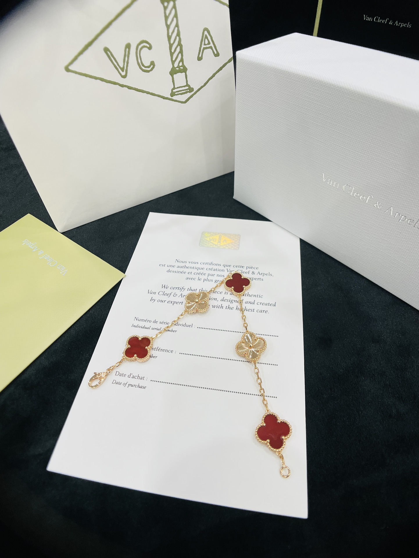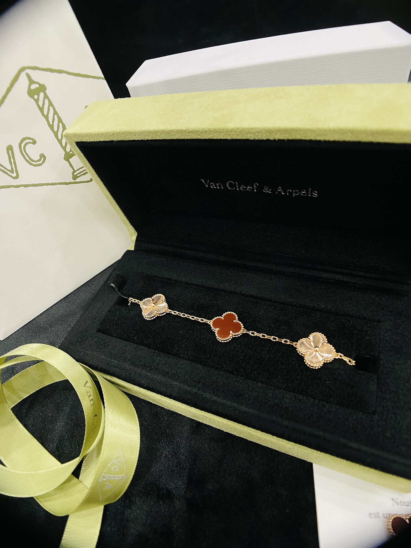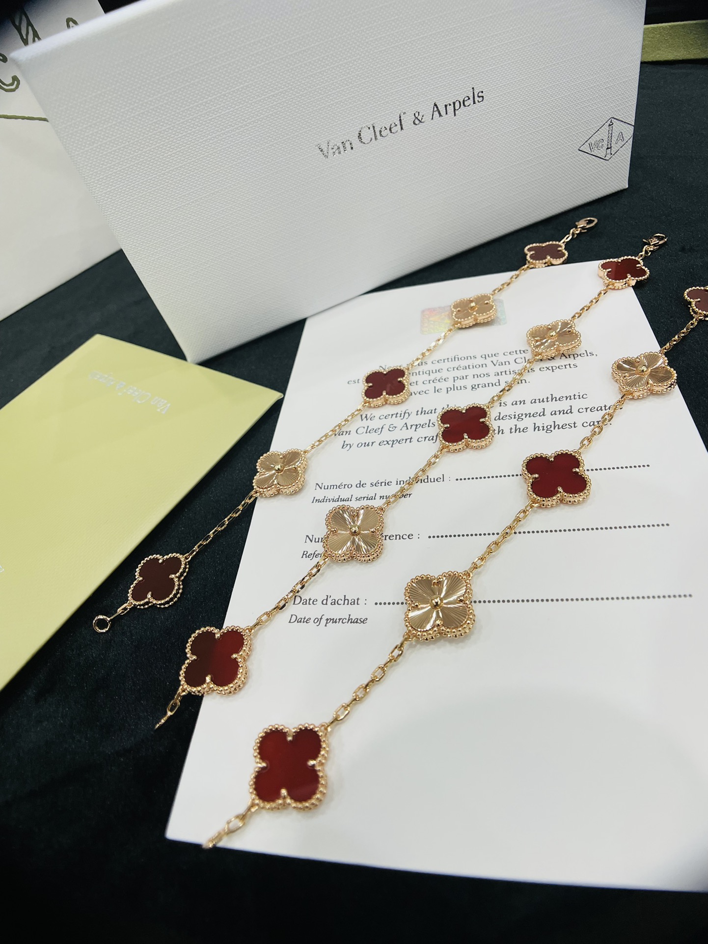 這款首飾是AAAAA 1:1 質量(非常棒). 使用了和原版一模一樣的材料. 商標部分也保持了和梵克雅寶/Van Cleef & Arpels一樣. 圖片拍攝是實物首飾拍攝, 您所收到的實物保證和我們圖片一模一樣.