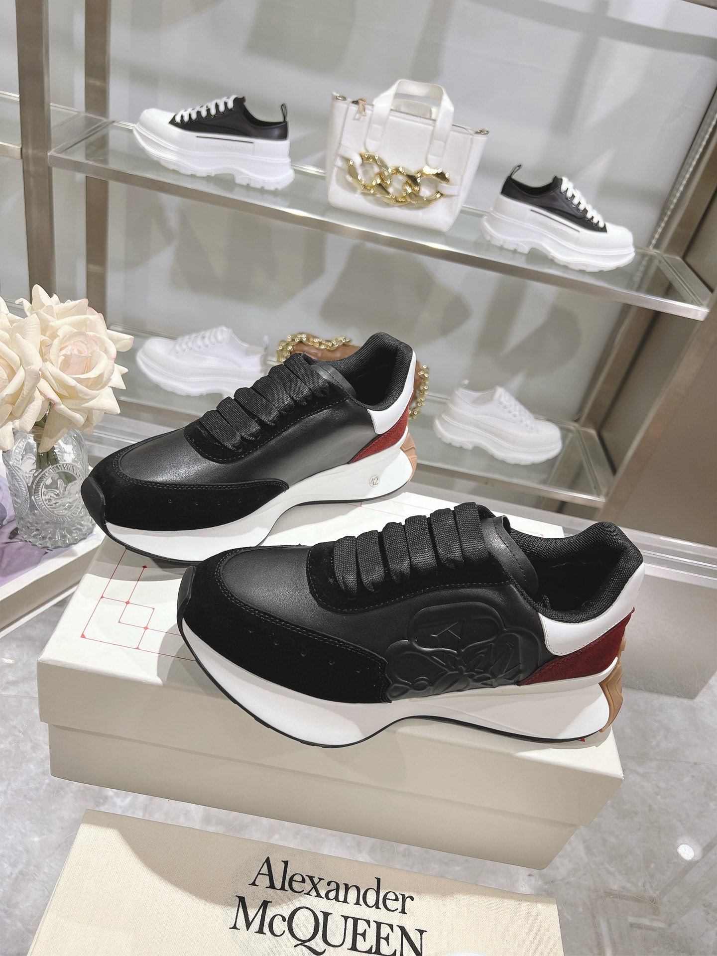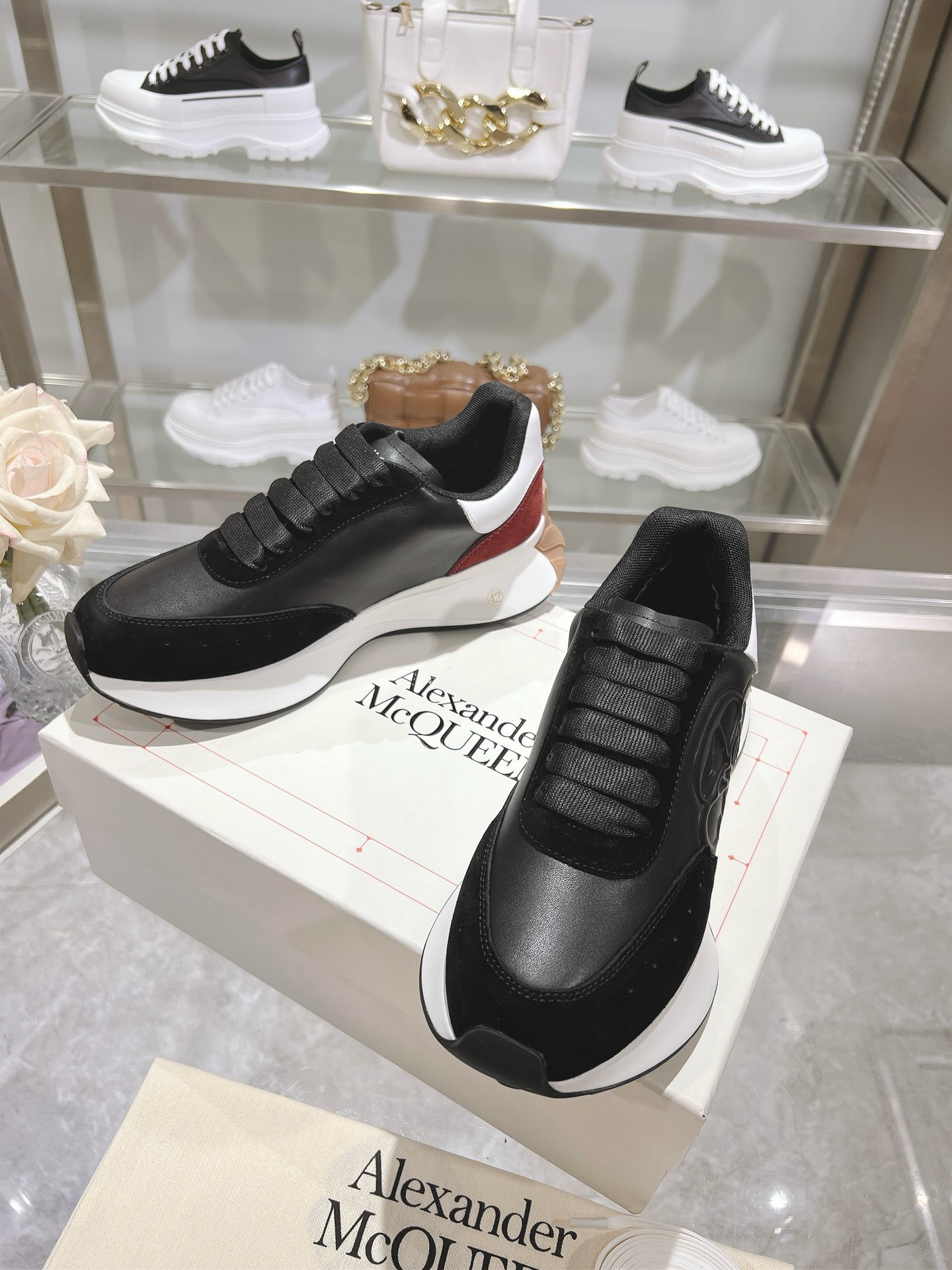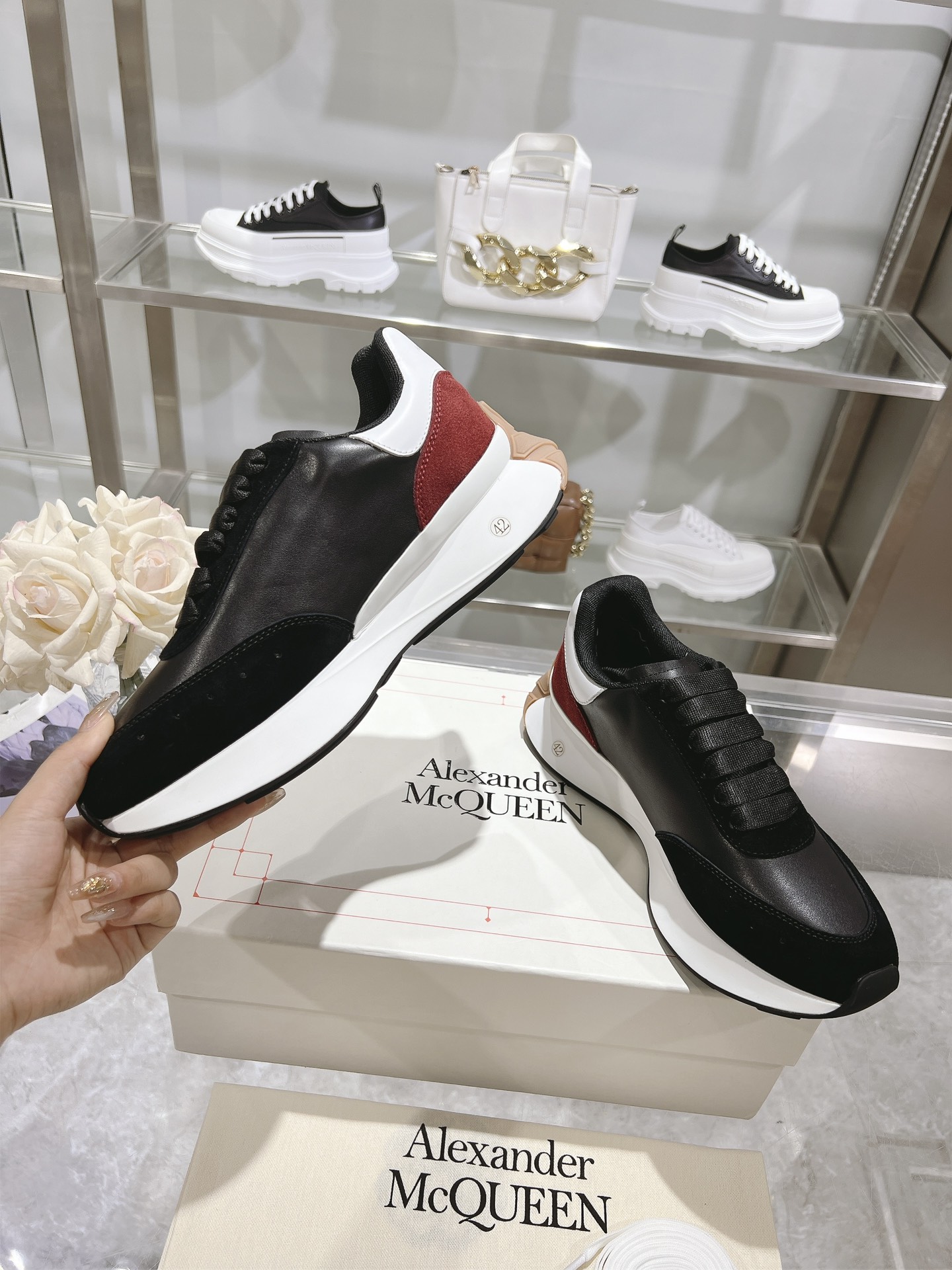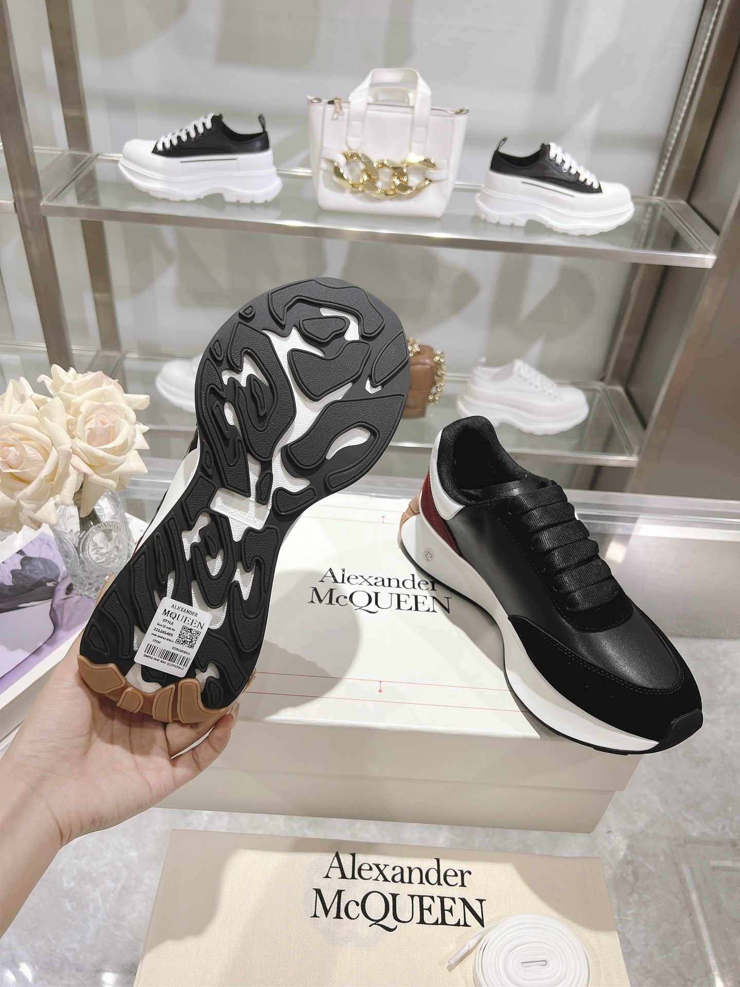 這款鞋子是AAAAA 1:1 質量(非常棒). 使用了和原版一模一樣的材料. 商標部分也保持了和麥奎恩/McQueen一樣. 圖片拍攝是實物鞋子拍攝, 您所收到的實物保證和我們圖片一模一樣.