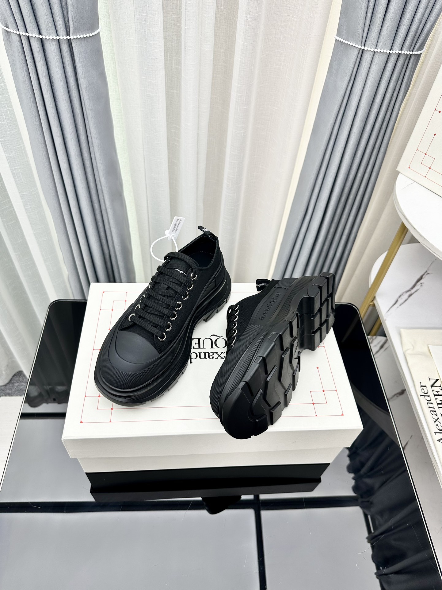 這款鞋子是AAAAA 1:1 質量(非常棒). 使用了和原版一模一樣的材料. 商標部分也保持了和麥奎恩/McQueen一樣. 圖片拍攝是實物鞋子拍攝, 您所收到的實物保證和我們圖片一模一樣.