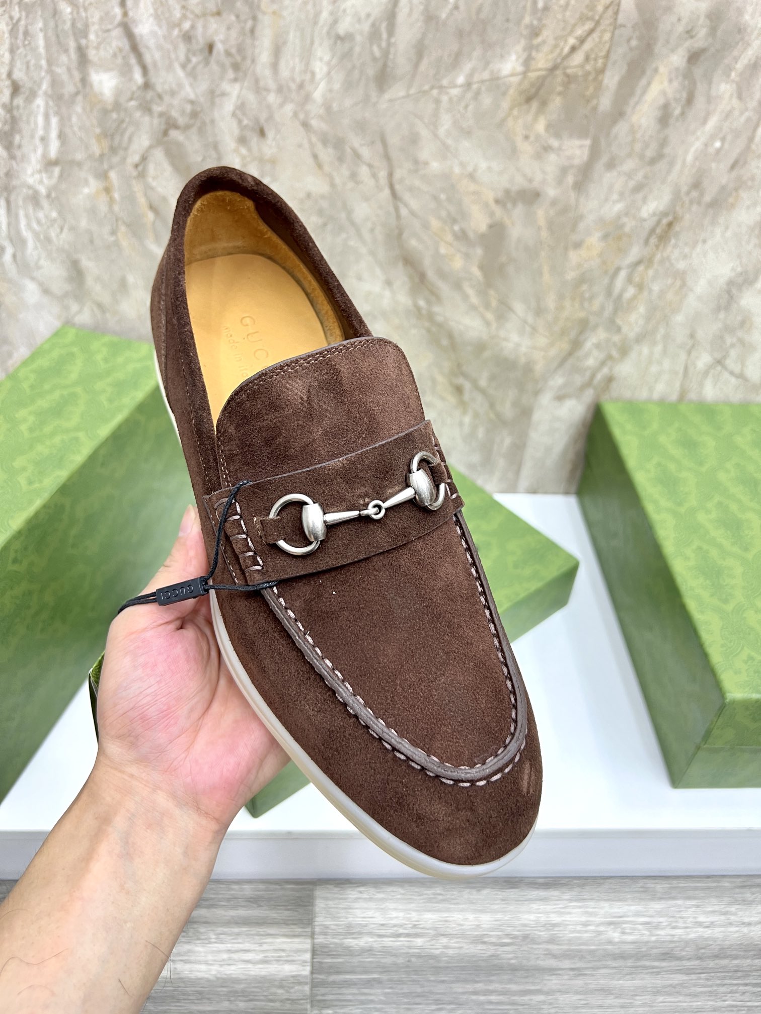 這款鞋子是AAAAA 1:1 質量(非常棒). 使用了和原版一模一樣的材料. 商標部分也保持了和古奇/Gucci一樣. 圖片拍攝是實物鞋子拍攝, 您所收到的實物保證和我們圖片一模一樣.