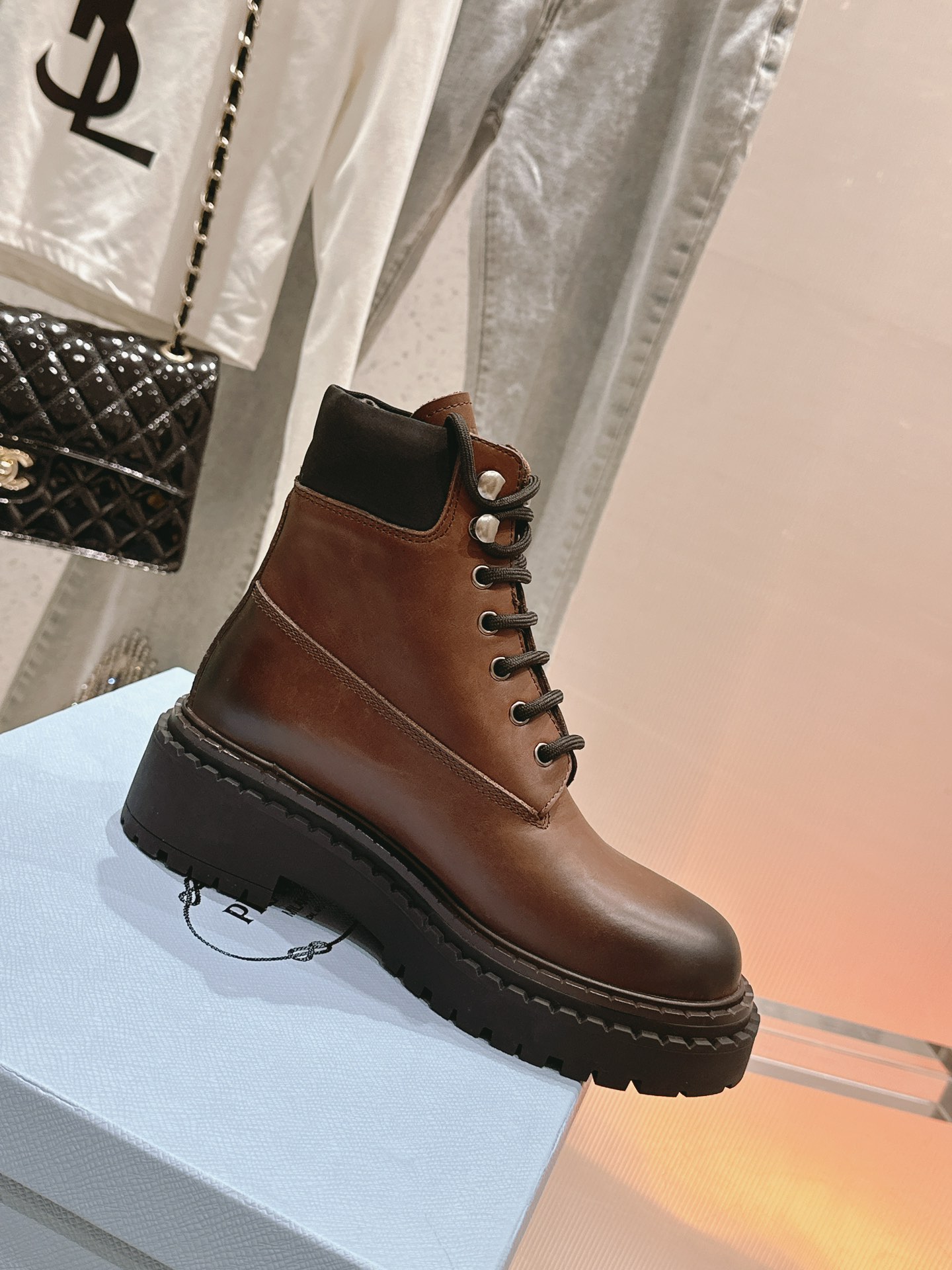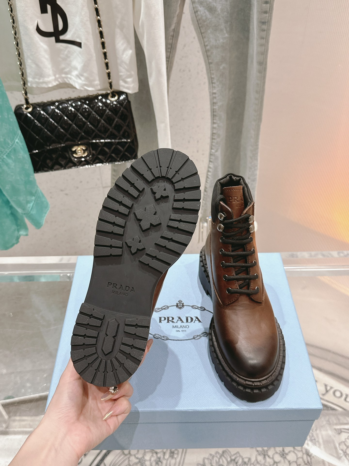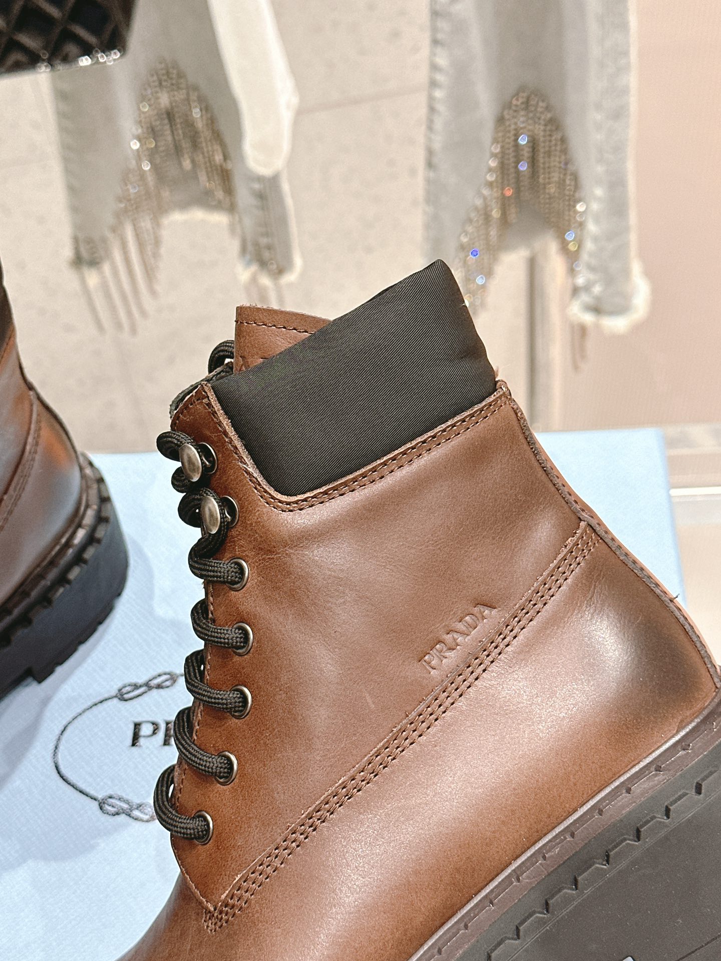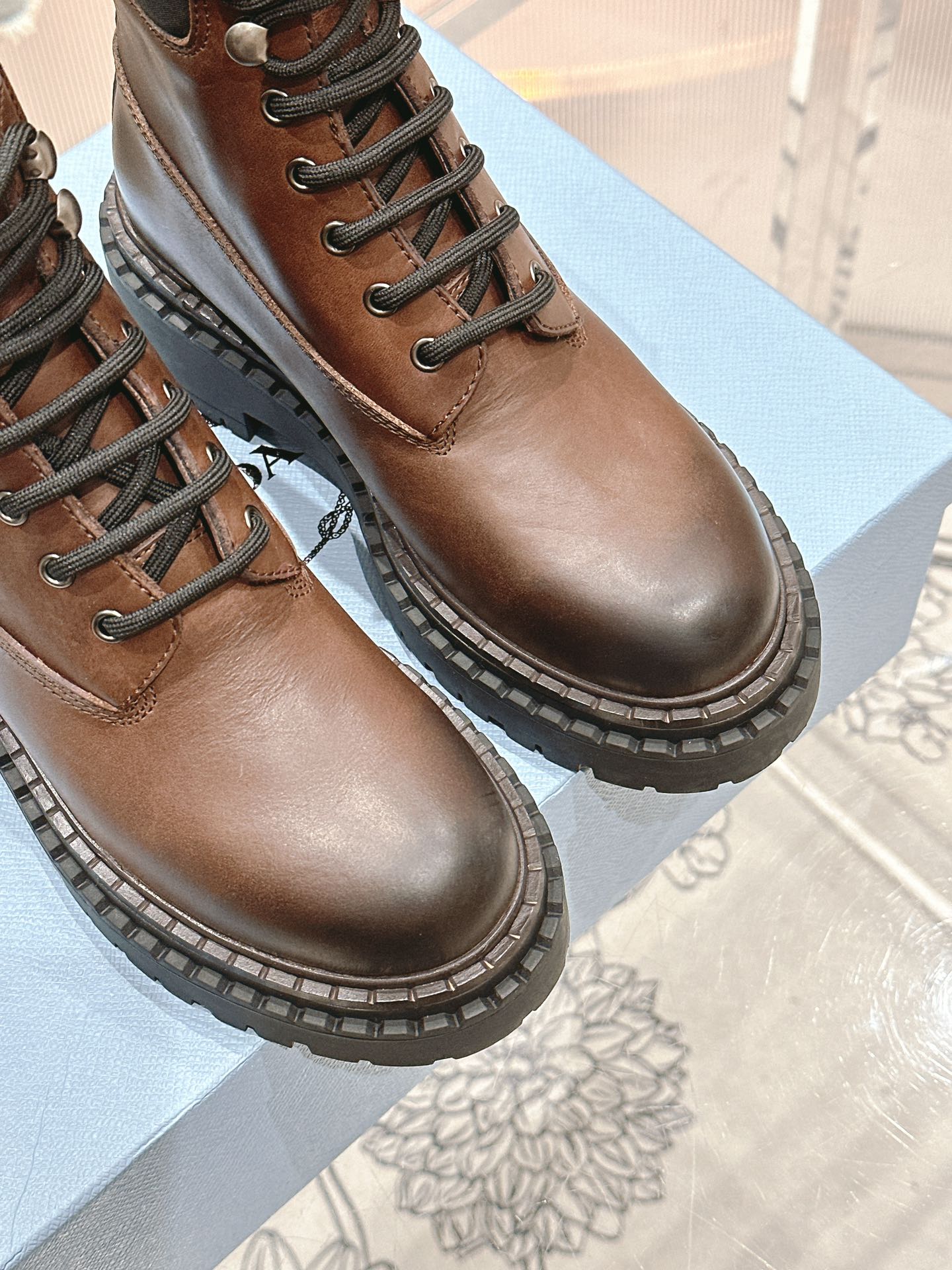這款鞋子是AAAAA 1:1 質量(非常棒). 使用了和原版一模一樣的材料. 商標部分也保持了和普拉達/Prada一樣. 圖片拍攝是實物鞋子拍攝, 您所收到的實物保證和我們圖片一模一樣.