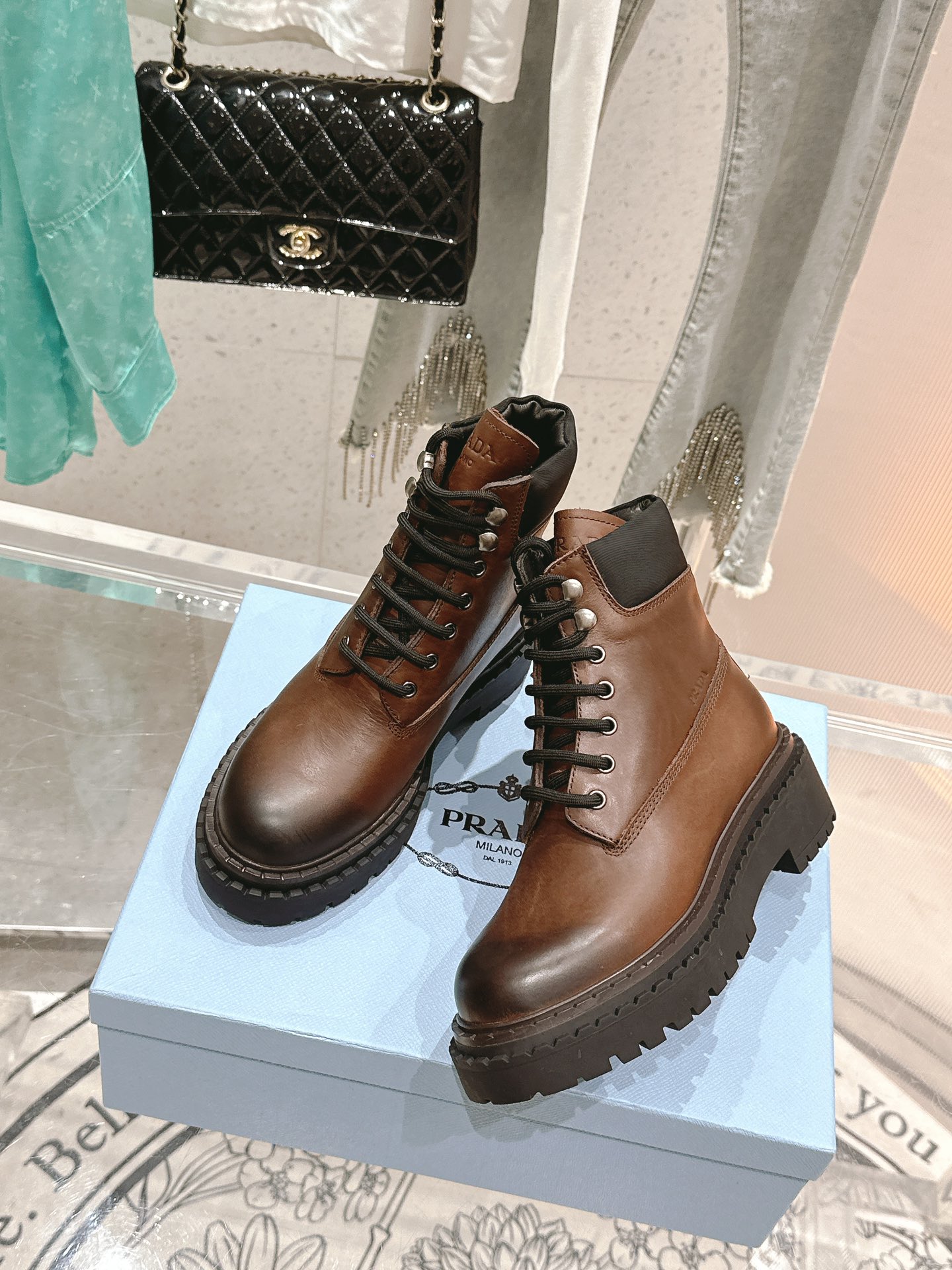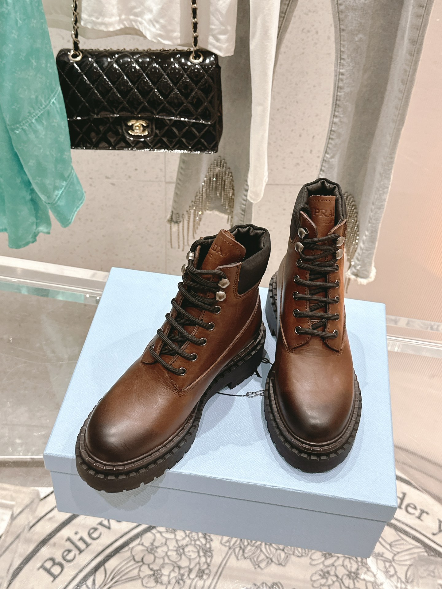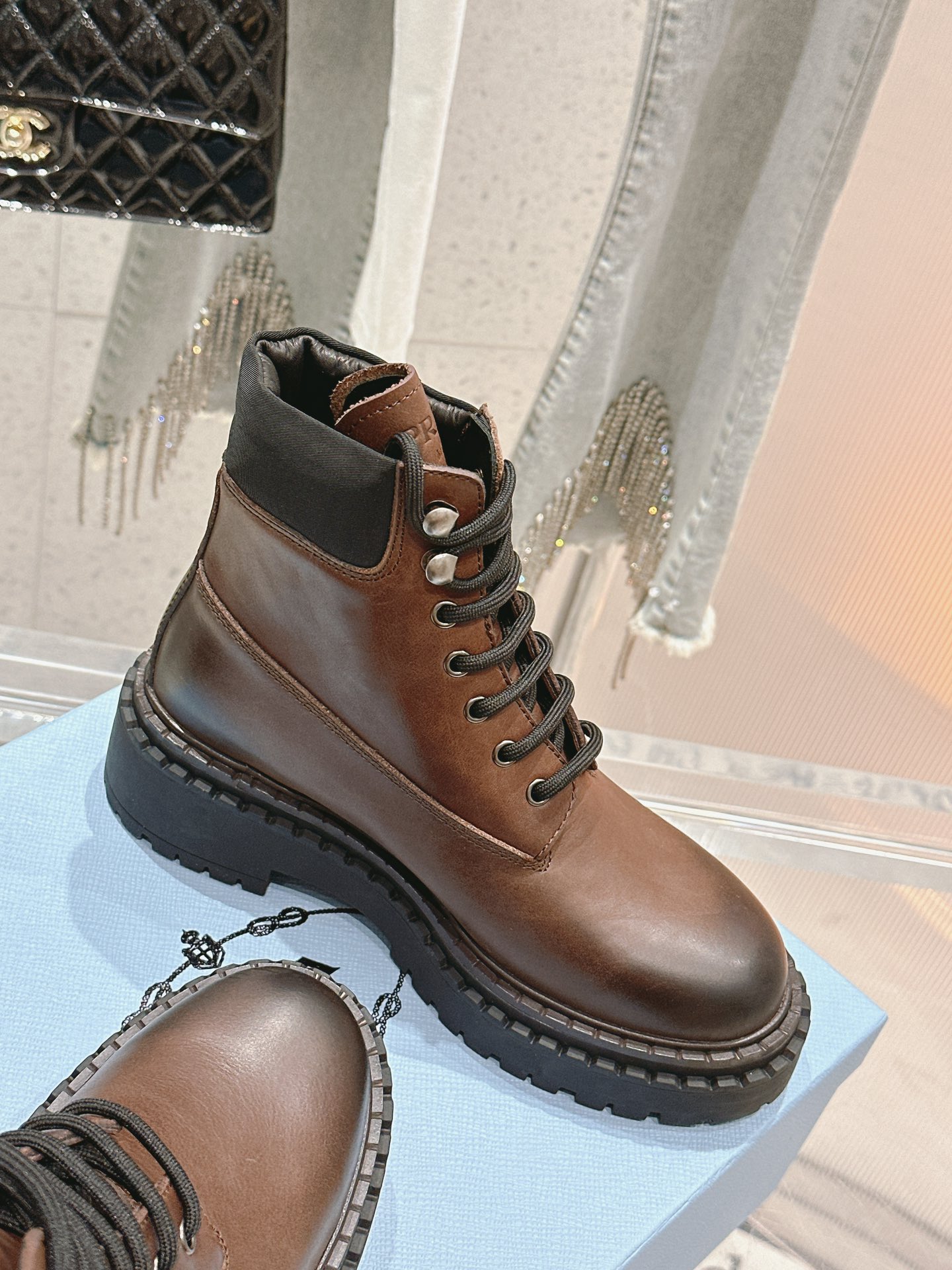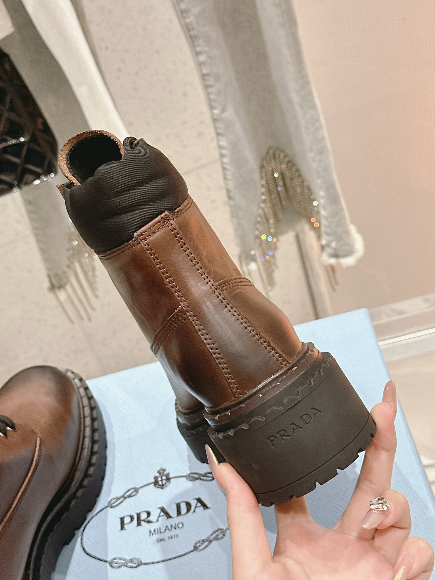 這款鞋子是AAAAA 1:1 質量(非常棒). 使用了和原版一模一樣的材料. 商標部分也保持了和普拉達/Prada一樣. 圖片拍攝是實物鞋子拍攝, 您所收到的實物保證和我們圖片一模一樣.