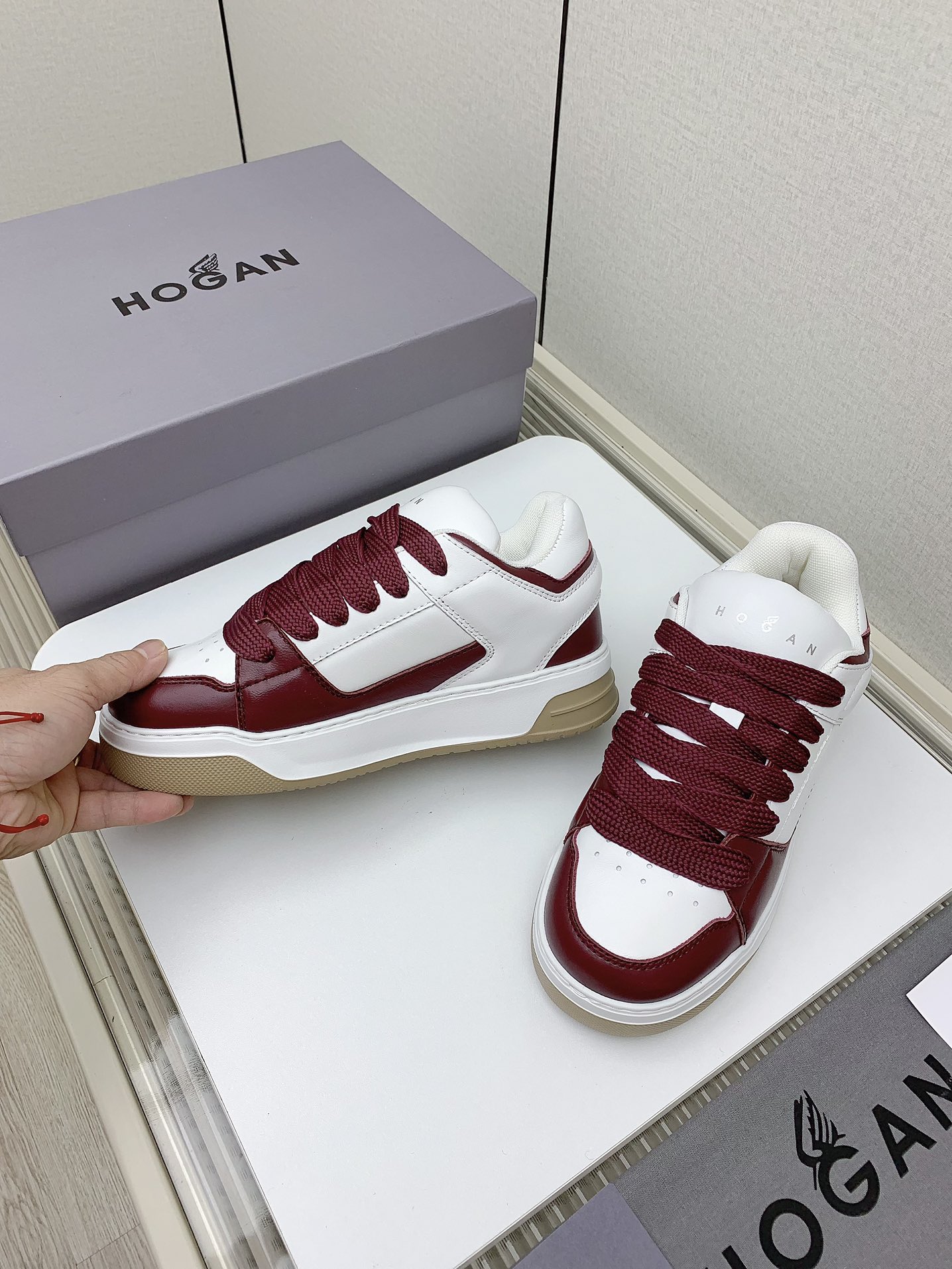 這款鞋子是AAAAA 1:1 質量(非常棒). 使用了和原版一模一樣的材料. 商標部分也保持了和Hogan一樣. 圖片拍攝是實物鞋子拍攝, 您所收到的實物保證和我們圖片一模一樣.