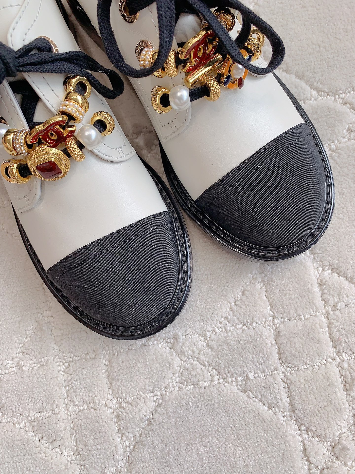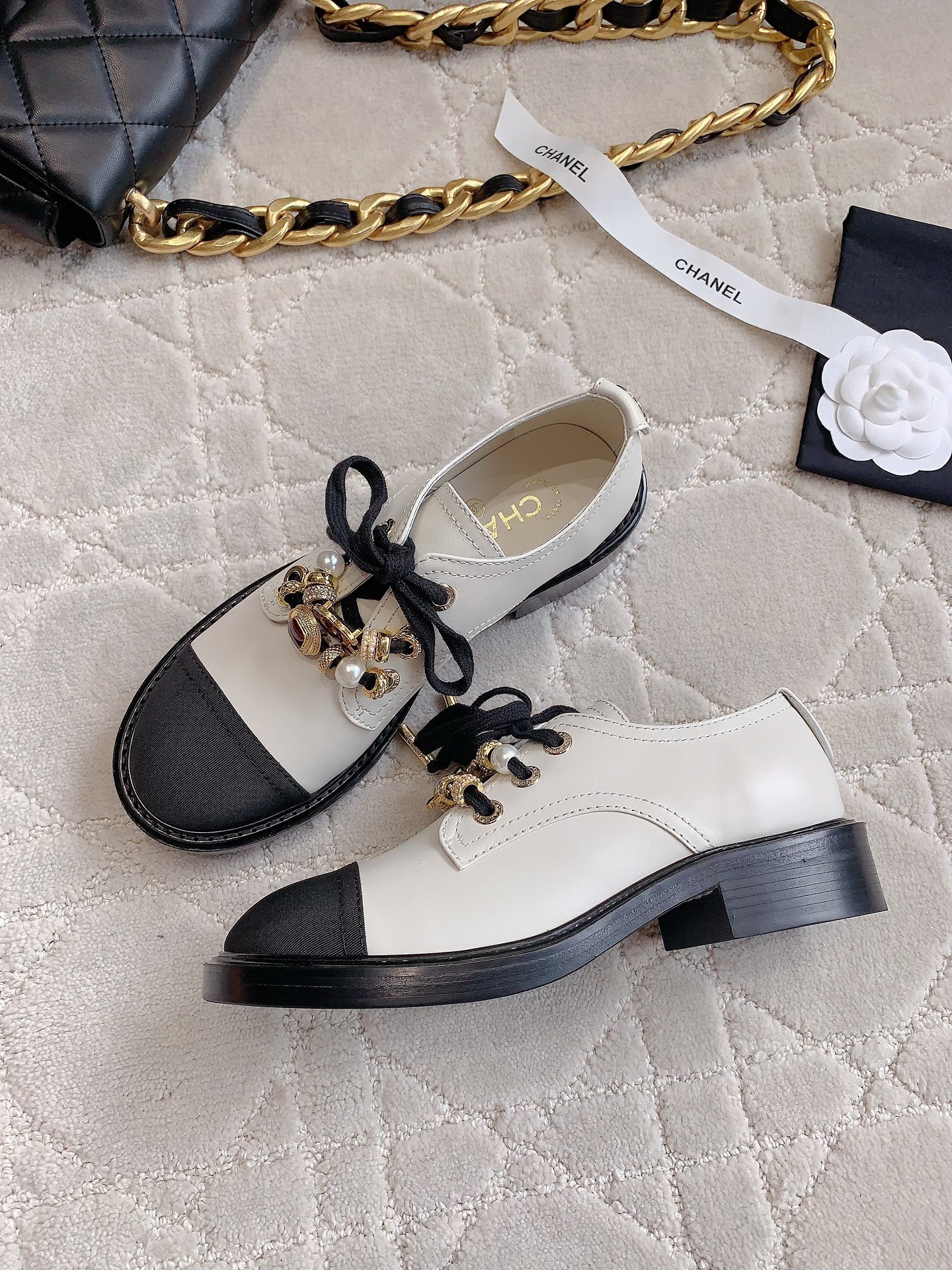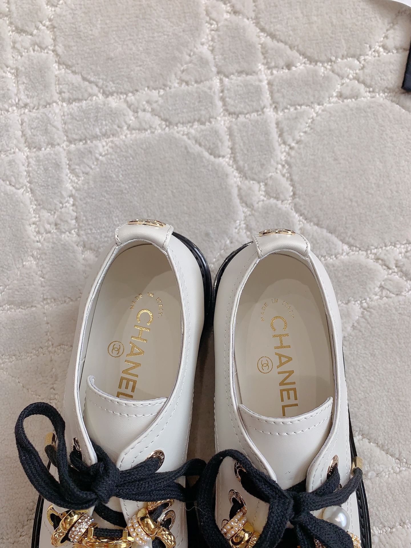 這款鞋子是AAAAA 1:1 質量(非常棒). 使用了和原版一模一樣的材料. 商標部分也保持了和香奈兒/Chanel一樣. 圖片拍攝是實物鞋子拍攝, 您所收到的實物保證和我們圖片一模一樣.