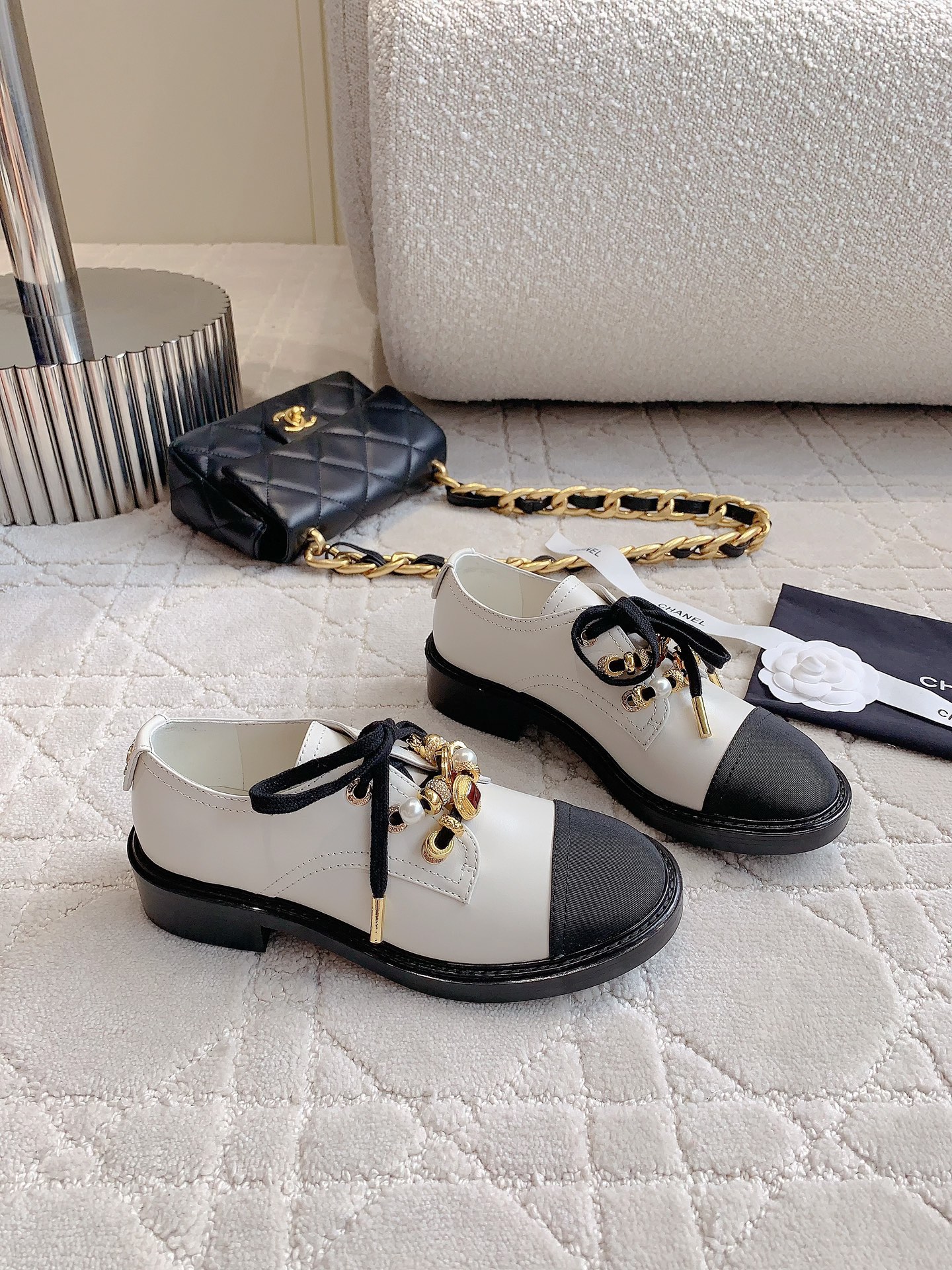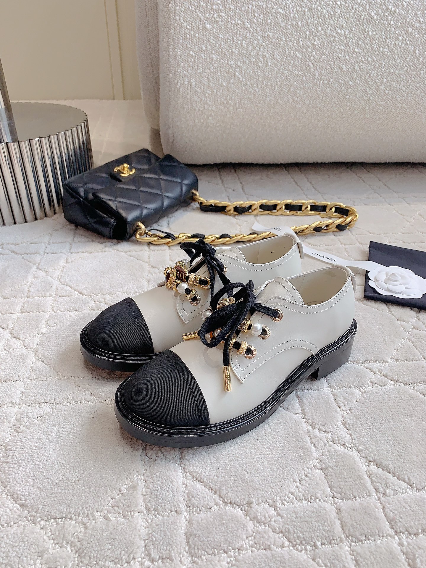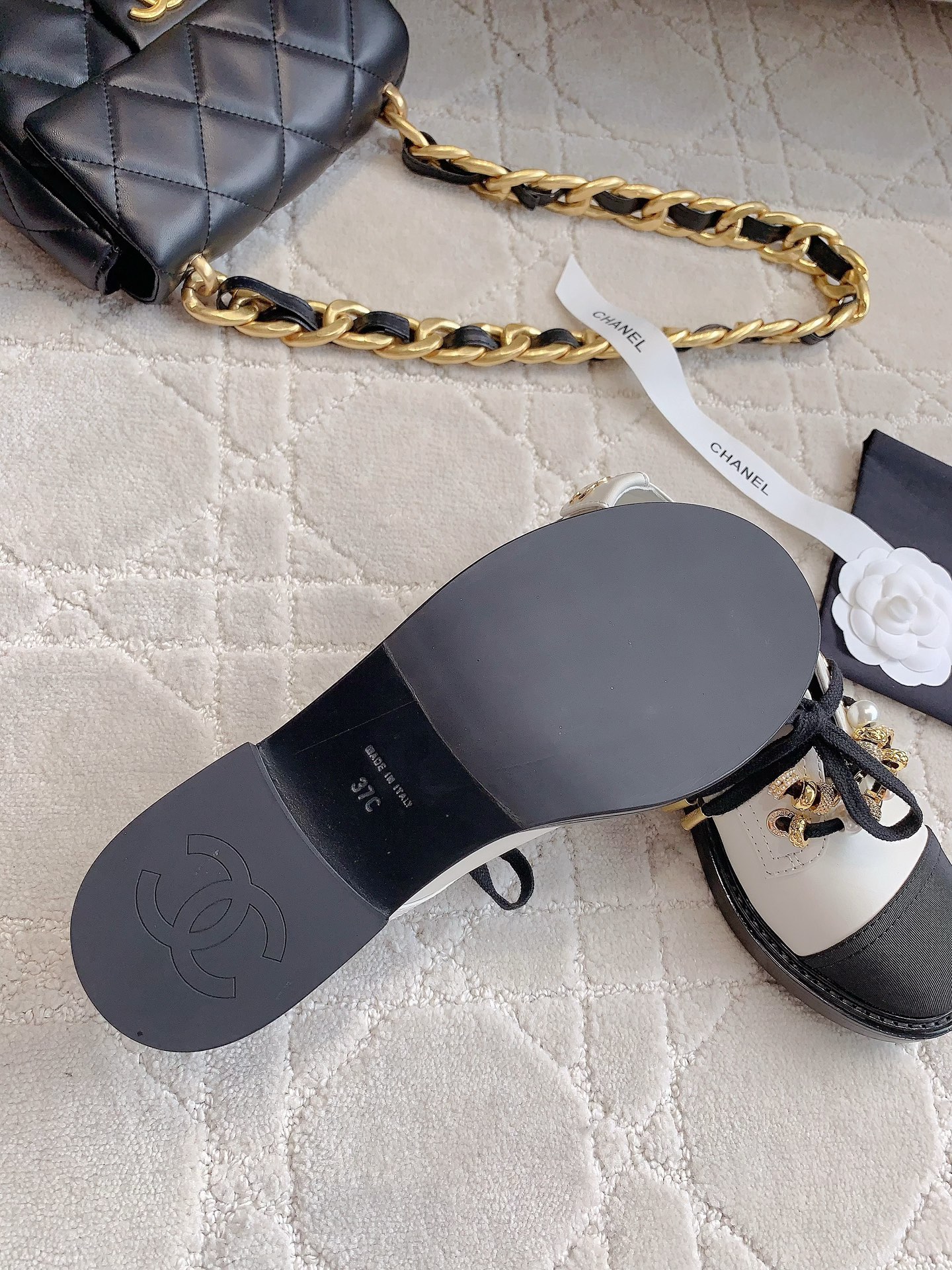 這款鞋子是AAAAA 1:1 質量(非常棒). 使用了和原版一模一樣的材料. 商標部分也保持了和香奈兒/Chanel一樣. 圖片拍攝是實物鞋子拍攝, 您所收到的實物保證和我們圖片一模一樣.