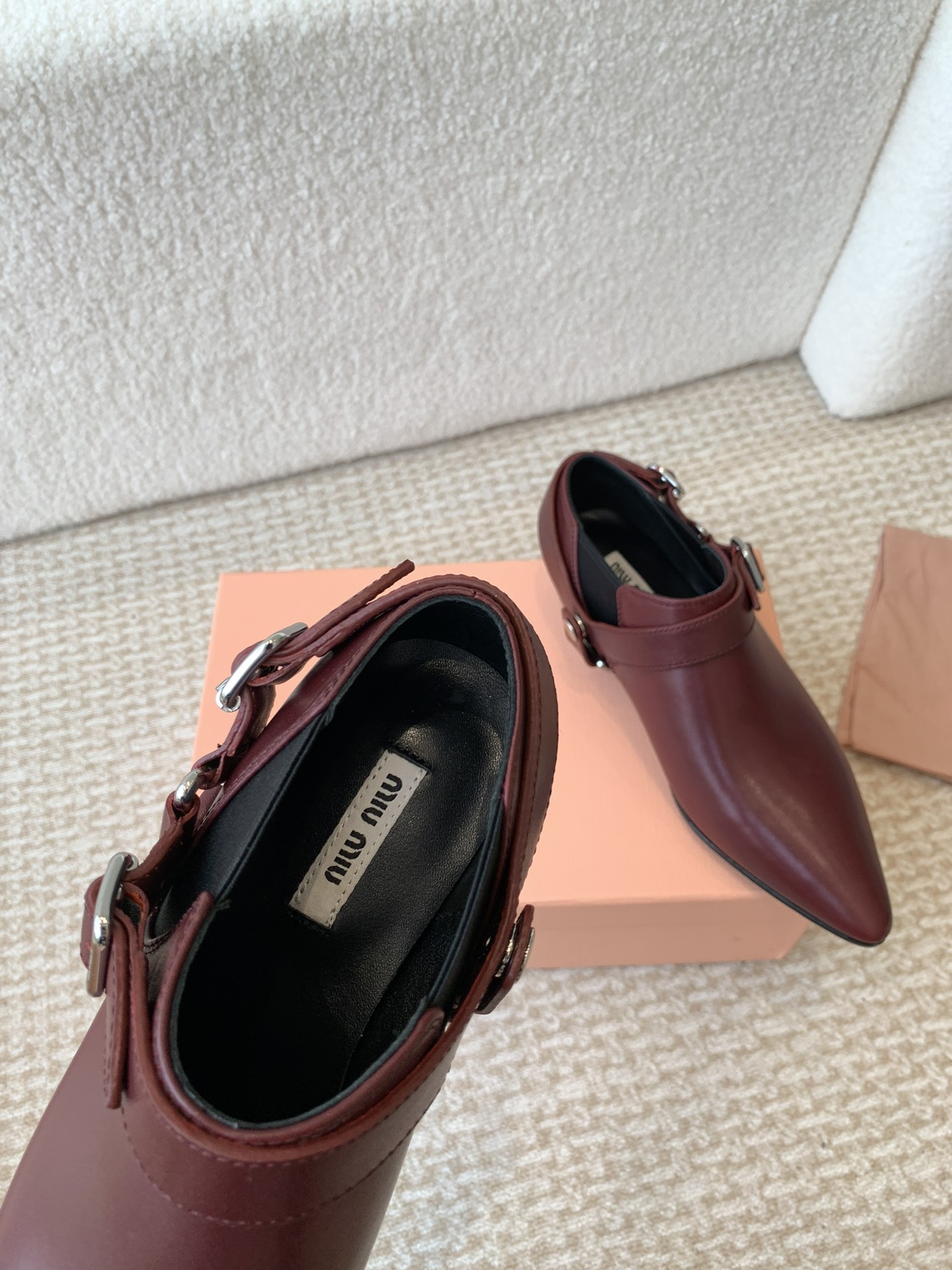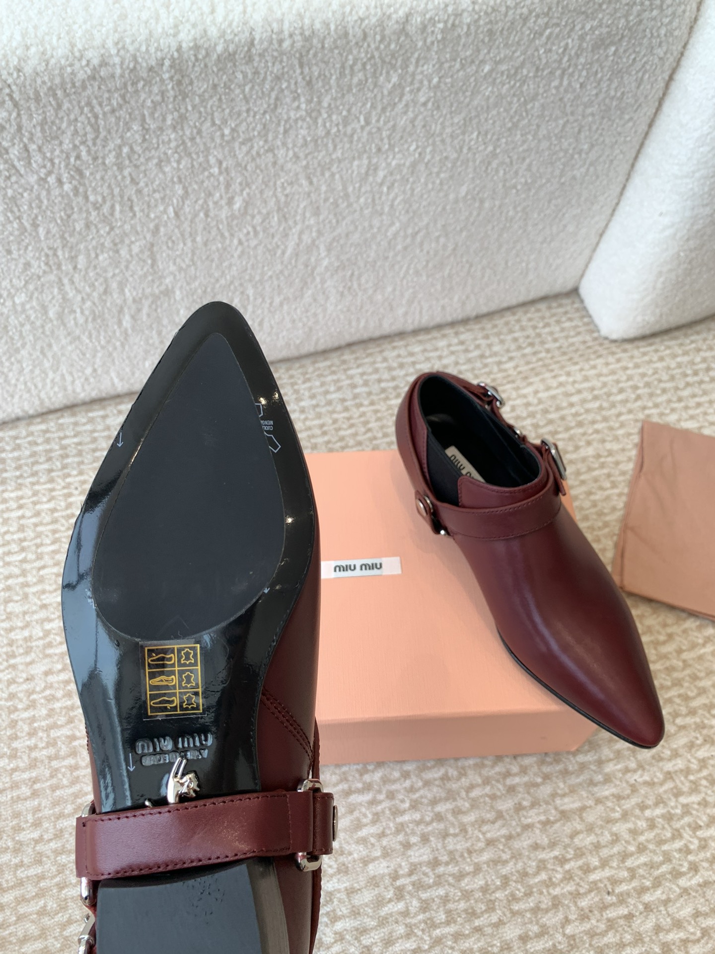 這款鞋子是AAAAA 1:1 質量(非常棒). 使用了和原版一模一樣的材料. 商標部分也保持了和繆繆/Miu Miu一樣. 圖片拍攝是實物鞋子拍攝, 您所收到的實物保證和我們圖片一模一樣.