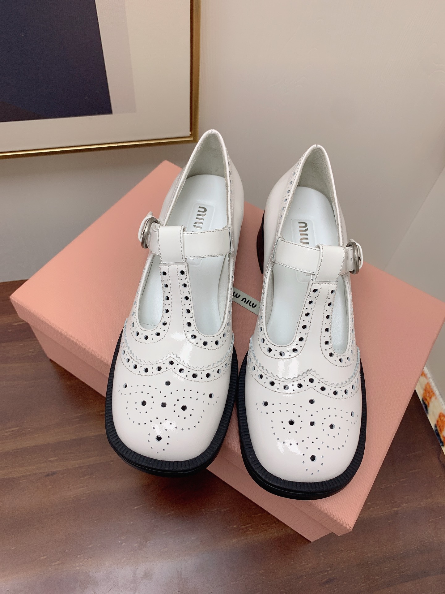 這款鞋子是AAAAA 1:1 質量(非常棒). 使用了和原版一模一樣的材料. 商標部分也保持了和繆繆/Miu Miu一樣. 圖片拍攝是實物鞋子拍攝, 您所收到的實物保證和我們圖片一模一樣.