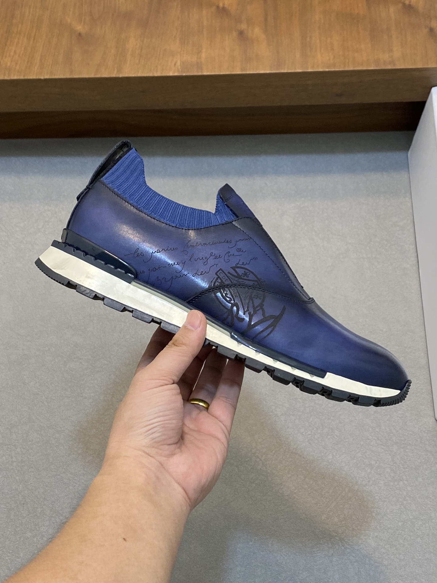 這款鞋子是AAAAA 1:1 質量(非常棒). 使用了和原版一模一樣的材料. 商標部分也保持了和Berluti一樣. 圖片拍攝是實物鞋子拍攝, 您所收到的實物保證和我們圖片一模一樣.