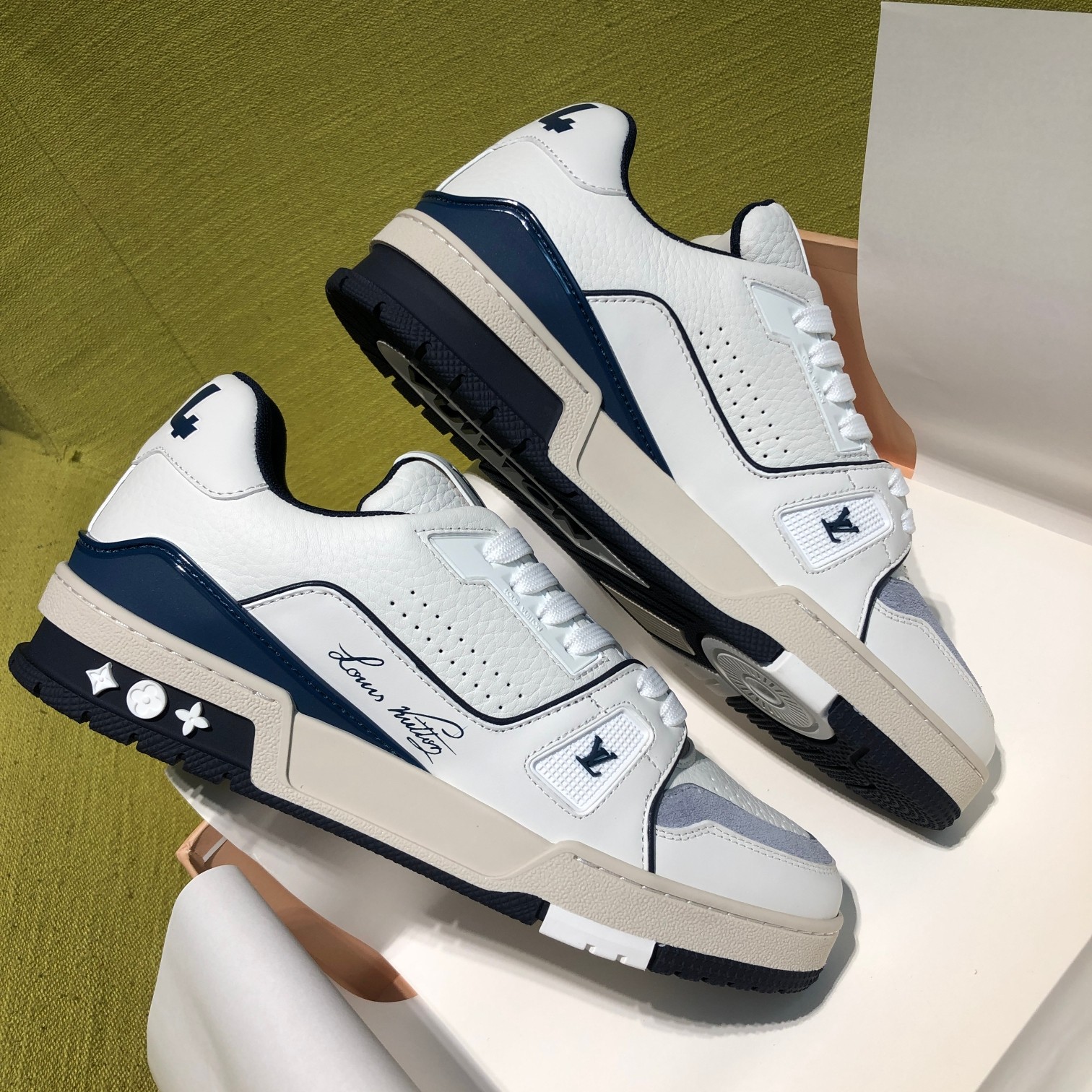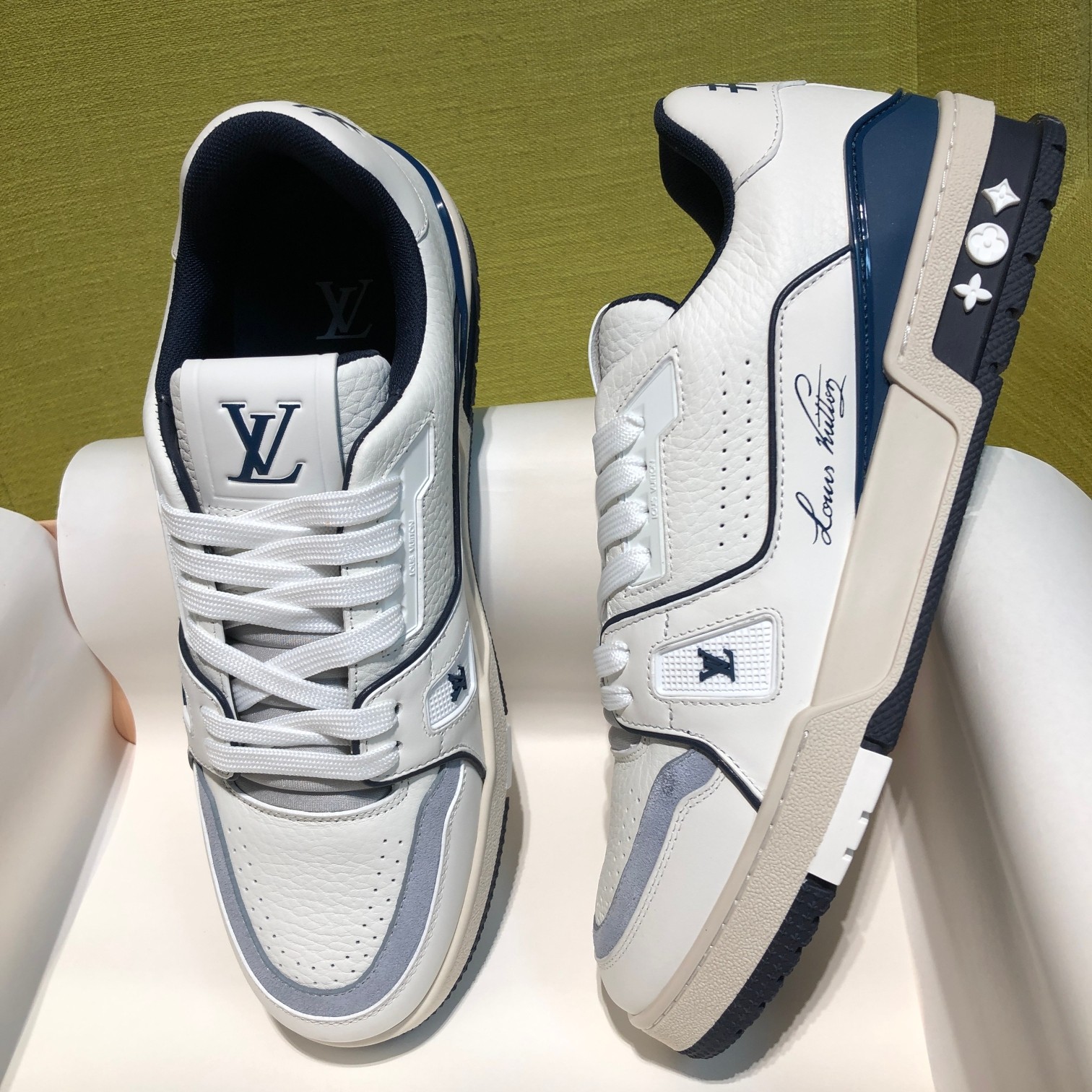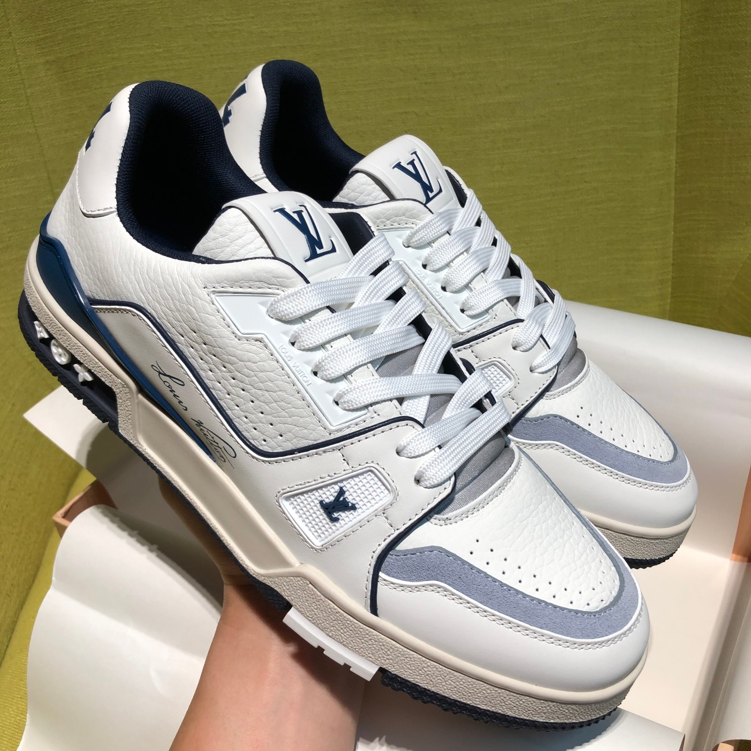 這款鞋子是AAAAA 1:1 質量(非常棒). 使用了和原版一模一樣的材料. 商標部分也保持了和路易威登/Louis Vuitton一樣. 圖片拍攝是實物鞋子拍攝, 您所收到的實物保證和我們圖片一模一樣.
