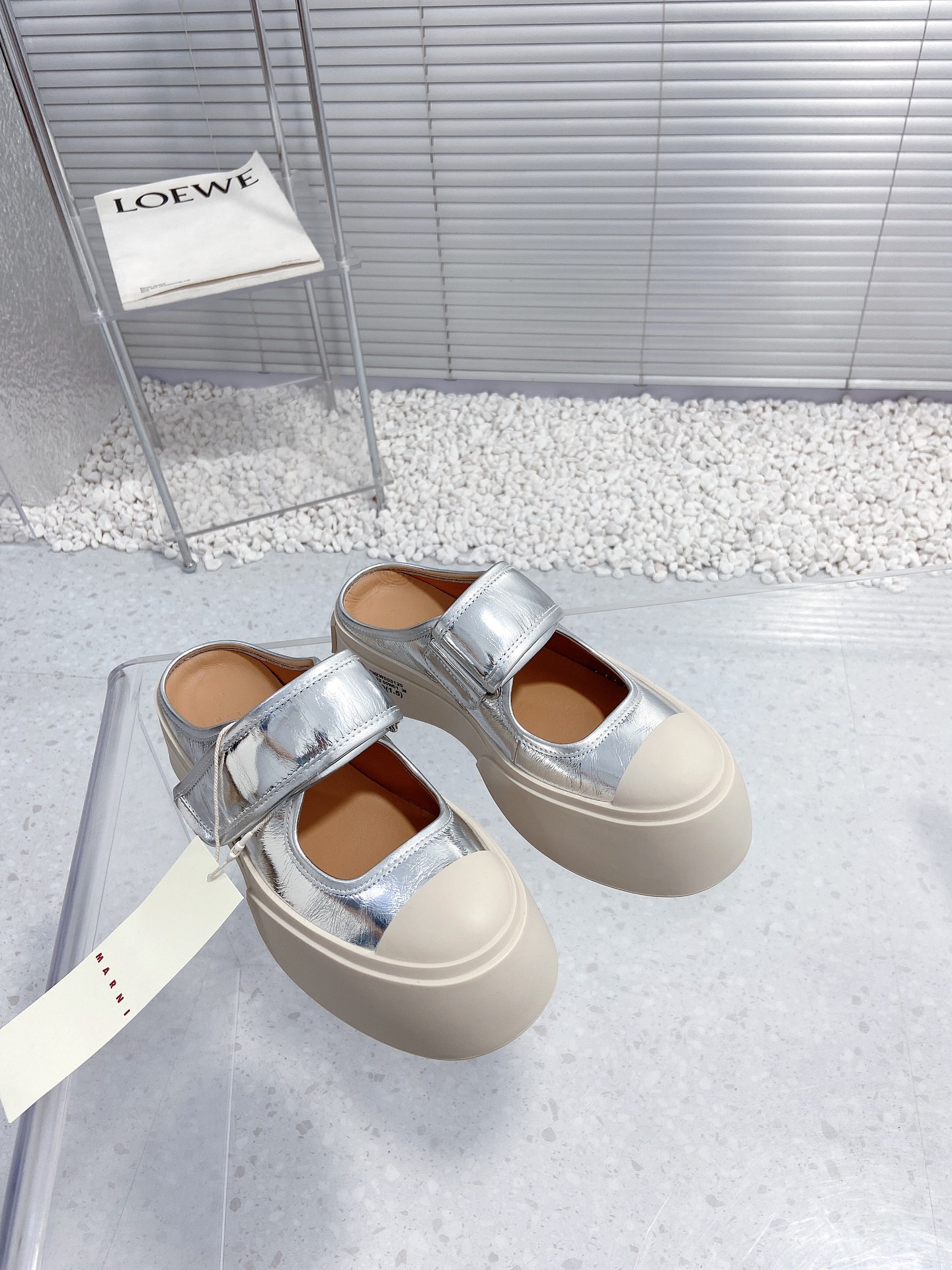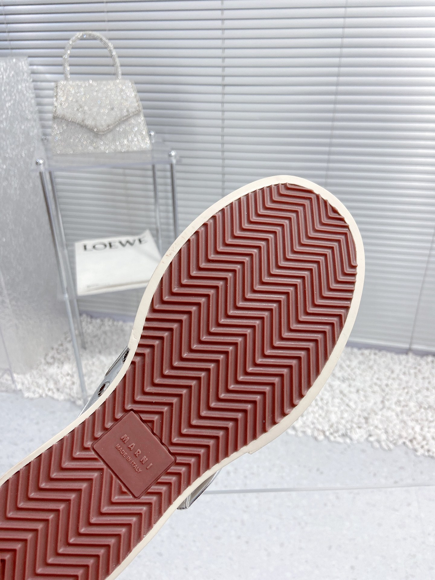 這款鞋子是AAAAA 1:1 質量(非常棒). 使用了和原版一模一樣的材料. 商標部分也保持了和馬爾尼/Marni一樣. 圖片拍攝是實物鞋子拍攝, 您所收到的實物保證和我們圖片一模一樣.