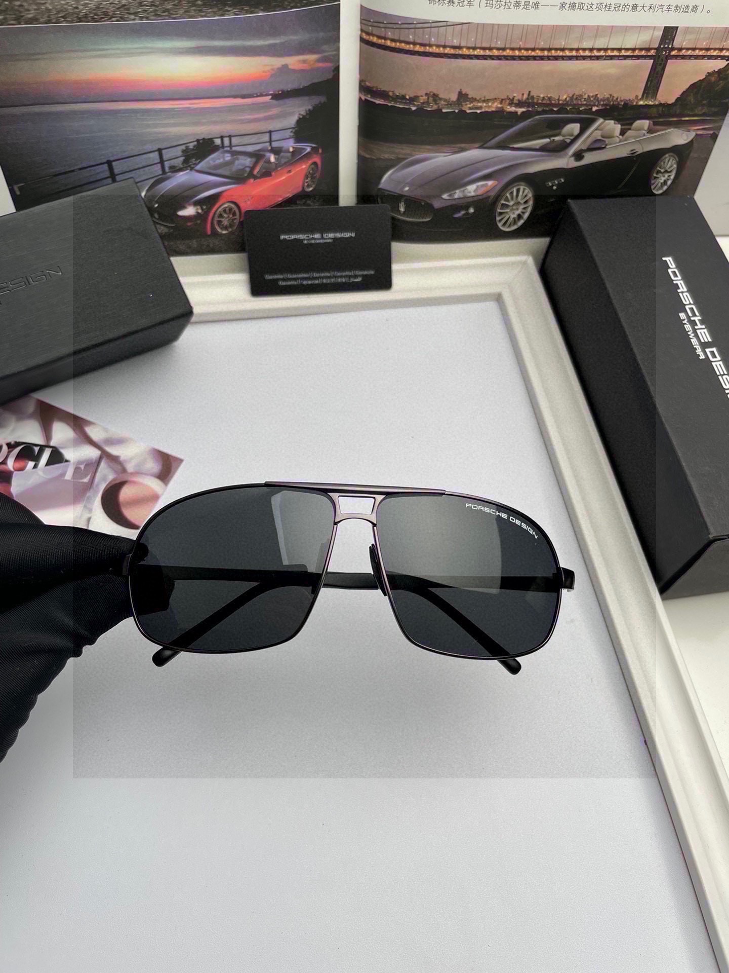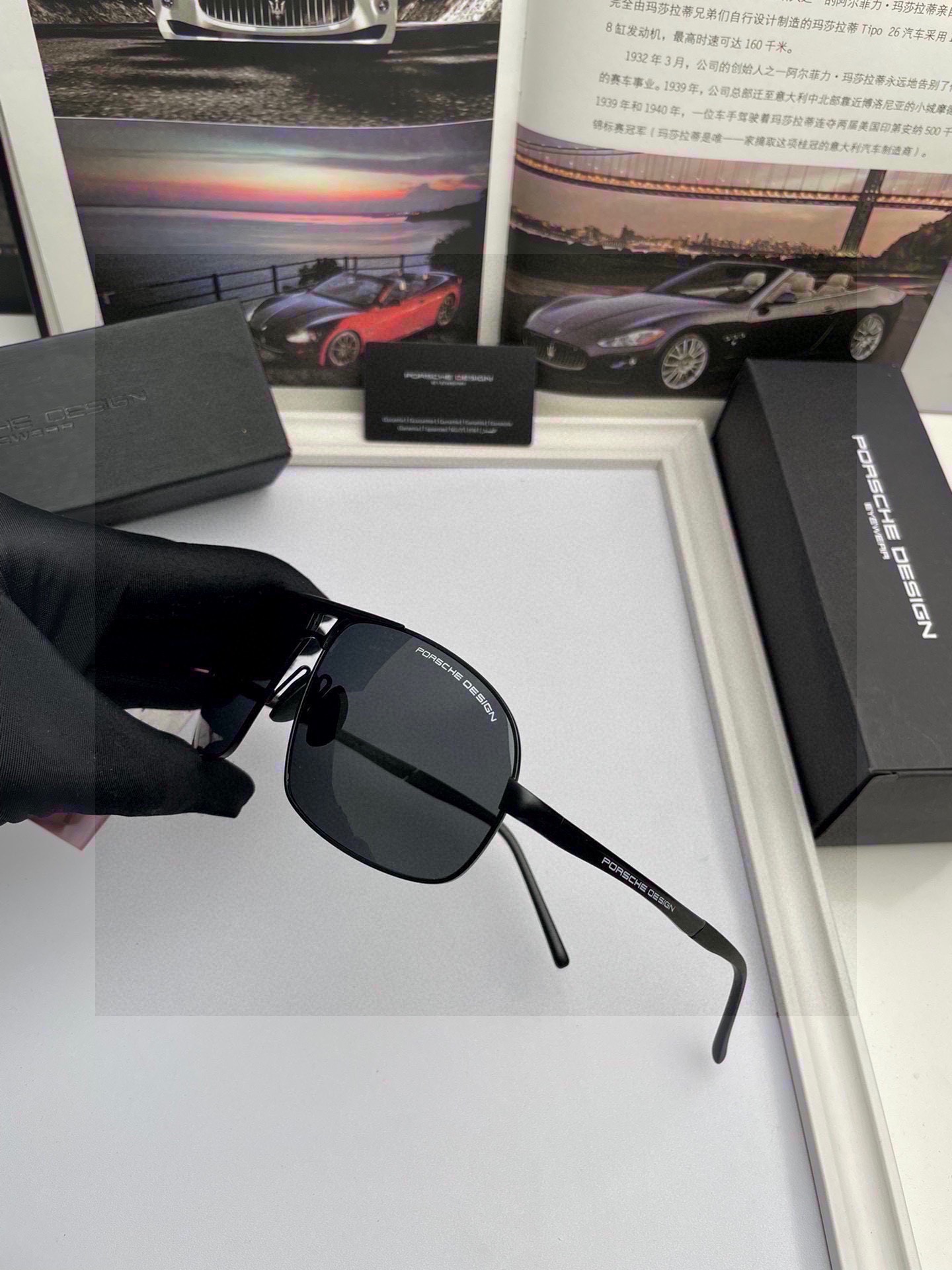 這款太陽眼鏡是AAAAA 1:1 質量(非常棒). 使用了和原版一模一樣的材料. 商標部分也保持了和保時捷/Porsche一樣. 圖片拍攝是實物太陽眼鏡拍攝, 您所收到的實物保證和我們圖片一模一樣.
