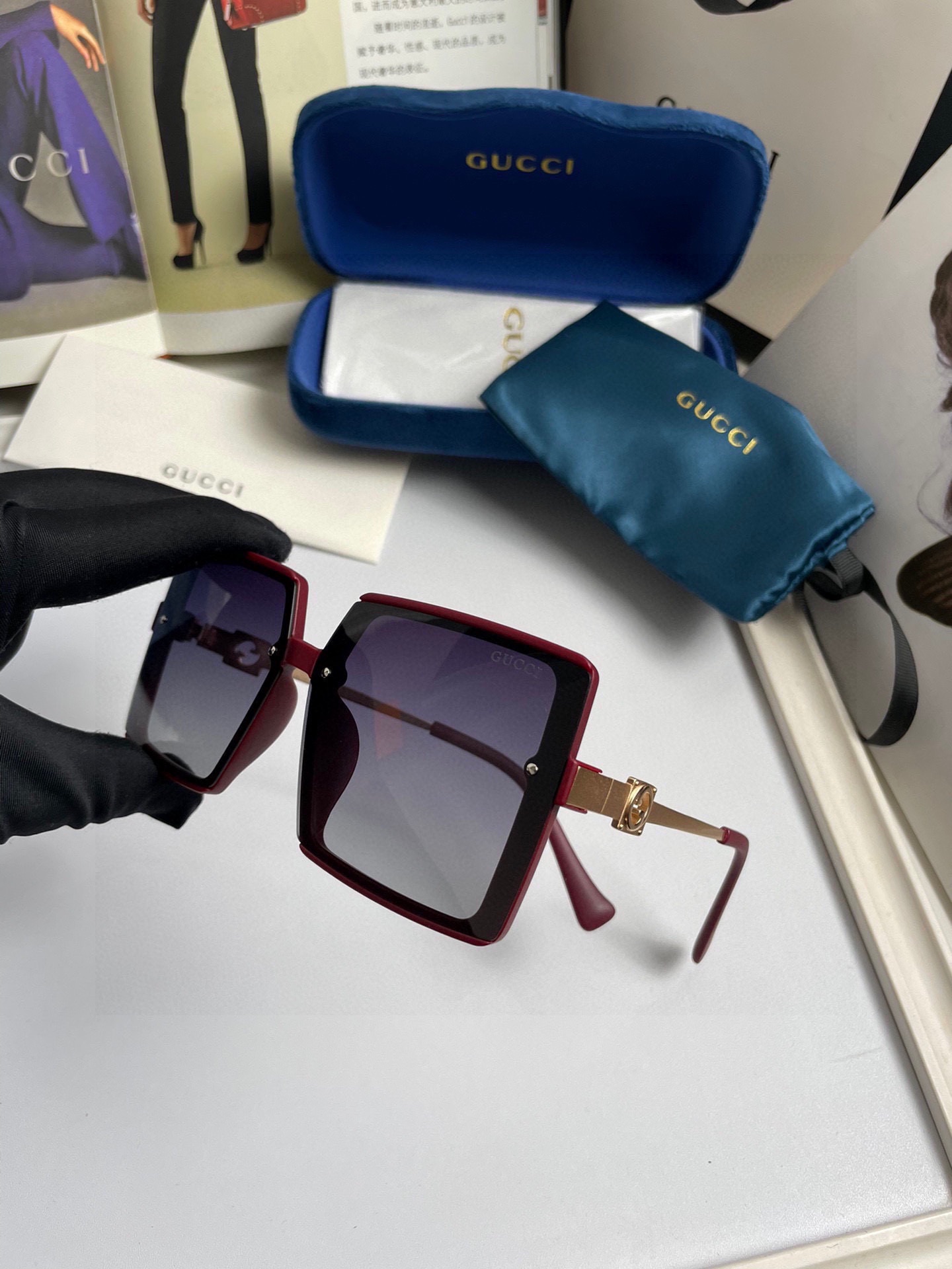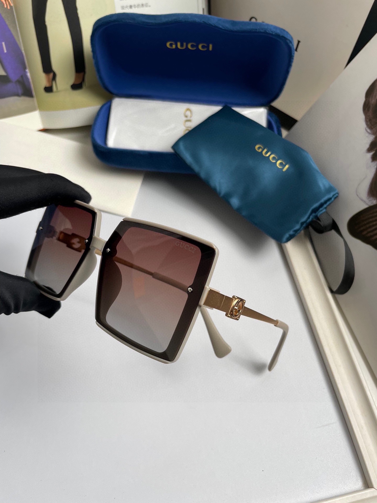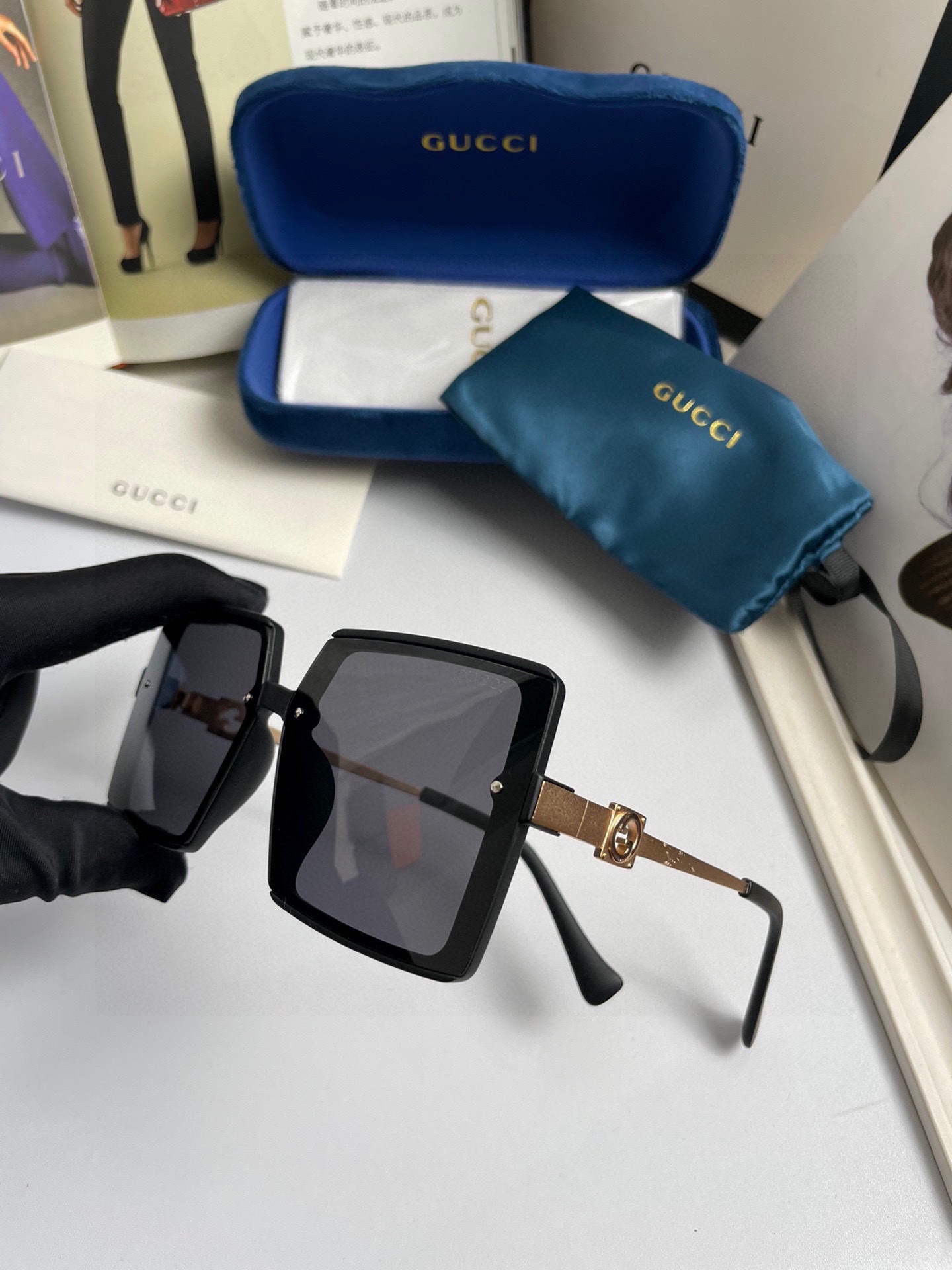 這款太陽眼鏡是AAAAA 1:1 質量(非常棒). 使用了和原版一模一樣的材料. 商標部分也保持了和古奇/Gucci一樣. 圖片拍攝是實物太陽眼鏡拍攝, 您所收到的實物保證和我們圖片一模一樣.
