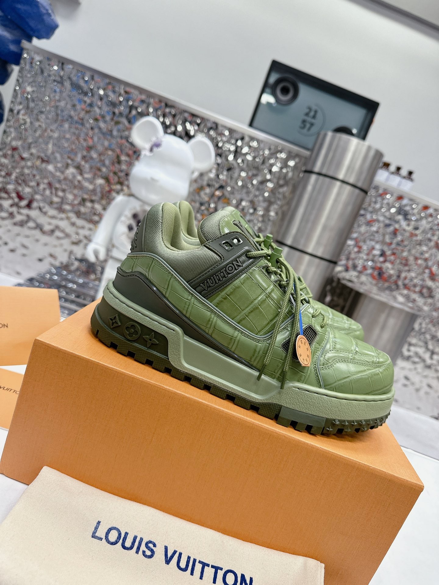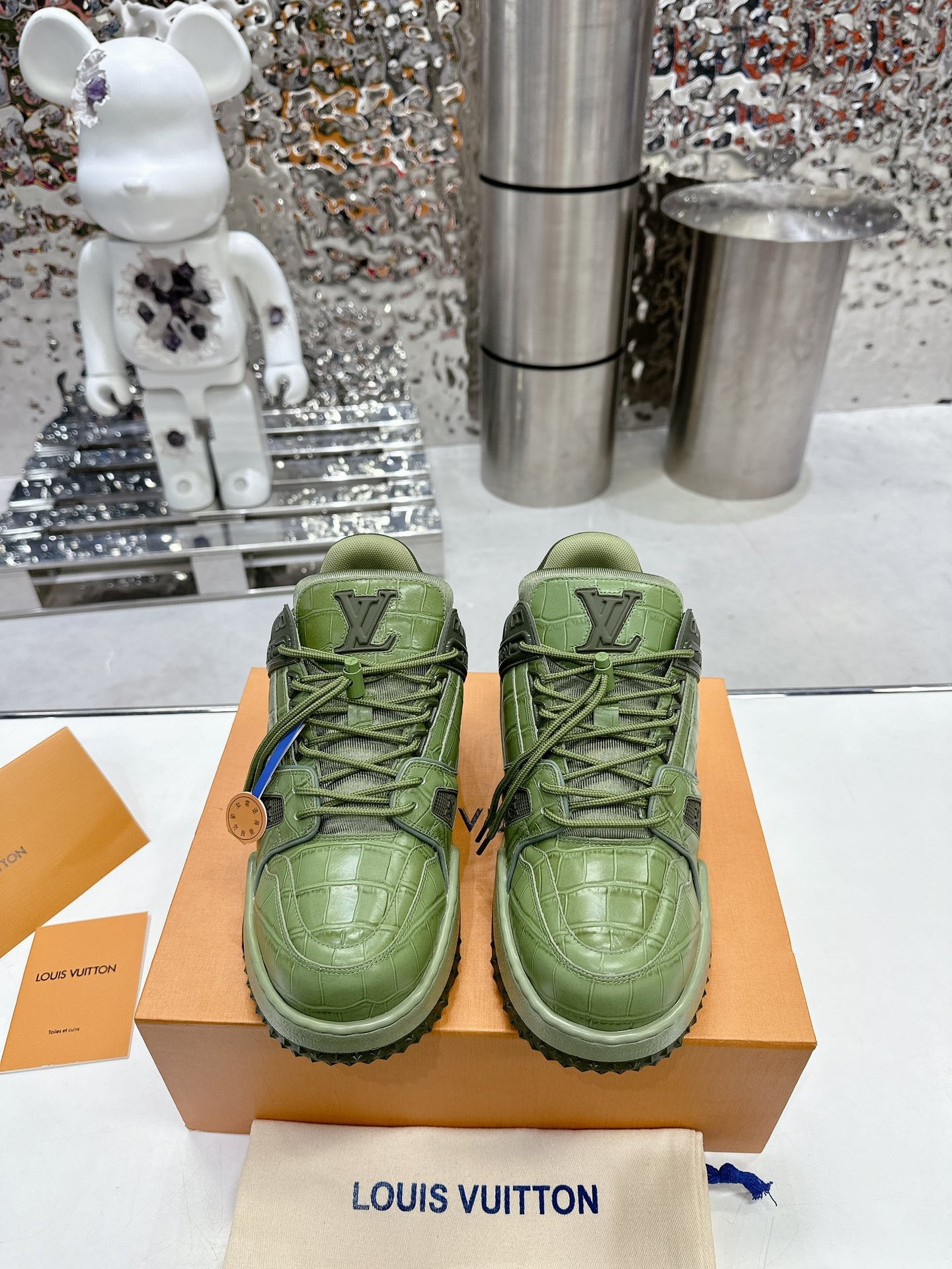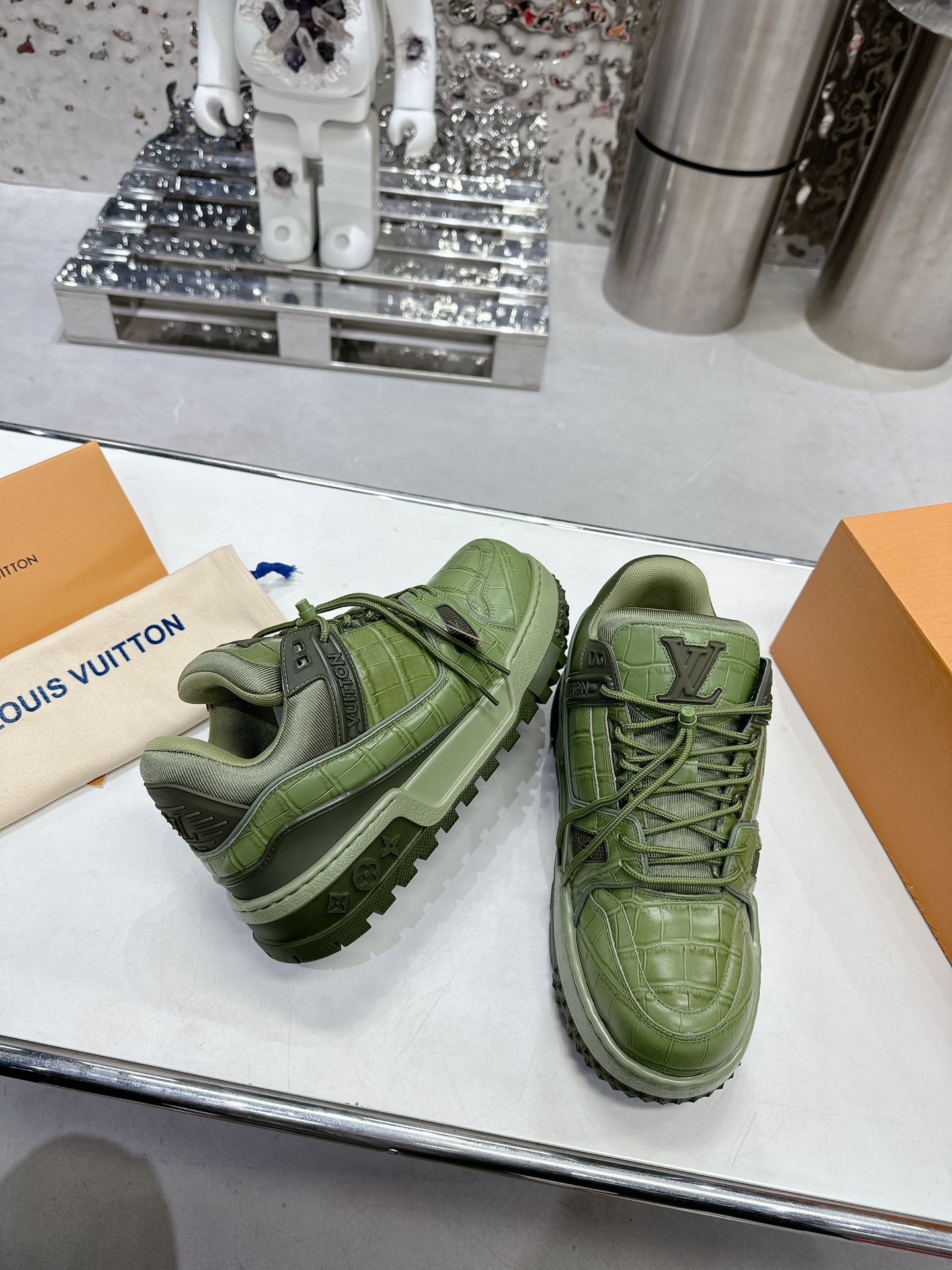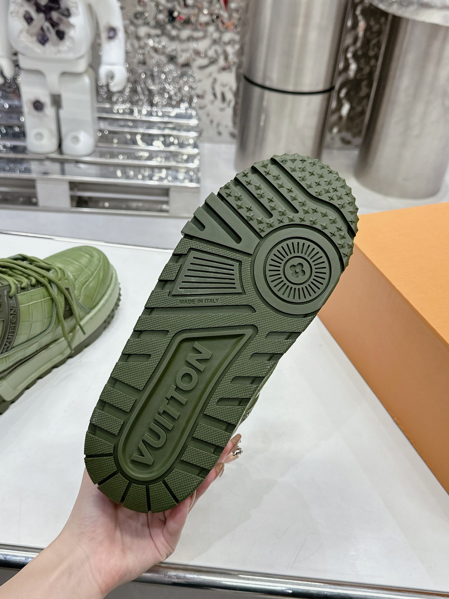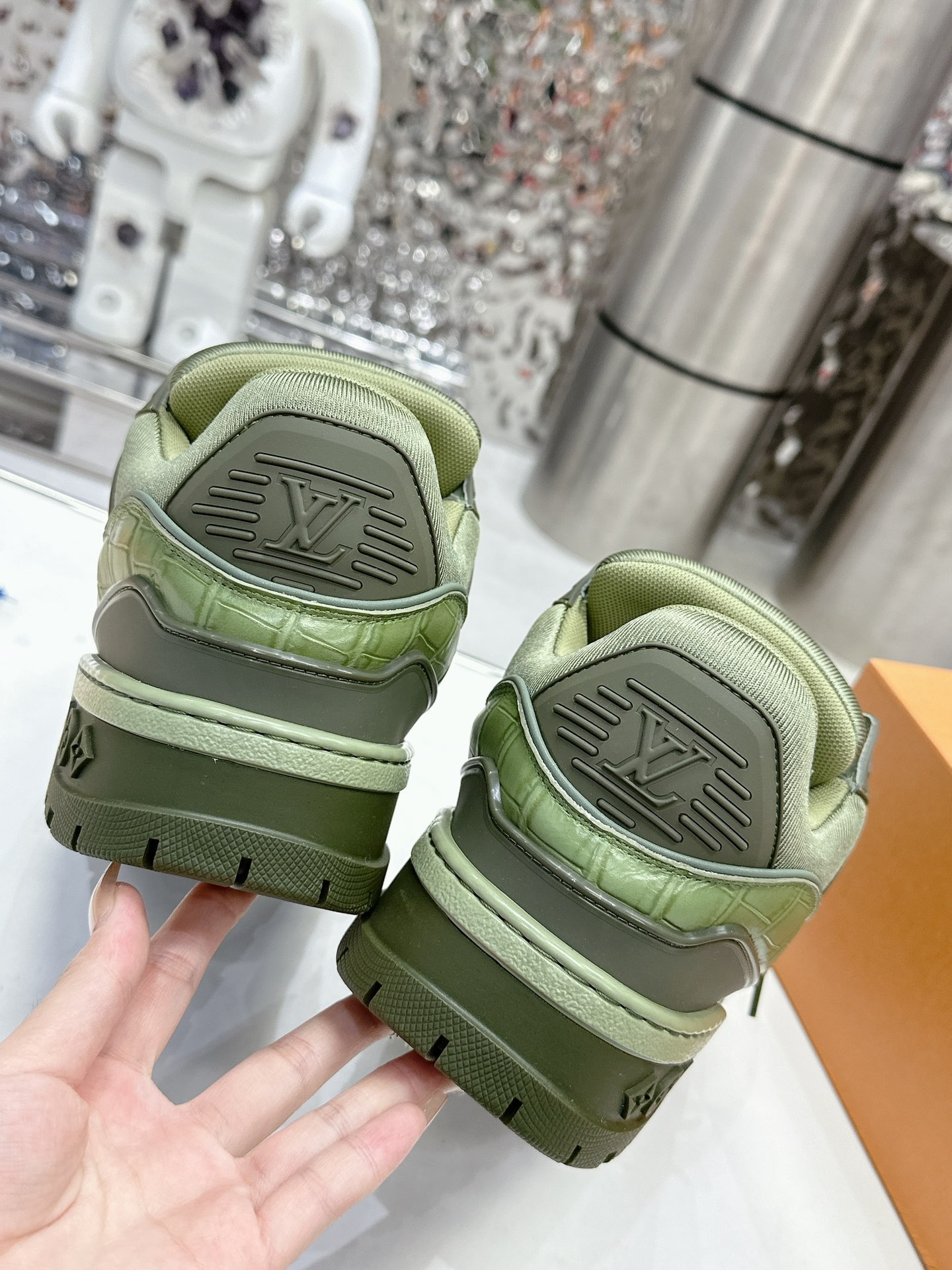 這款鞋子是AAAAA 1:1 質量(非常棒). 使用了和原版一模一樣的材料. 商標部分也保持了和路易威登/Louis Vuitton一樣. 圖片拍攝是實物鞋子拍攝, 您所收到的實物保證和我們圖片一模一樣.