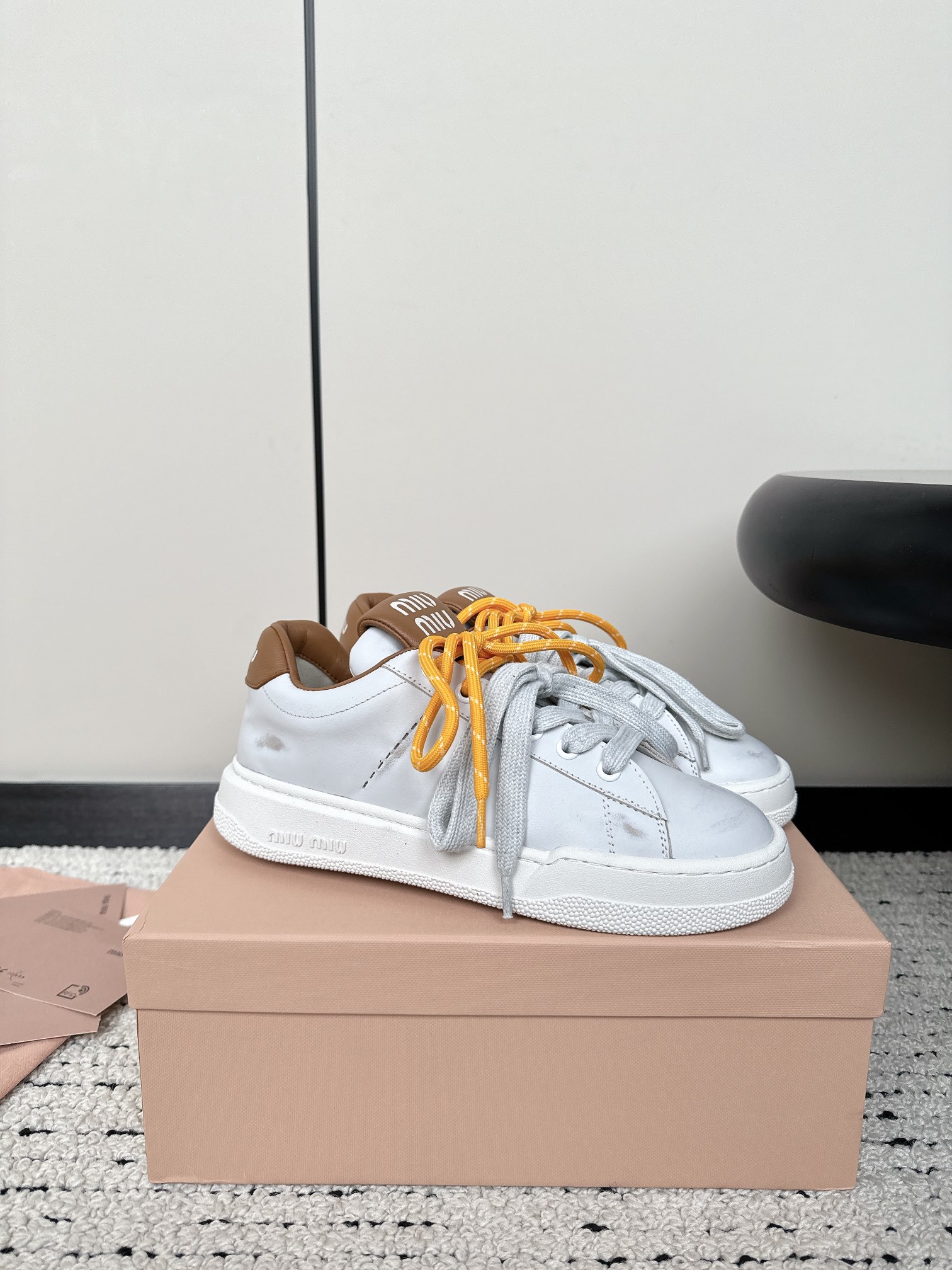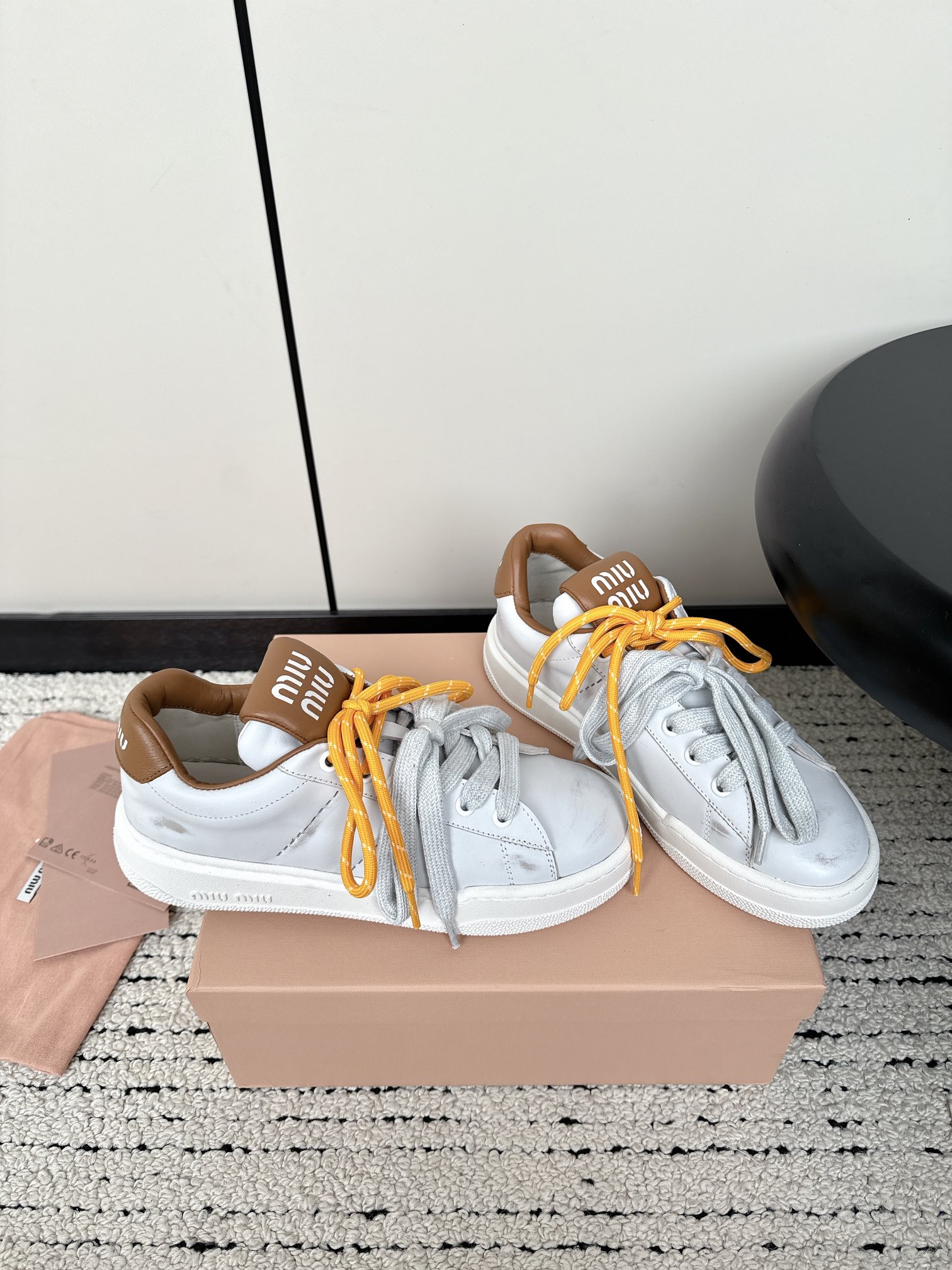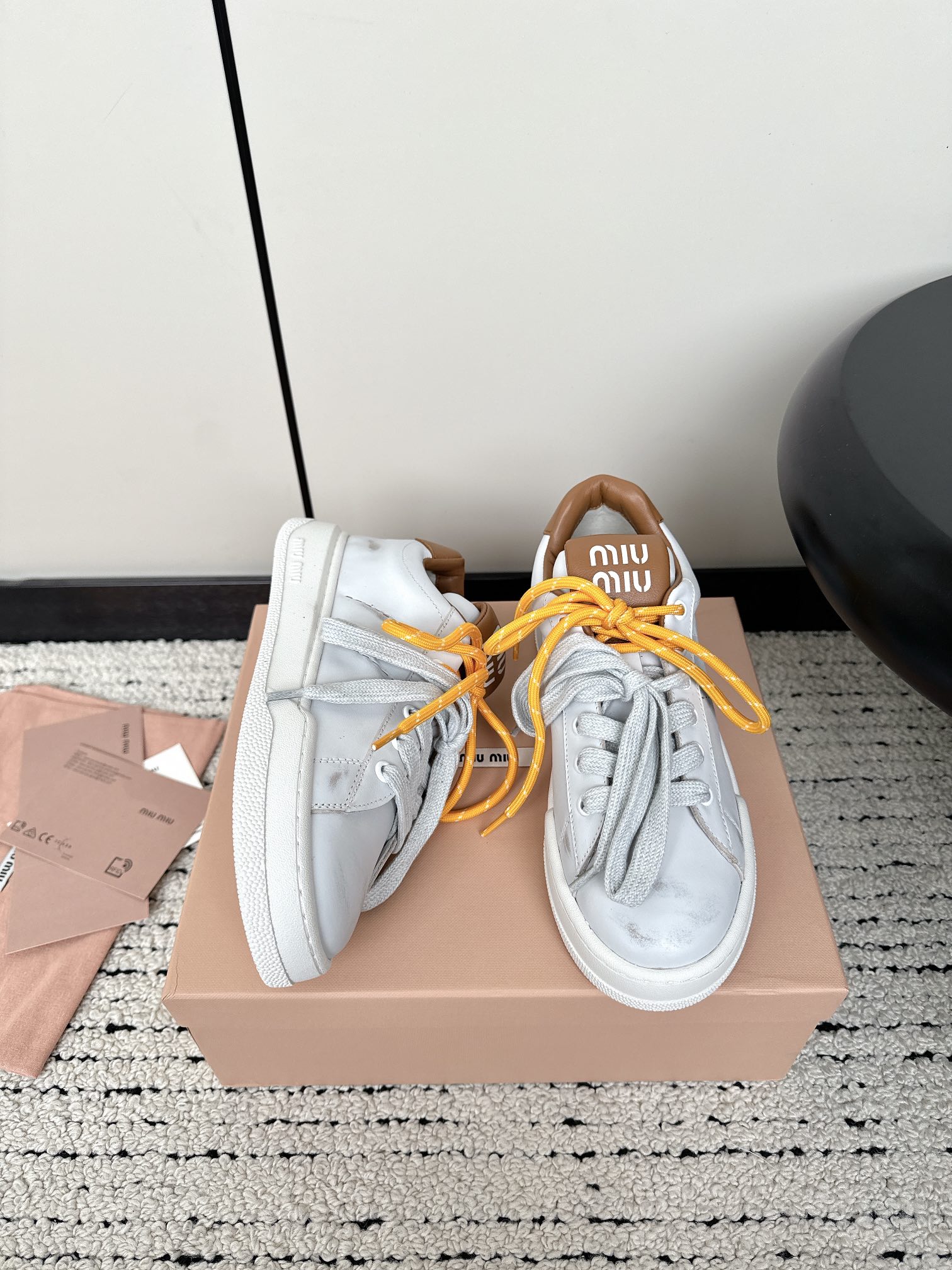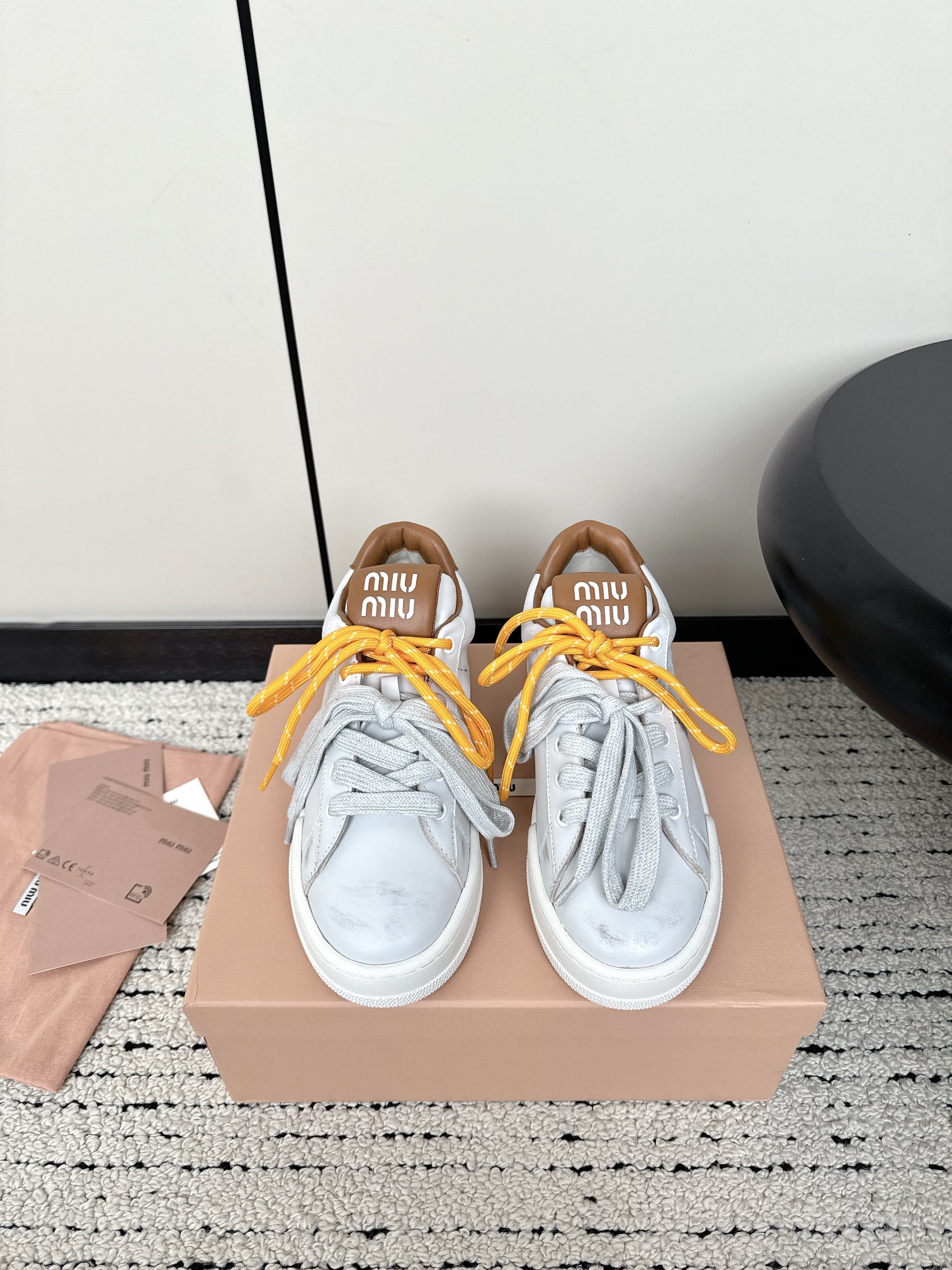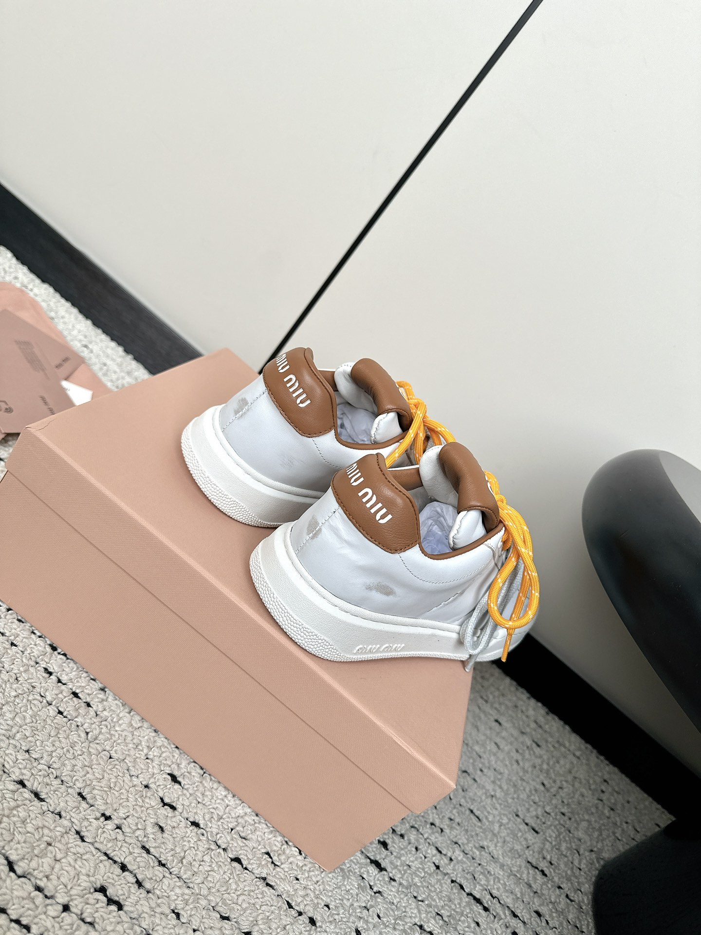 這款鞋子是AAAAA 1:1 質量(非常棒). 使用了和原版一模一樣的材料. 商標部分也保持了和繆繆/Miu Miu一樣. 圖片拍攝是實物鞋子拍攝, 您所收到的實物保證和我們圖片一模一樣.