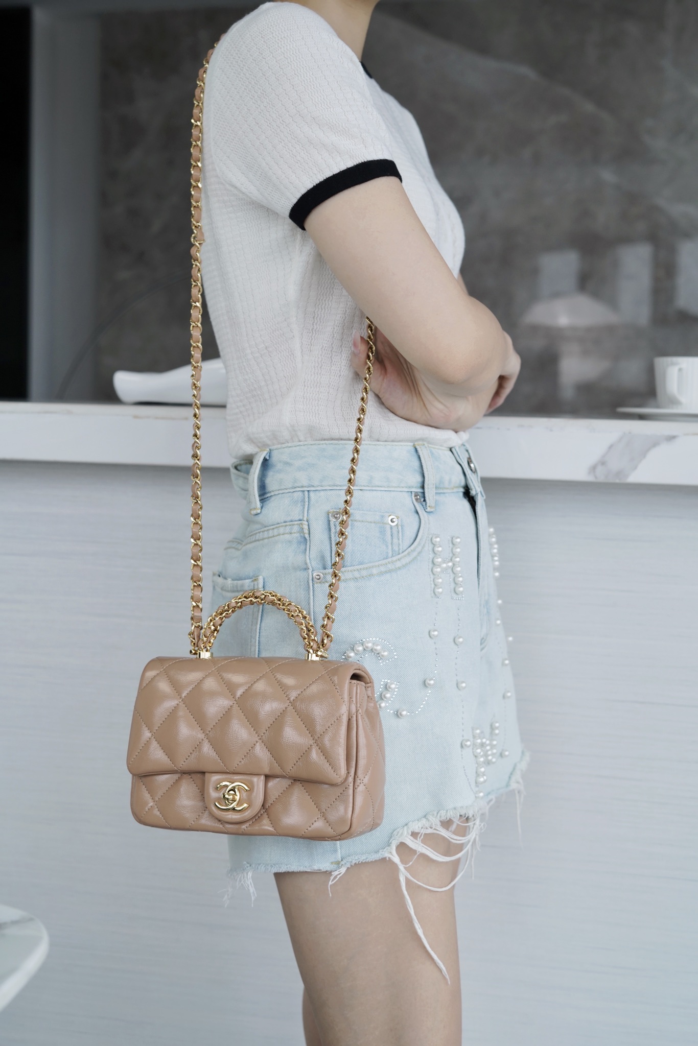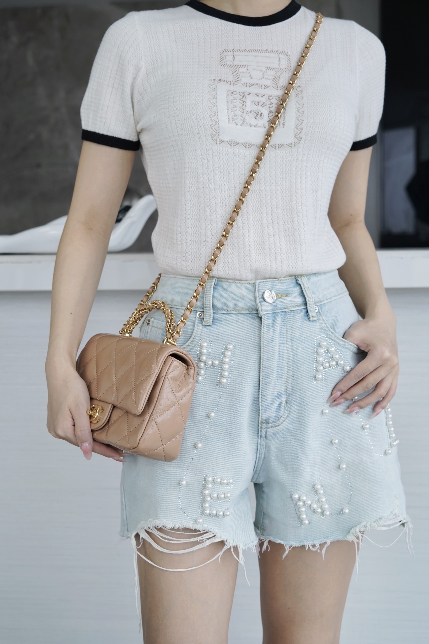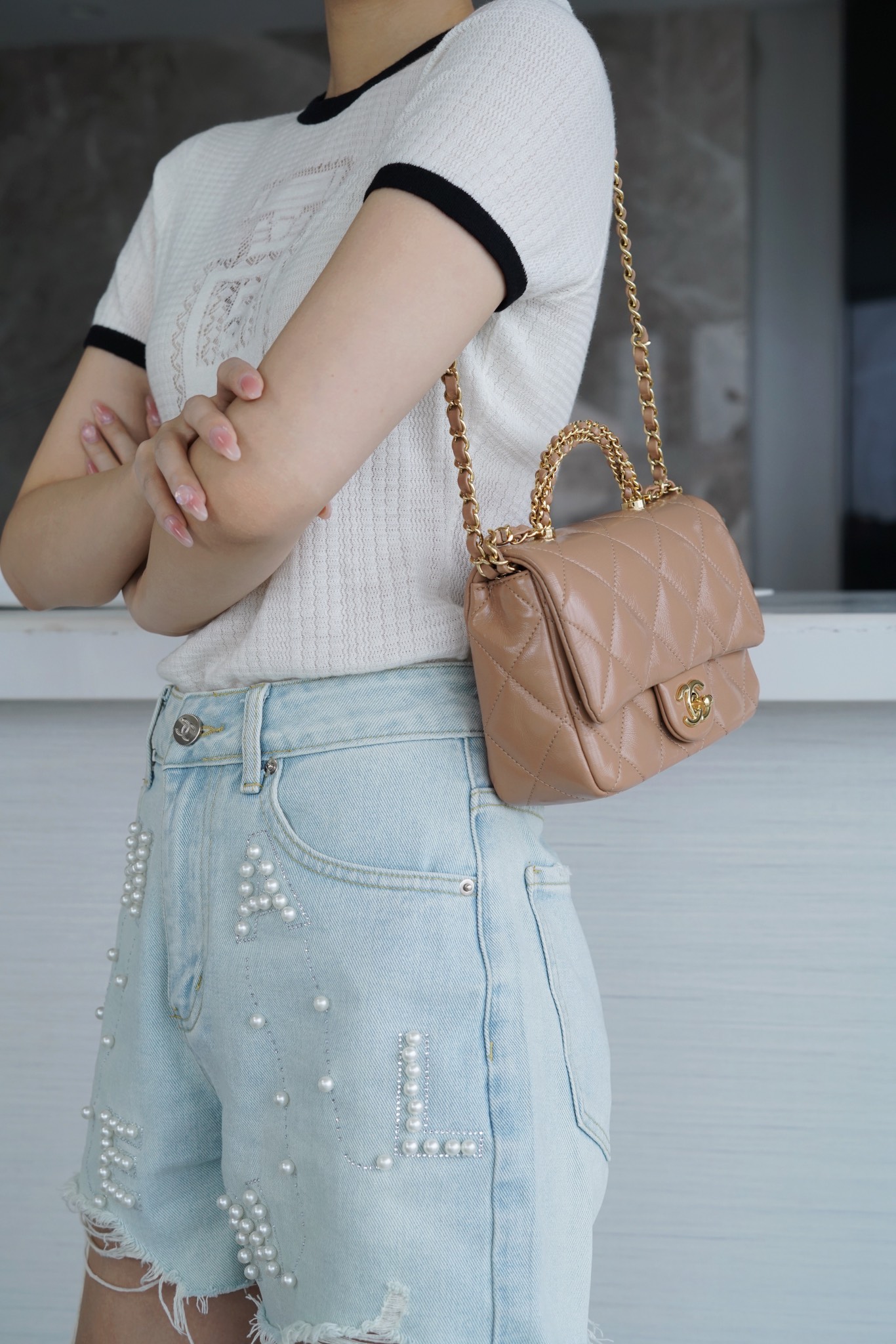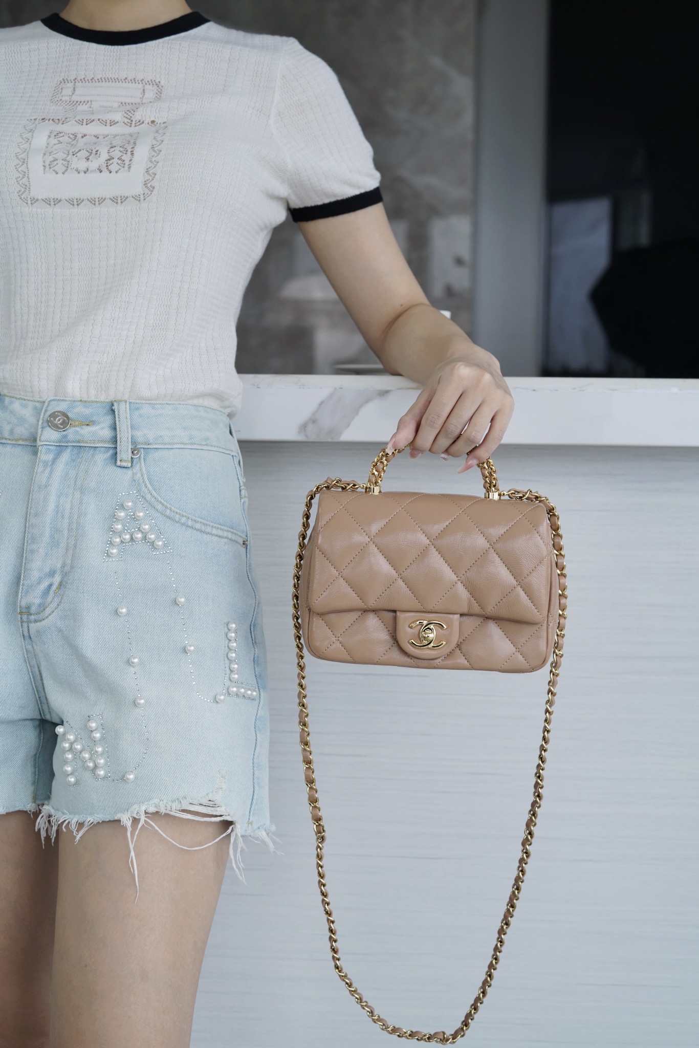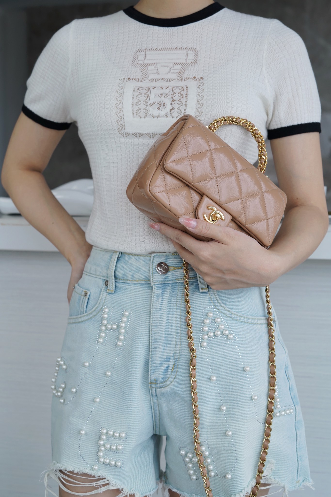 這款包包是AAAAA 1:1 質量(非常棒). 使用了和原版一模一樣的材料. 商標部分也保持了和香奈兒/Chanel一樣. 圖片拍攝是實物包包拍攝, 您所收到的實物保證和我們圖片一模一樣.