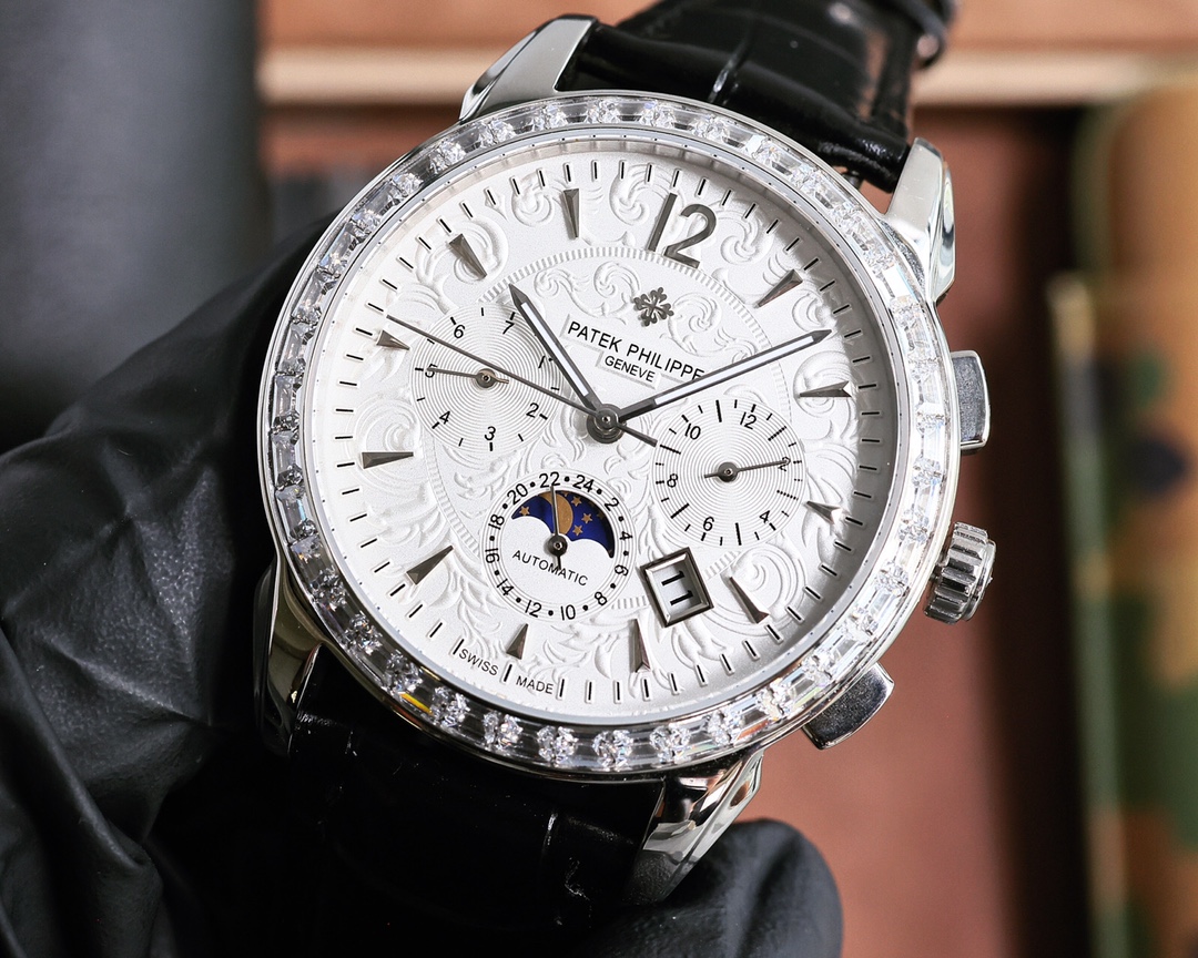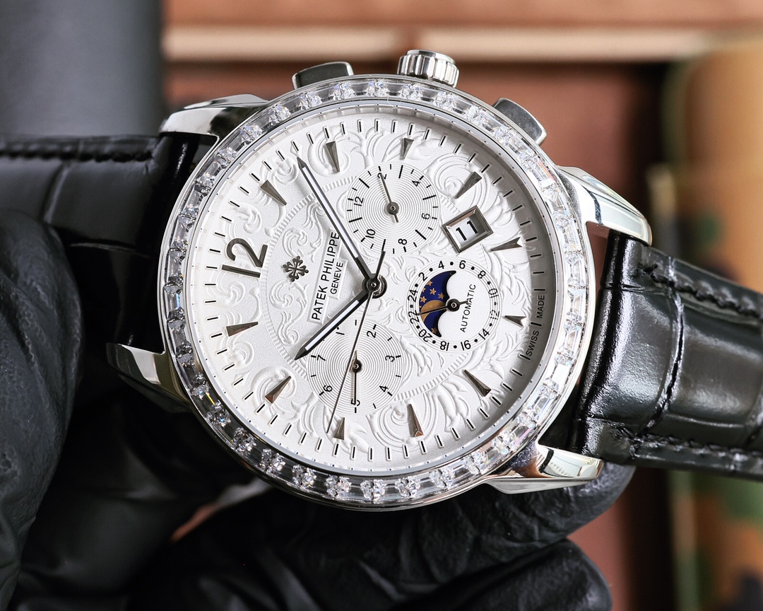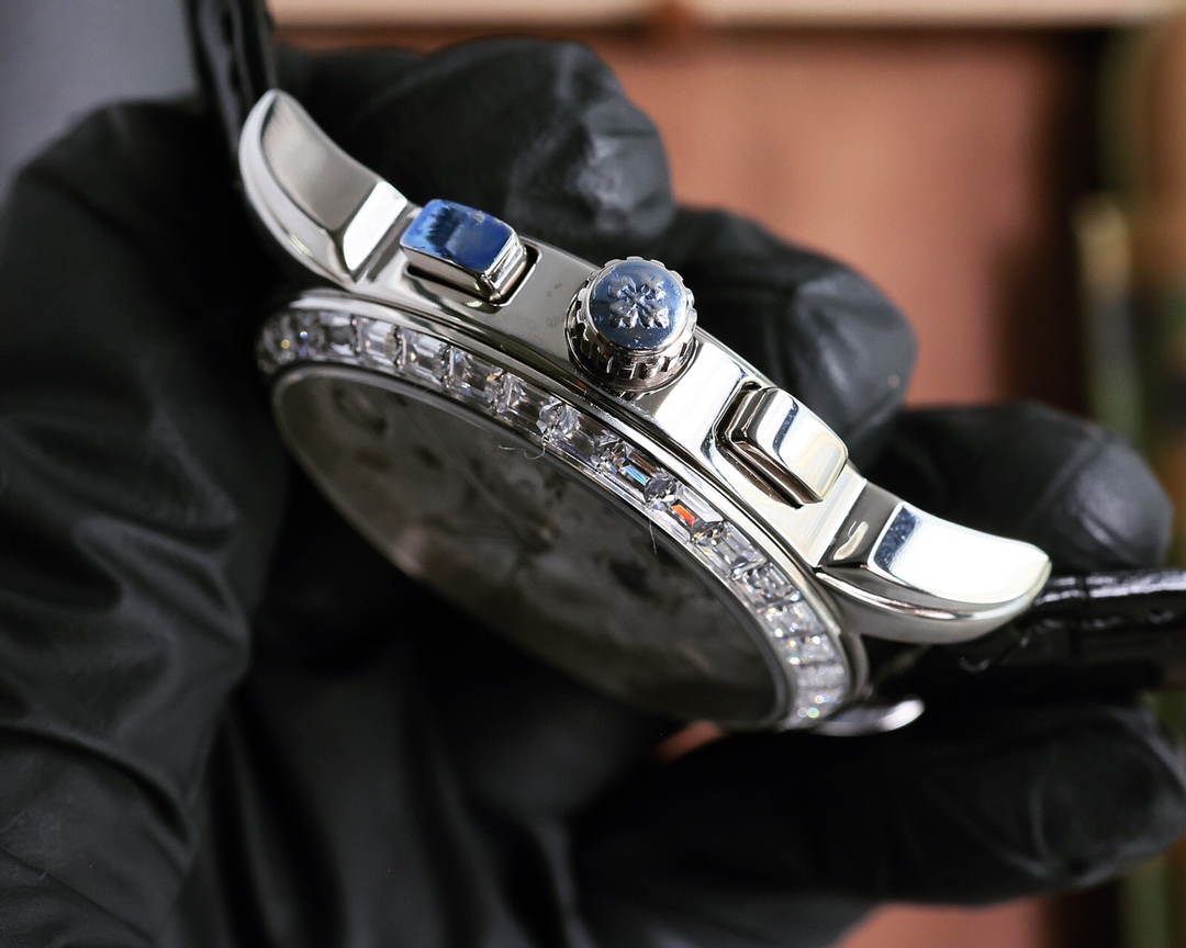 這款手錶是AAAAA 1:1 質量(非常棒). 使用了和原版一模一樣的材料. 商標部分也保持了和百達翡麗/Patek Philippe一樣. 圖片拍攝是實物手錶拍攝, 您所收到的實物保證和我們圖片一模一樣.