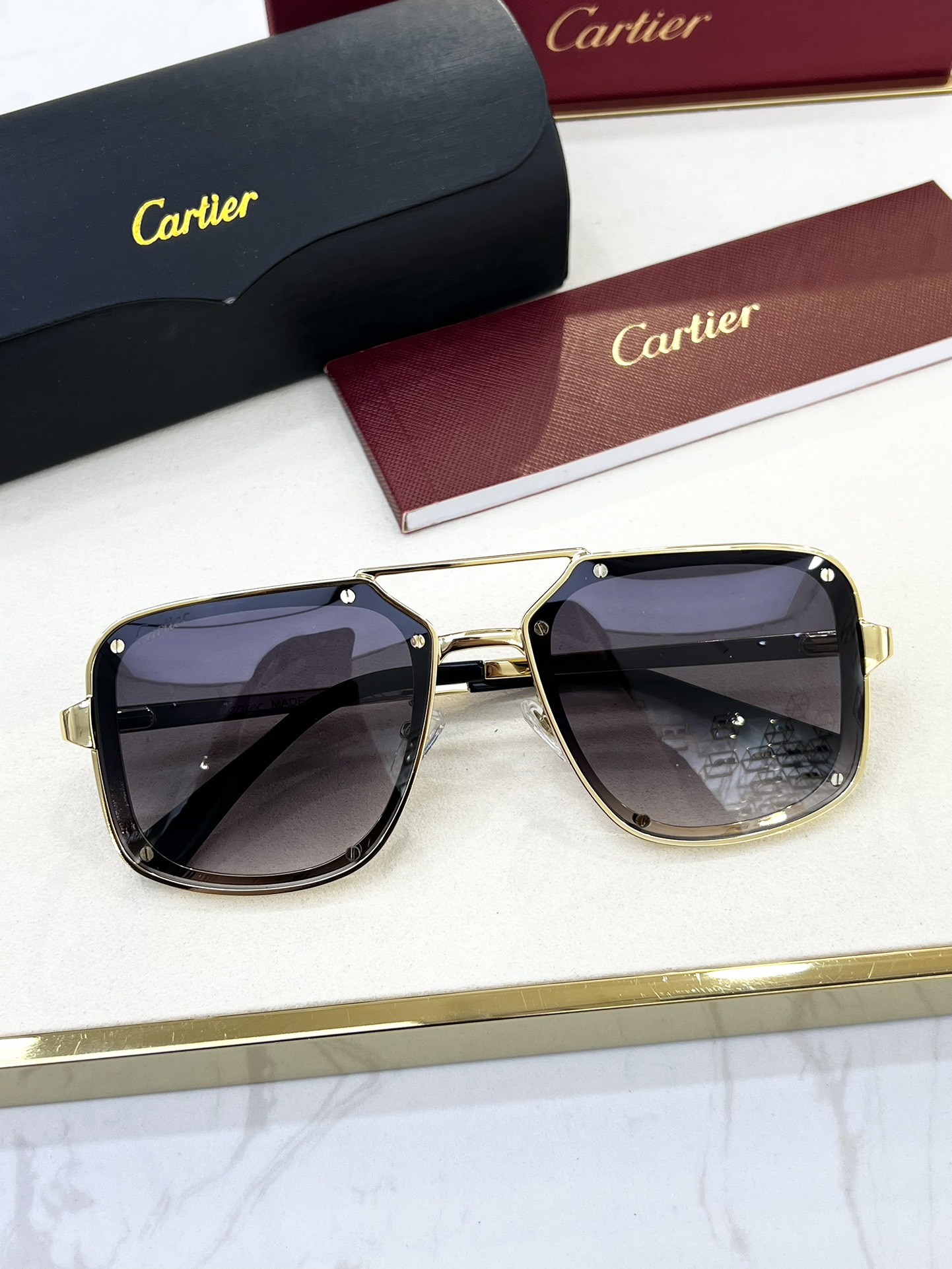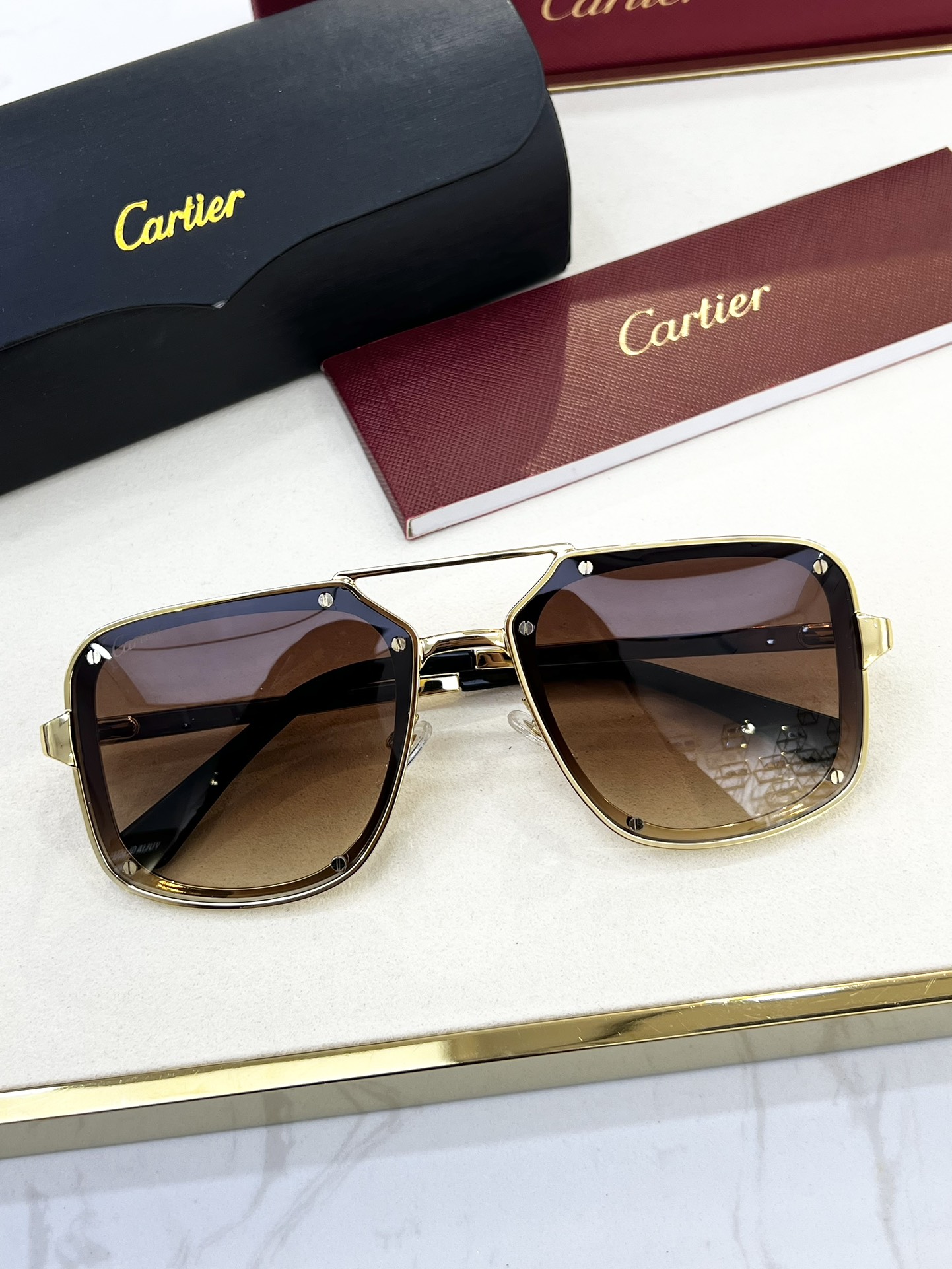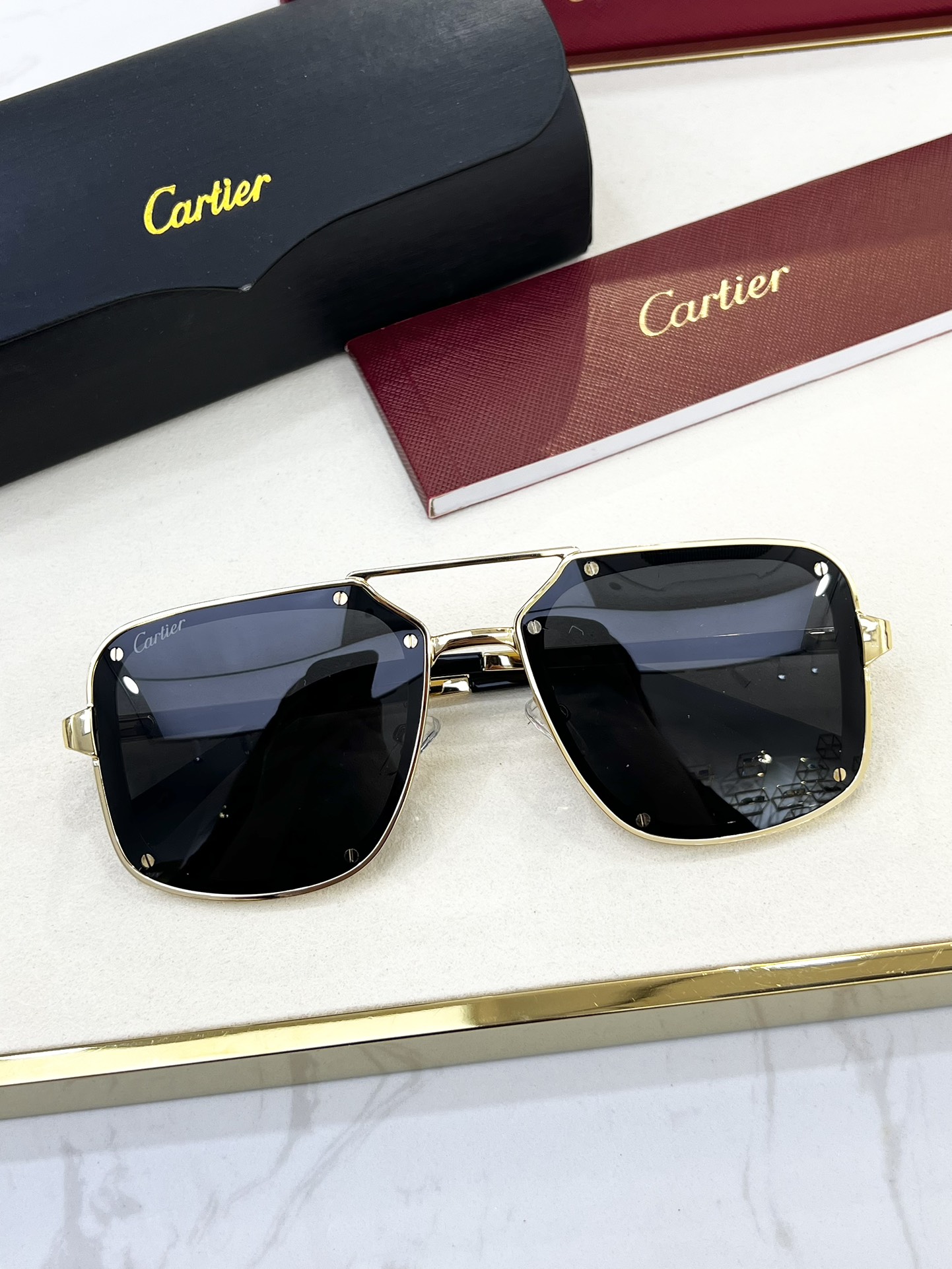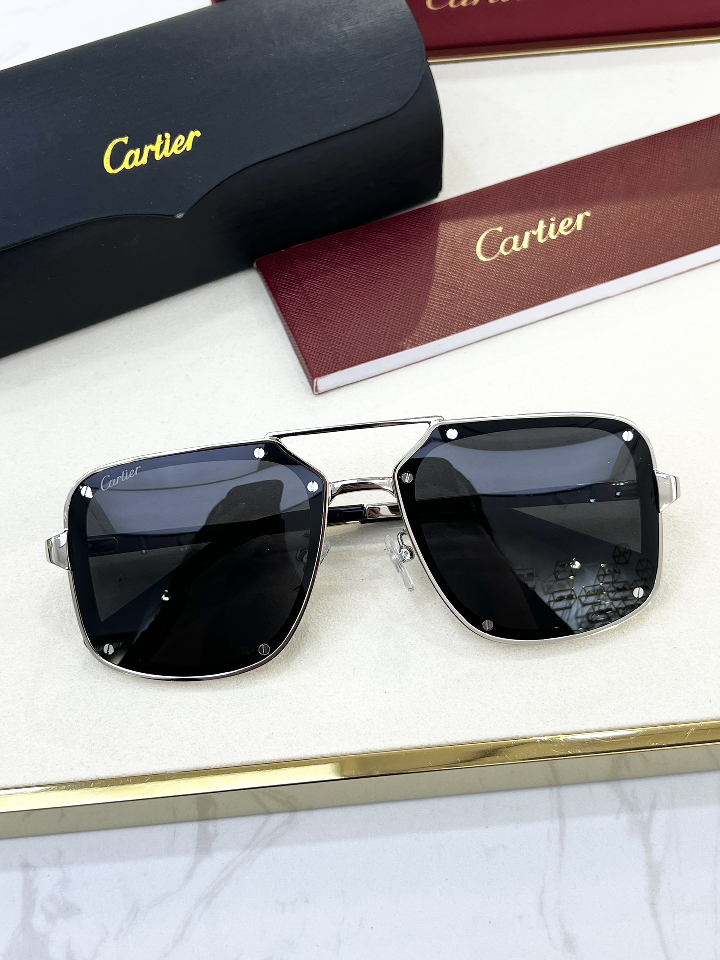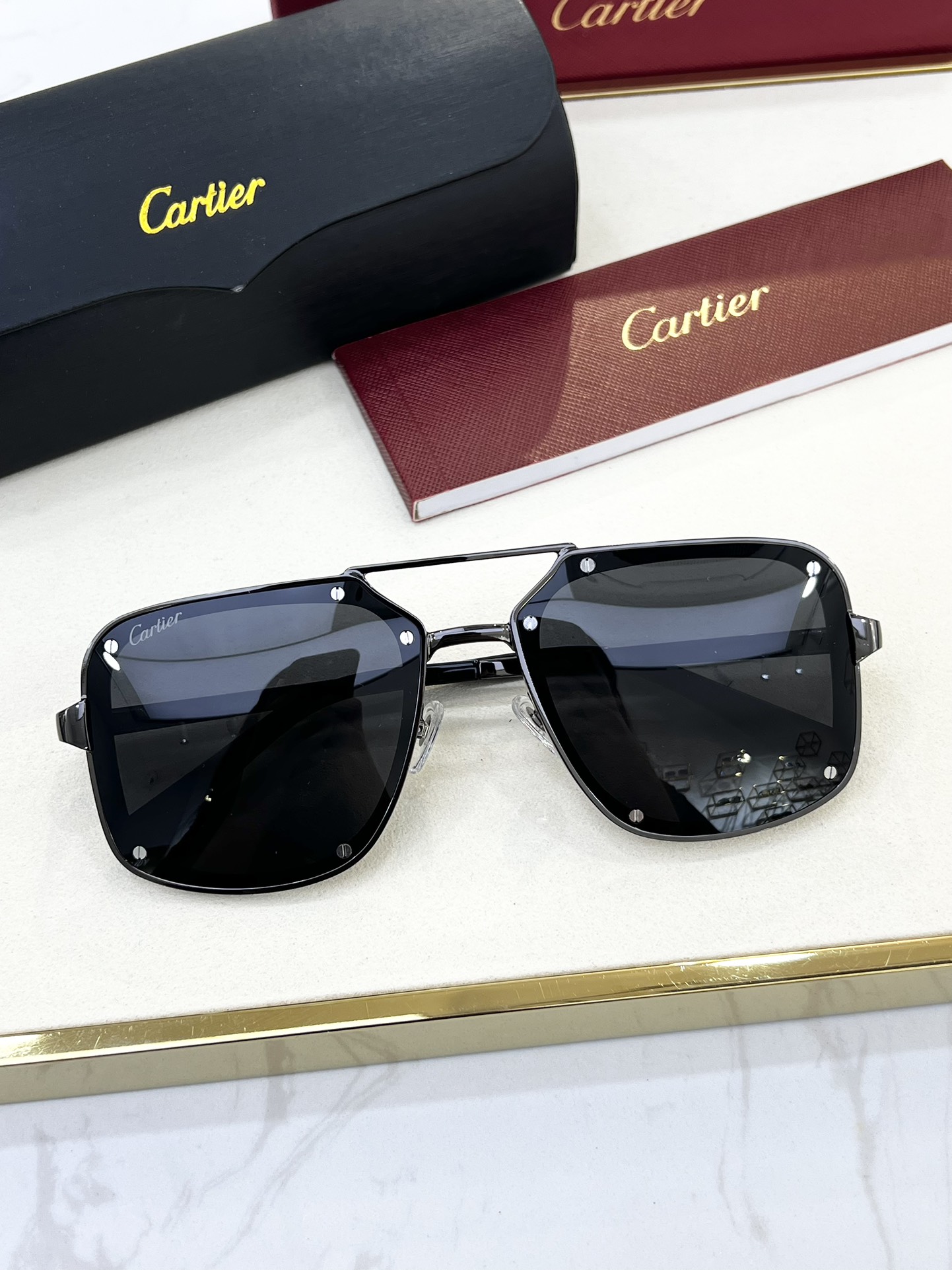 這款太陽眼鏡是AAAAA 1:1 質量(非常棒). 使用了和原版一模一樣的材料. 商標部分也保持了和卡地亞/Cartier一樣. 圖片拍攝是實物太陽眼鏡拍攝, 您所收到的實物保證和我們圖片一模一樣.