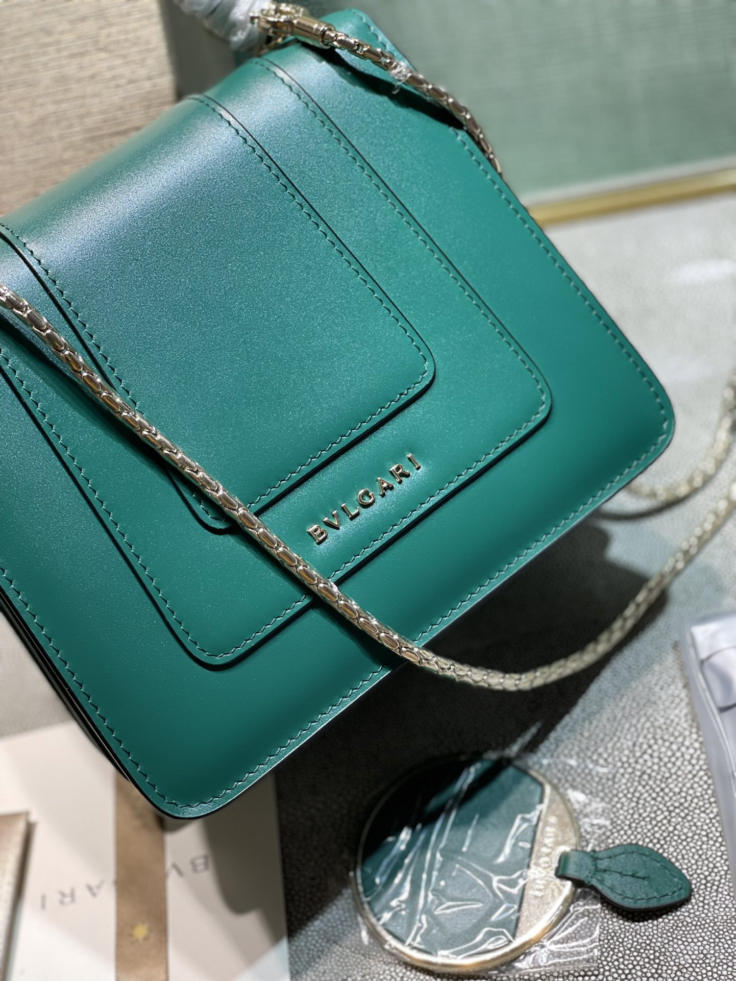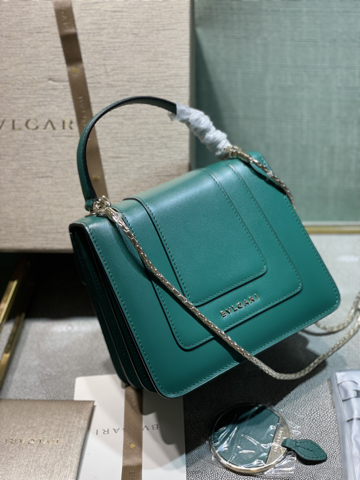 這款包包是AAAAA 1:1 質量(非常棒). 使用了和原版一模一樣的材料. 商標部分也保持了和寶格麗/Bulgari一樣. 圖片拍攝是實物包包拍攝, 您所收到的實物保證和我們圖片一模一樣.