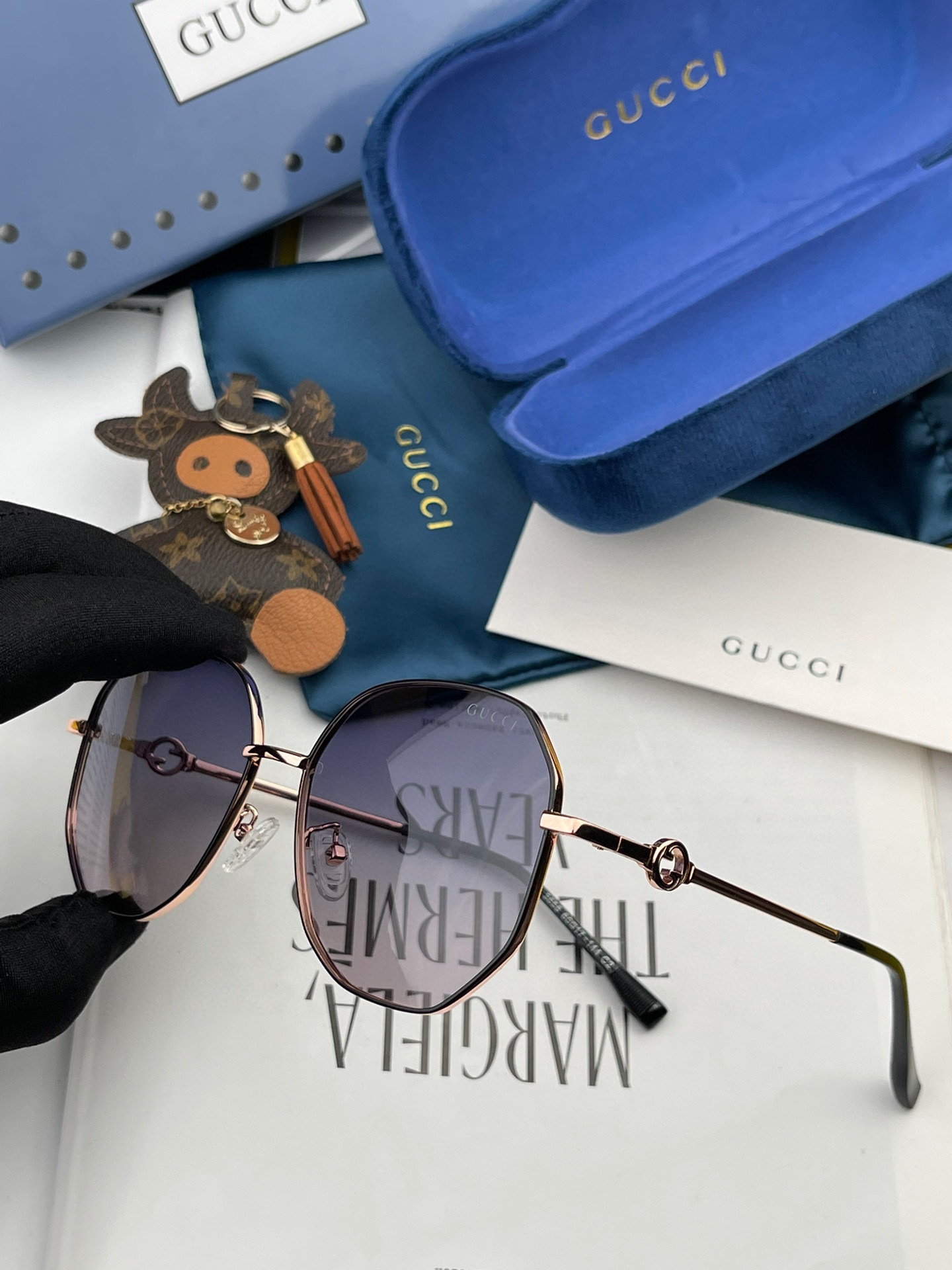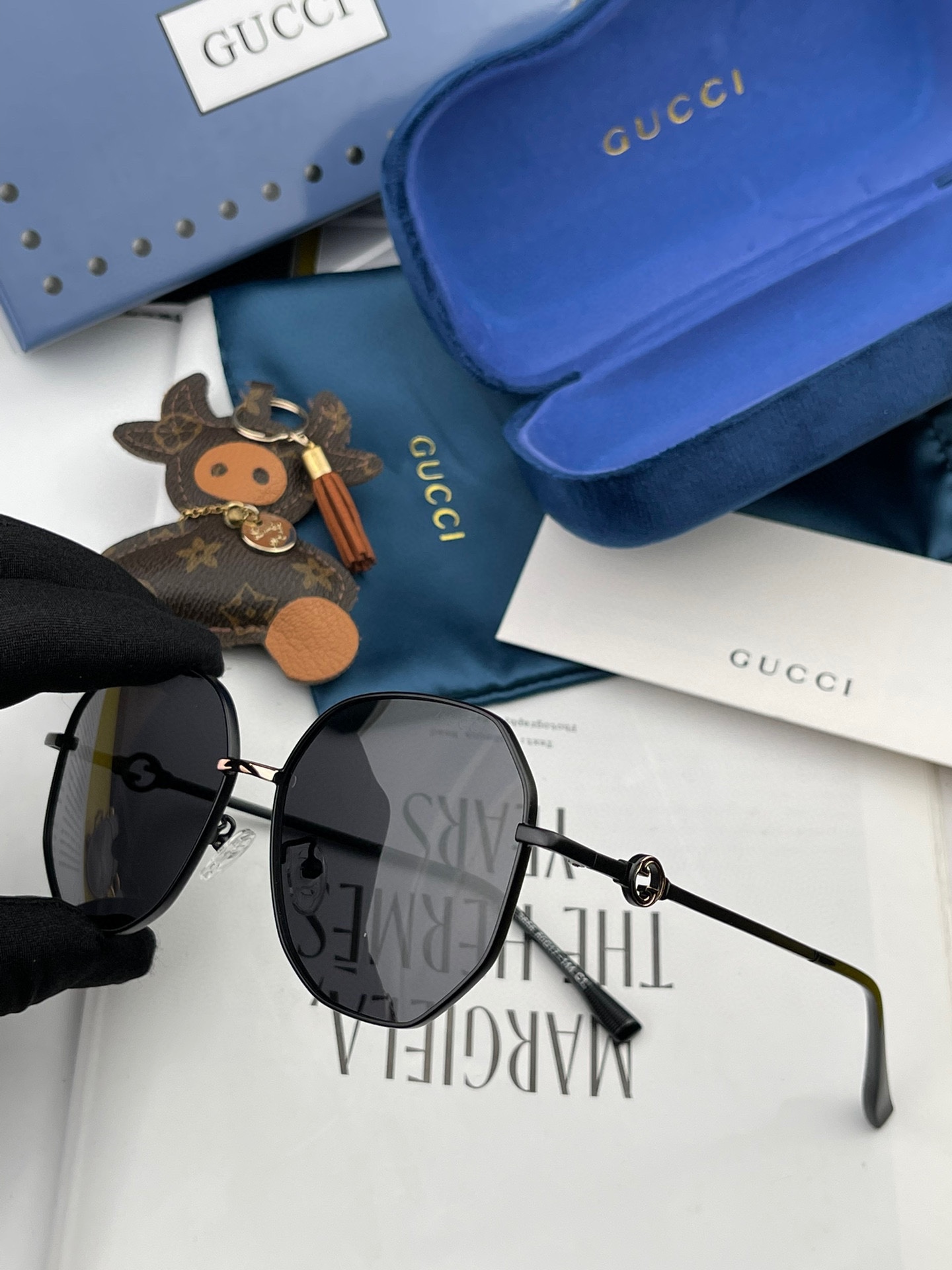 這款太陽眼鏡是AAAAA 1:1 質量(非常棒). 使用了和原版一模一樣的材料. 商標部分也保持了和古奇/Gucci一樣. 圖片拍攝是實物太陽眼鏡拍攝, 您所收到的實物保證和我們圖片一模一樣.