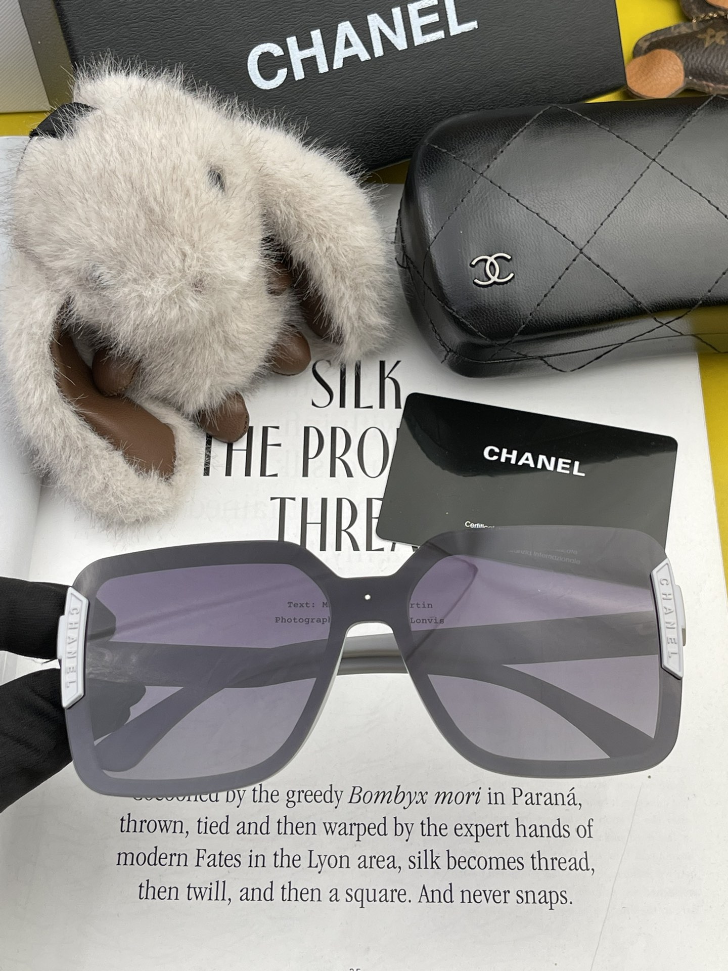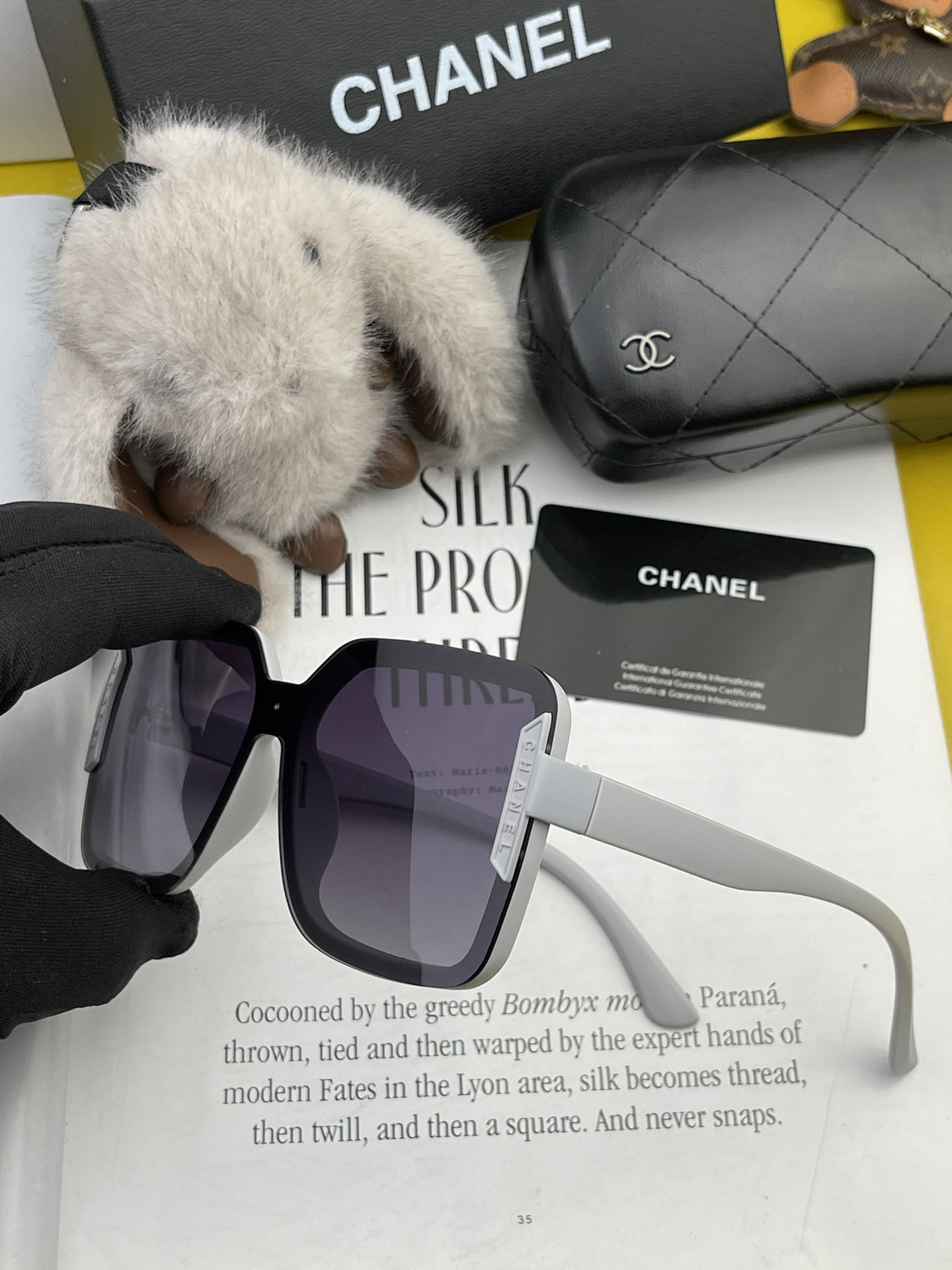 這款太陽眼鏡是AAAAA 1:1 質量(非常棒). 使用了和原版一模一樣的材料. 商標部分也保持了和香奈兒/Chanel一樣. 圖片拍攝是實物太陽眼鏡拍攝, 您所收到的實物保證和我們圖片一模一樣.