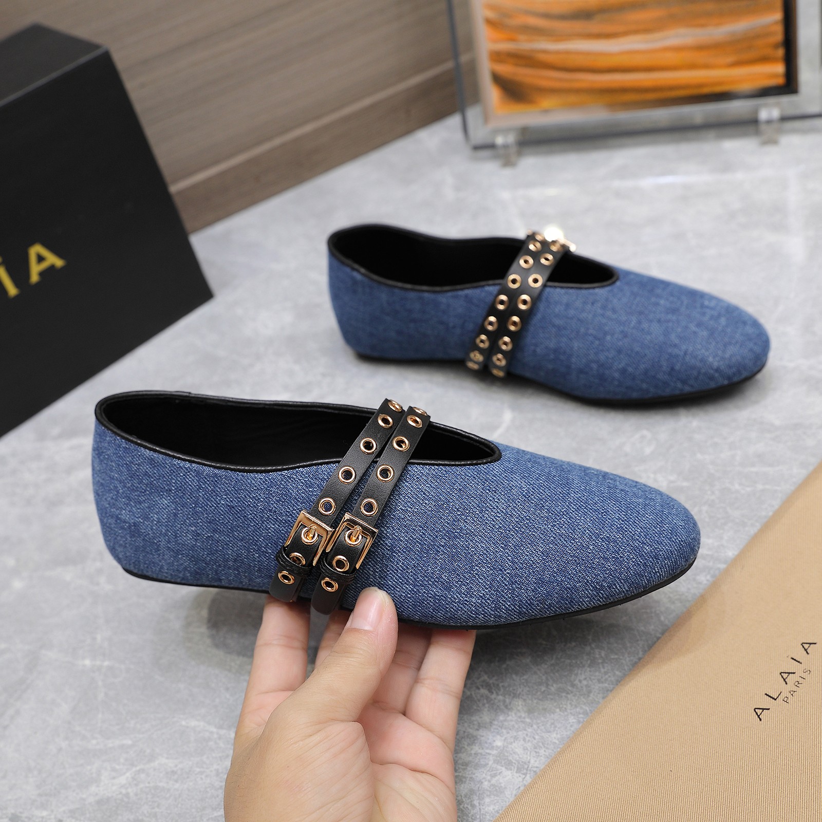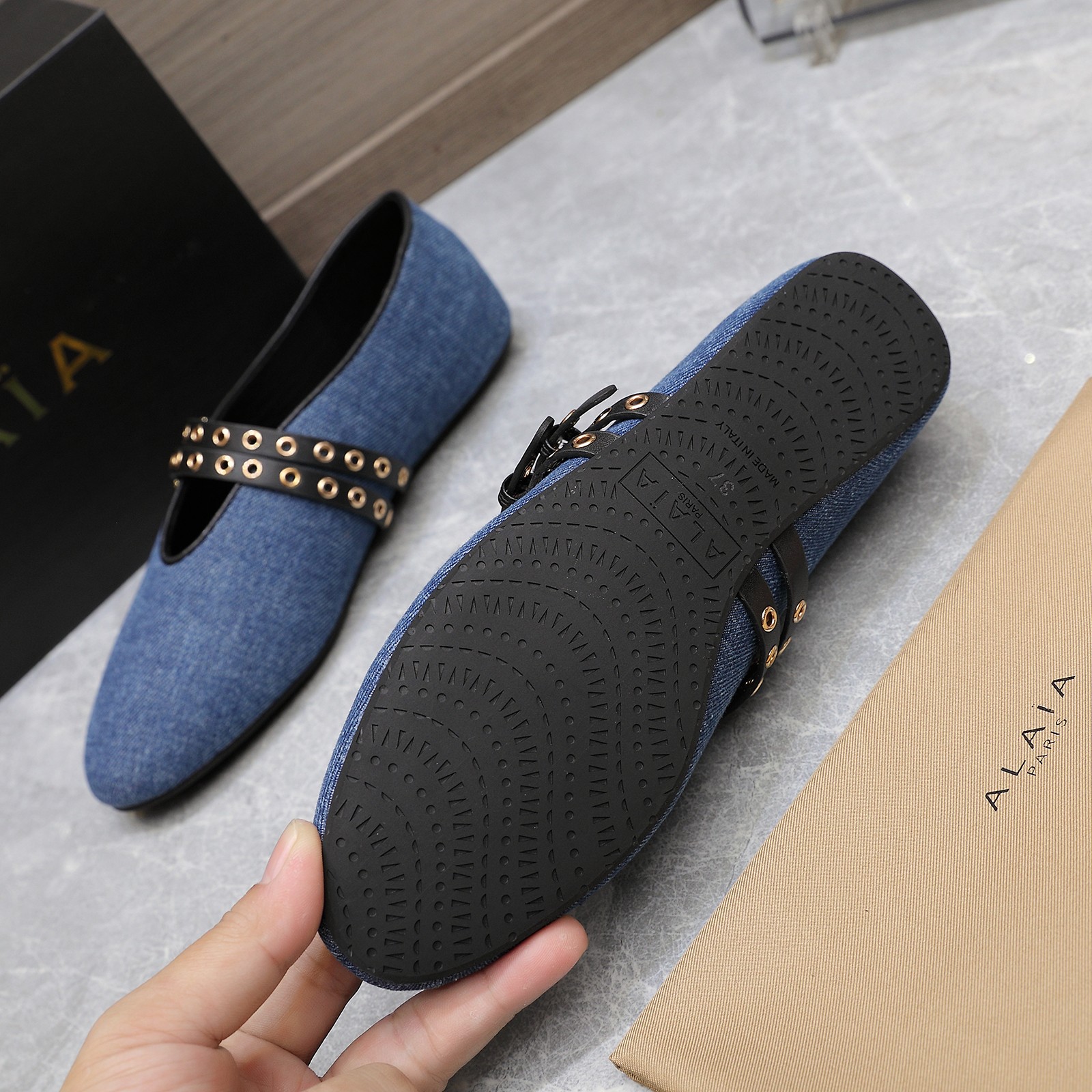 這款鞋子是AAAAA 1:1 質量(非常棒). 使用了和原版一模一樣的材料. 商標部分也保持了和Alaia一樣. 圖片拍攝是實物鞋子拍攝, 您所收到的實物保證和我們圖片一模一樣.