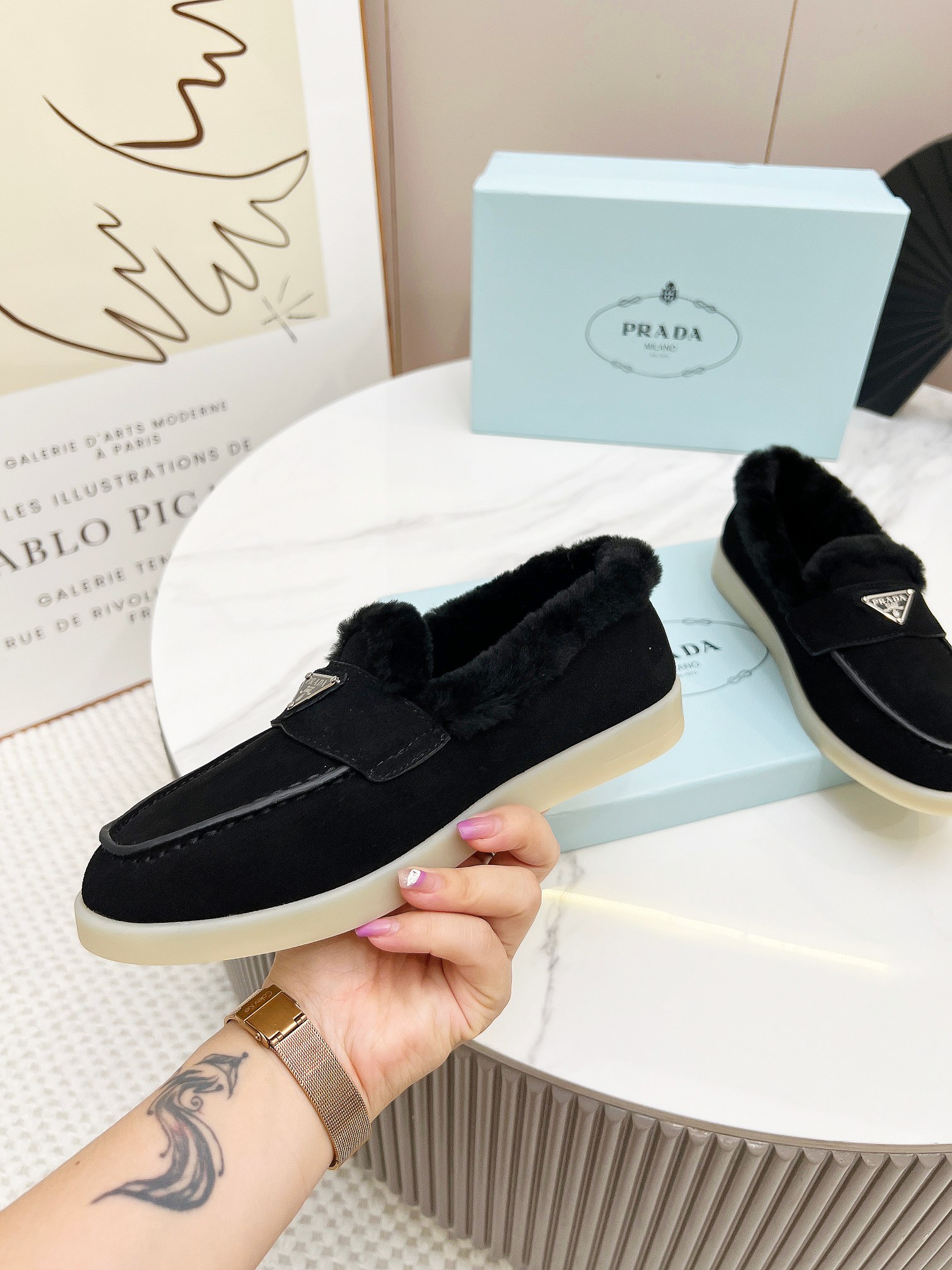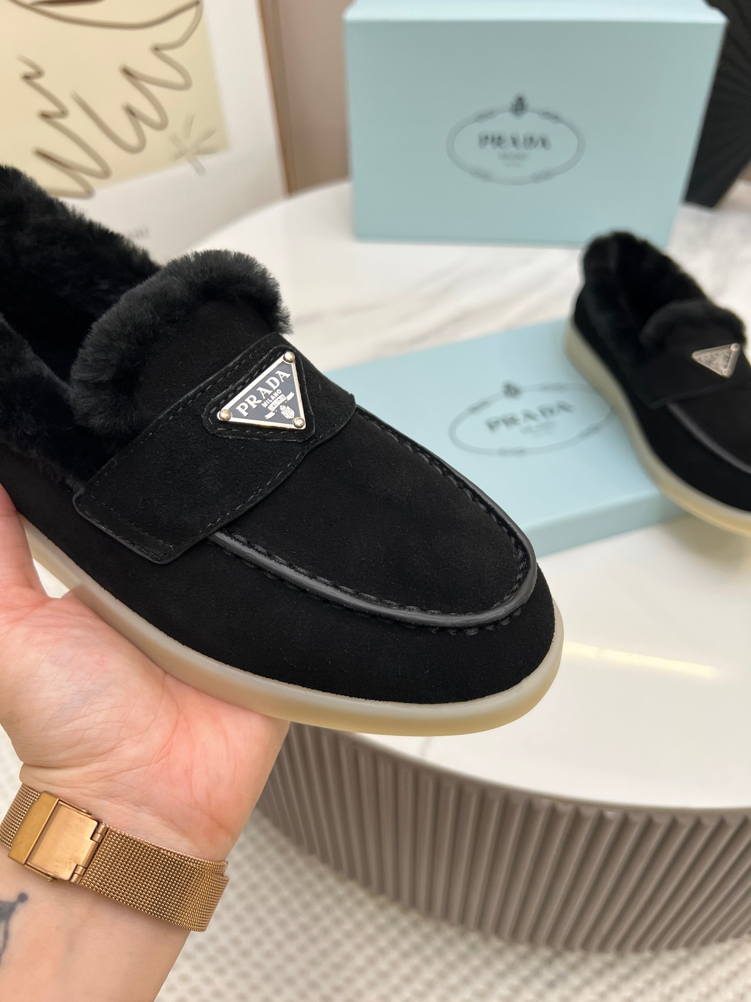 這款鞋子是AAAAA 1:1 質量(非常棒). 使用了和原版一模一樣的材料. 商標部分也保持了和普拉達/Prada一樣. 圖片拍攝是實物鞋子拍攝, 您所收到的實物保證和我們圖片一模一樣.