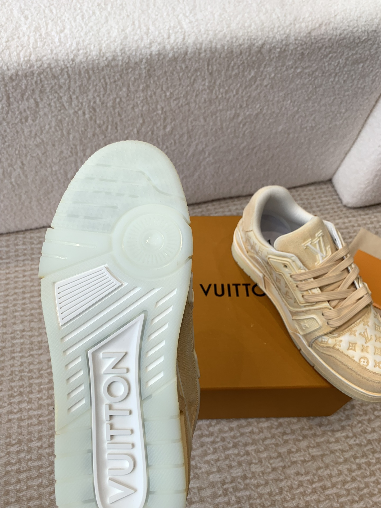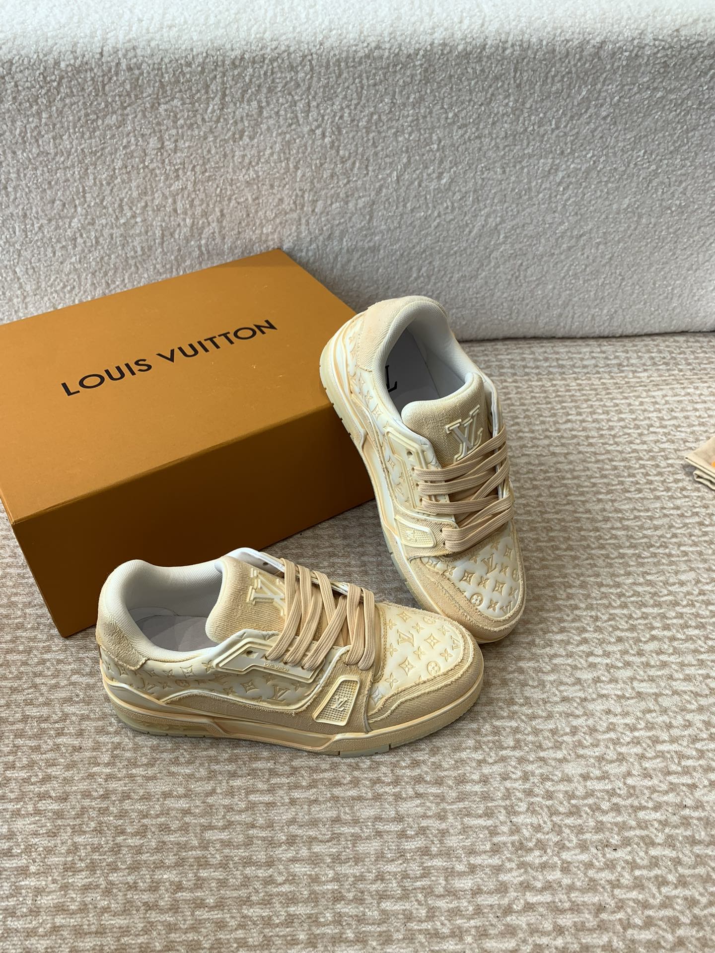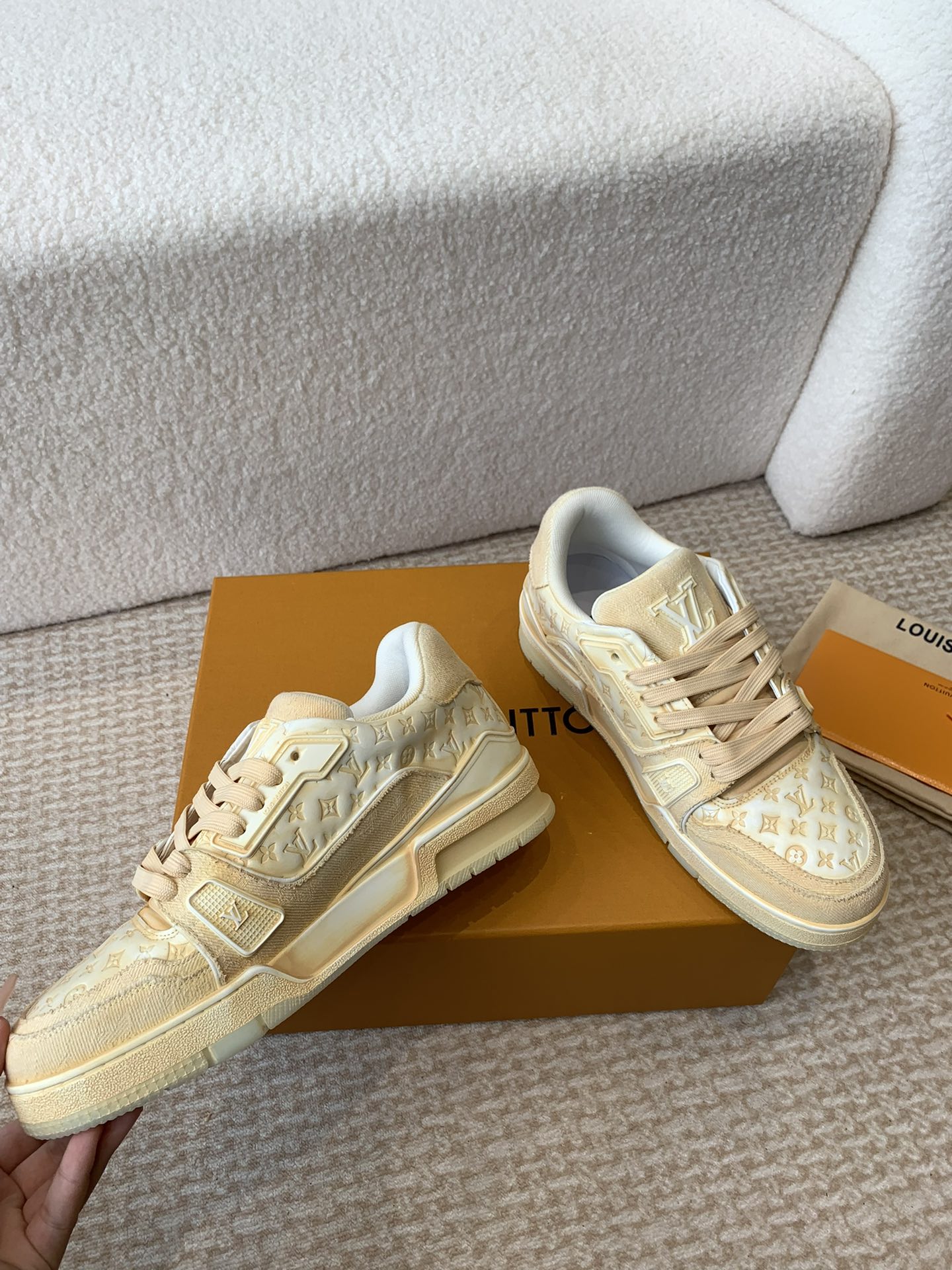 這款鞋子是AAAAA 1:1 質量(非常棒). 使用了和原版一模一樣的材料. 商標部分也保持了和路易威登/Louis Vuitton一樣. 圖片拍攝是實物鞋子拍攝, 您所收到的實物保證和我們圖片一模一樣.