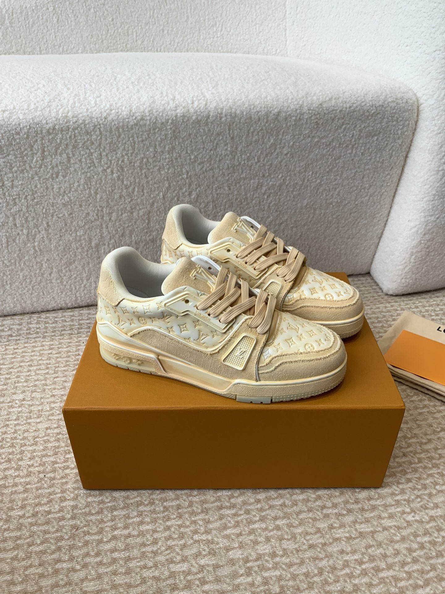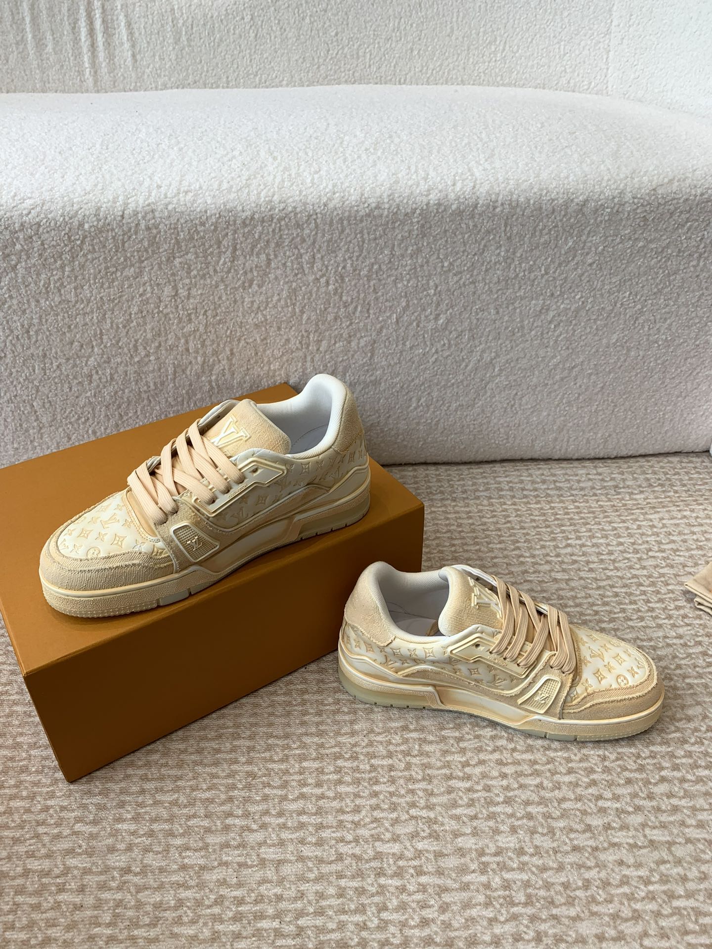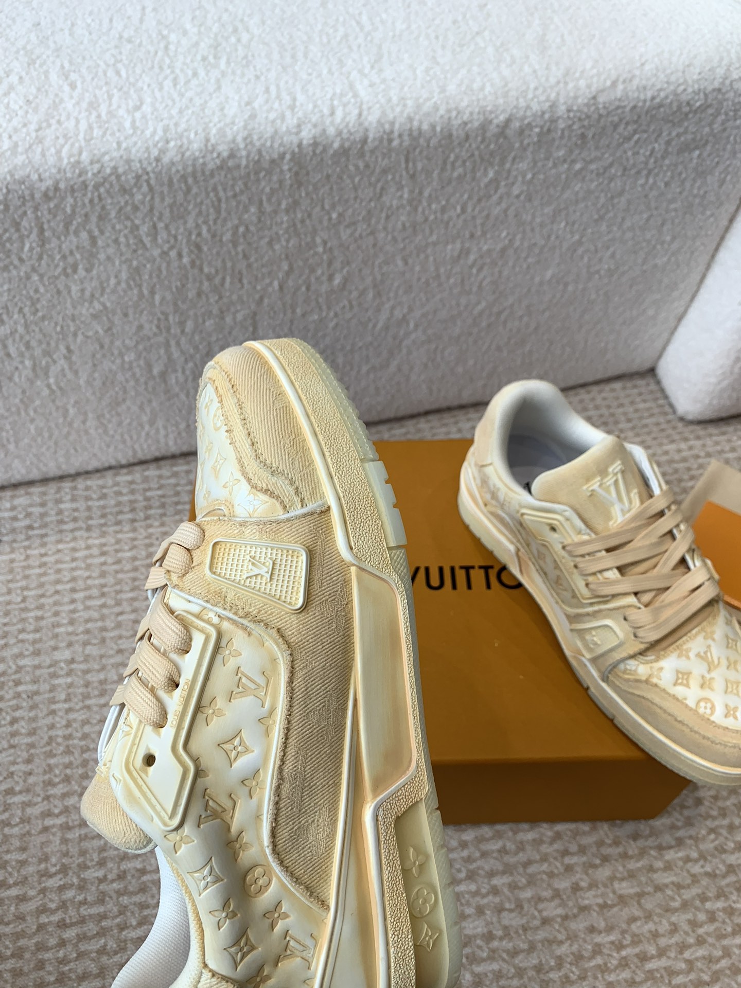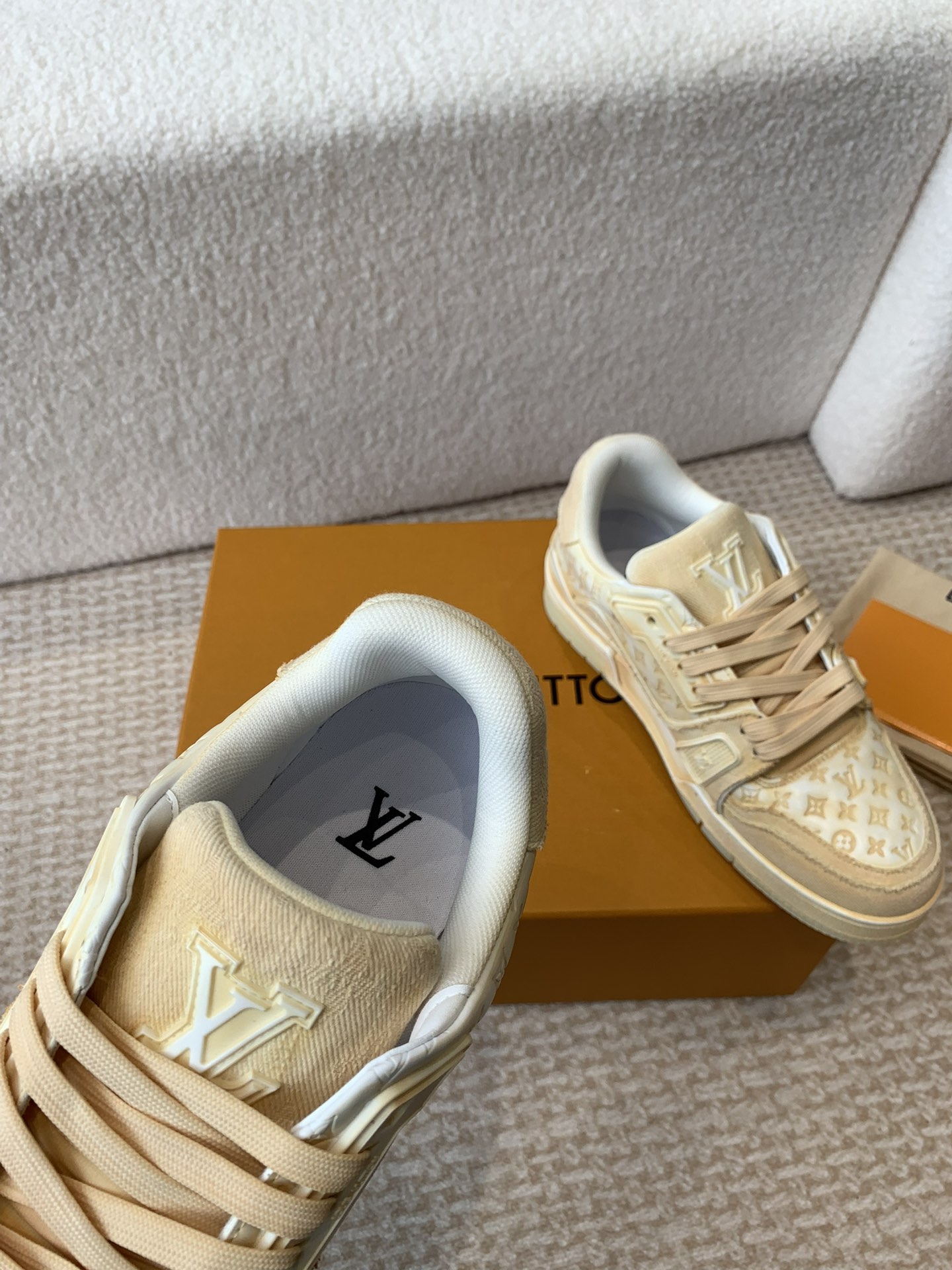 這款鞋子是AAAAA 1:1 質量(非常棒). 使用了和原版一模一樣的材料. 商標部分也保持了和路易威登/Louis Vuitton一樣. 圖片拍攝是實物鞋子拍攝, 您所收到的實物保證和我們圖片一模一樣.