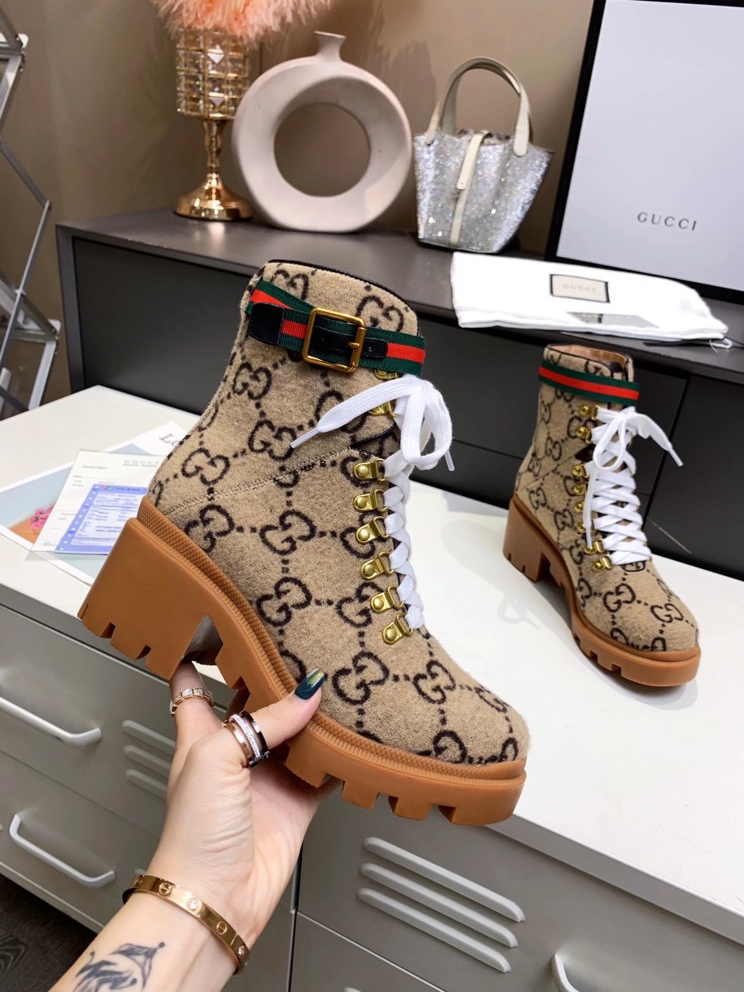 這款鞋子是AAAAA 1:1 質量(非常棒). 使用了和原版一模一樣的材料. 商標部分也保持了和古奇/Gucci一樣. 圖片拍攝是實物鞋子拍攝, 您所收到的實物保證和我們圖片一模一樣.