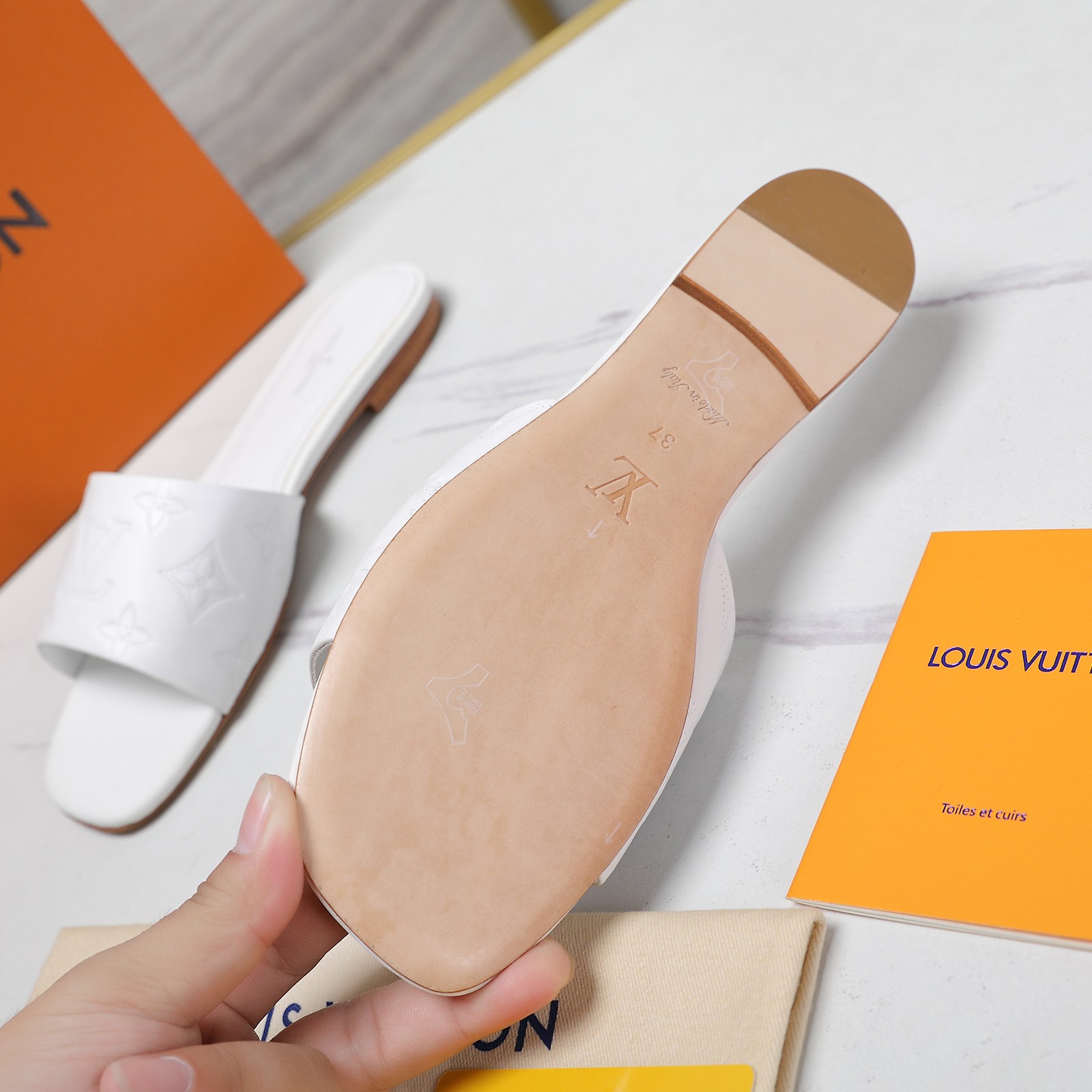 這款鞋子是AAAAA 1:1 質量(非常棒). 使用了和原版一模一樣的材料. 商標部分也保持了和路易威登/Louis Vuitton一樣. 圖片拍攝是實物鞋子拍攝, 您所收到的實物保證和我們圖片一模一樣.