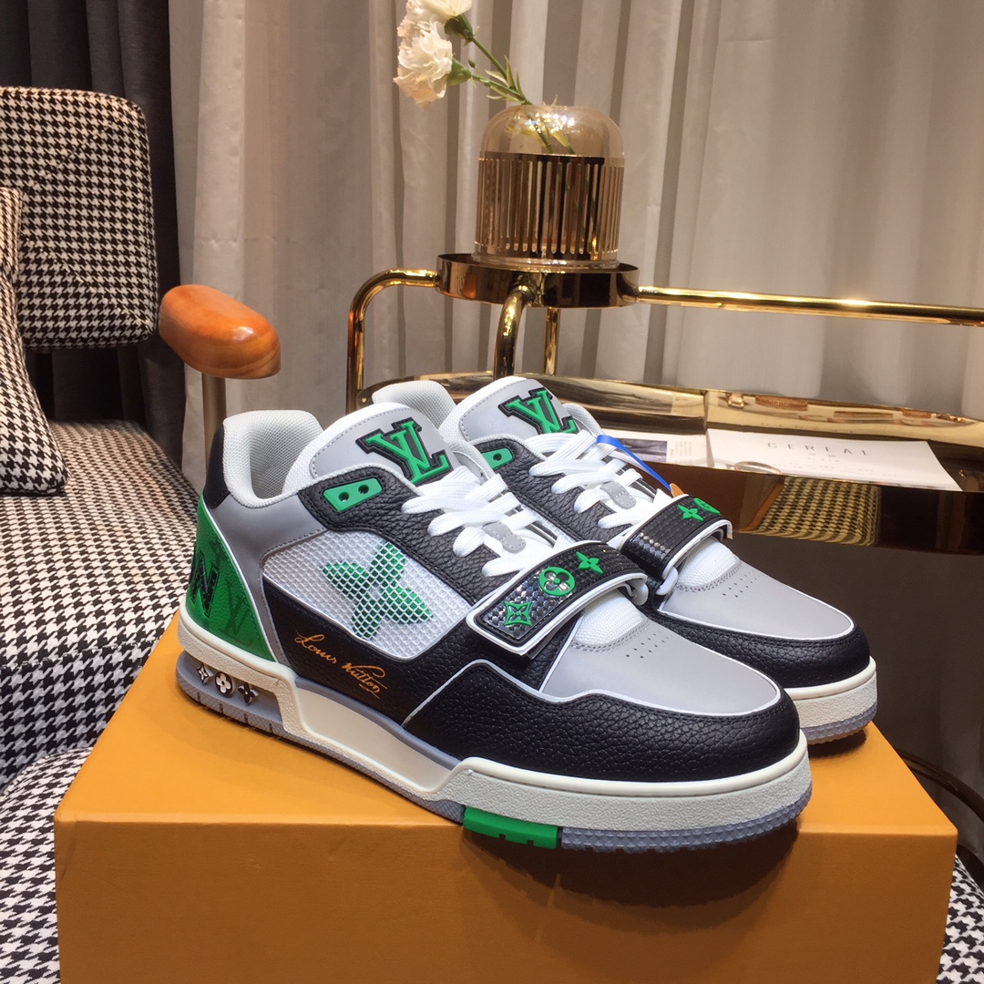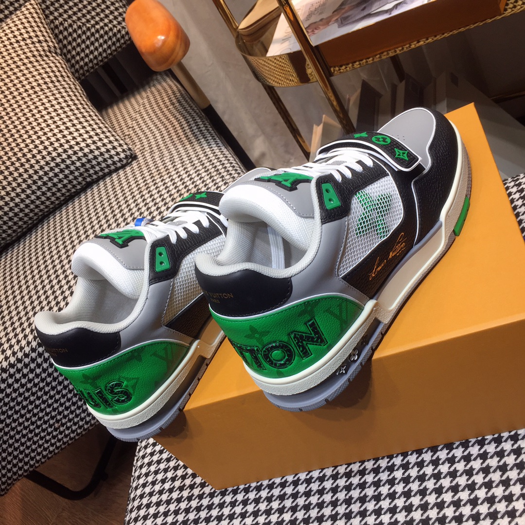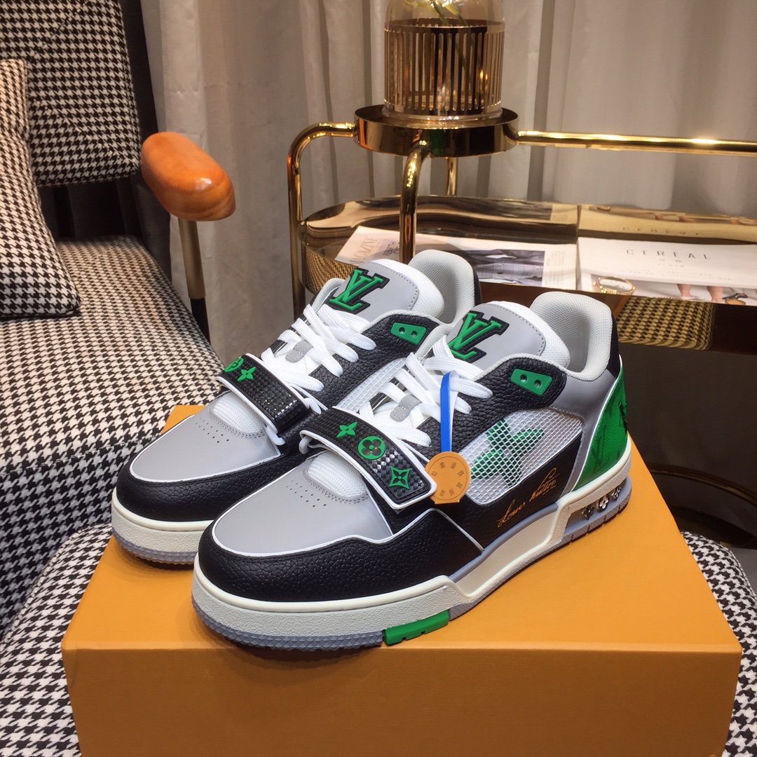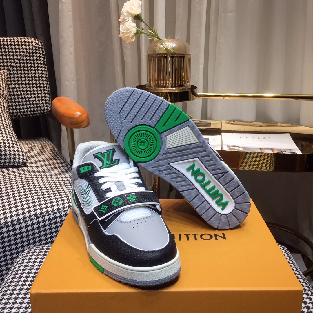 這款鞋子是AAAAA 1:1 質量(非常棒). 使用了和原版一模一樣的材料. 商標部分也保持了和路易威登/Louis Vuitton一樣. 圖片拍攝是實物鞋子拍攝, 您所收到的實物保證和我們圖片一模一樣.