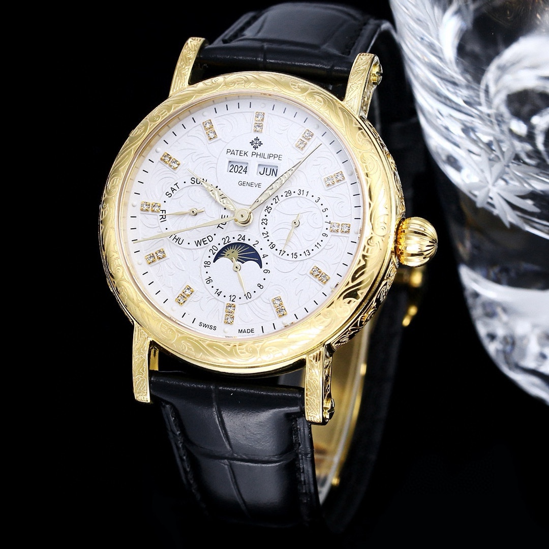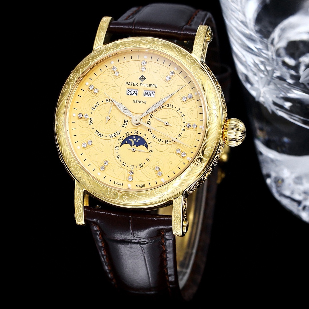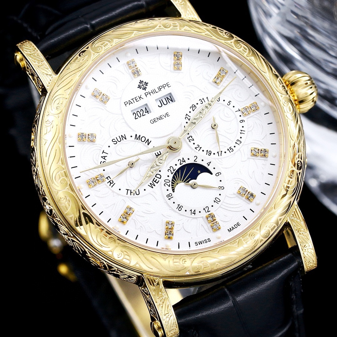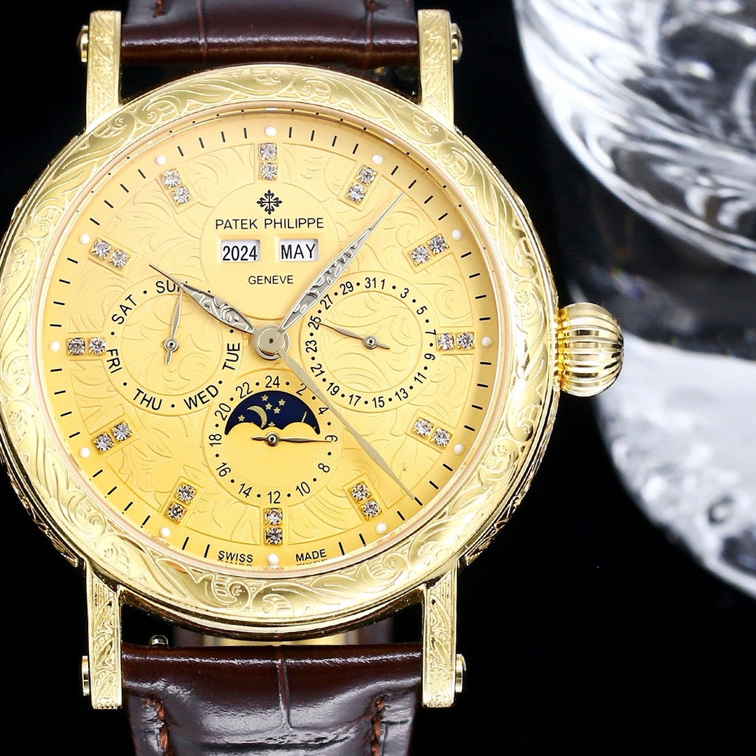 這款手錶是AAAAA 1:1 質量(非常棒). 使用了和原版一模一樣的材料. 商標部分也保持了和百達翡麗/Patek Philippe一樣. 圖片拍攝是實物手錶拍攝, 您所收到的實物保證和我們圖片一模一樣.