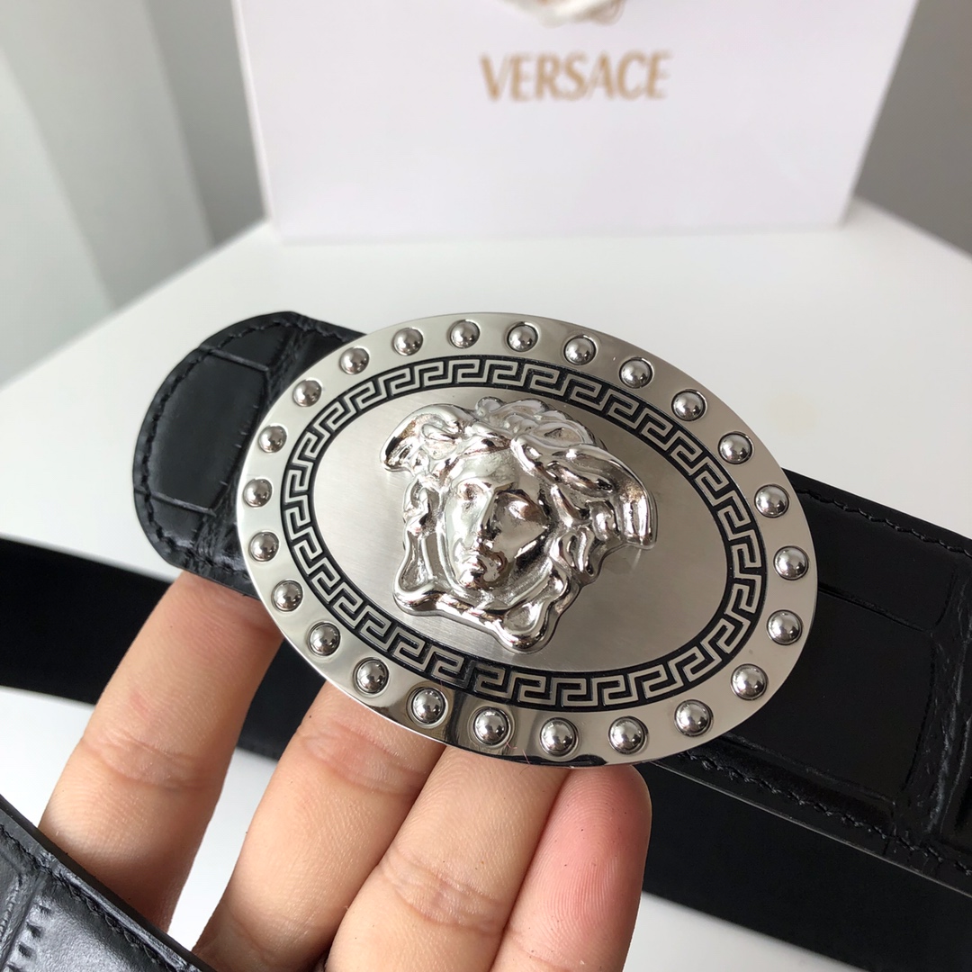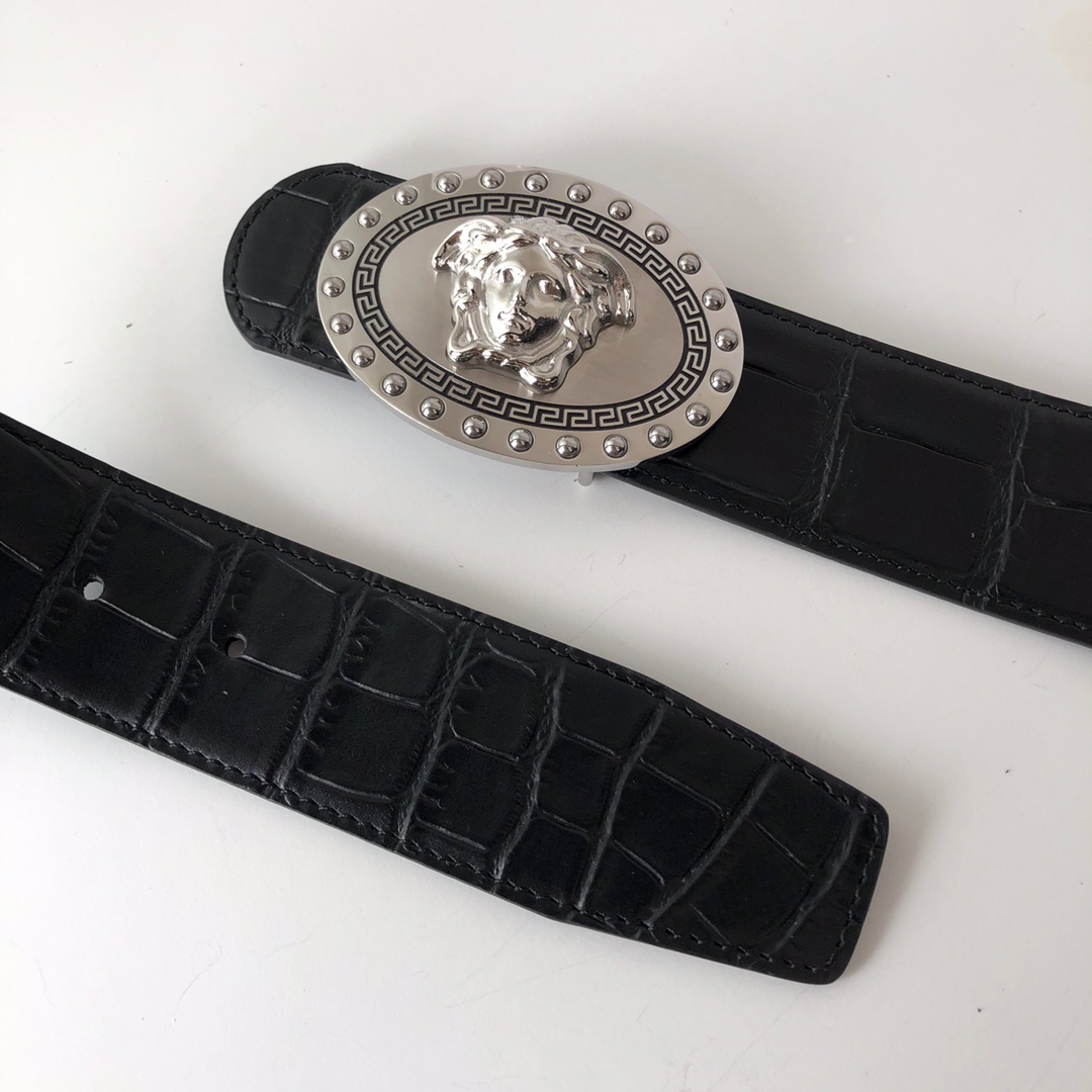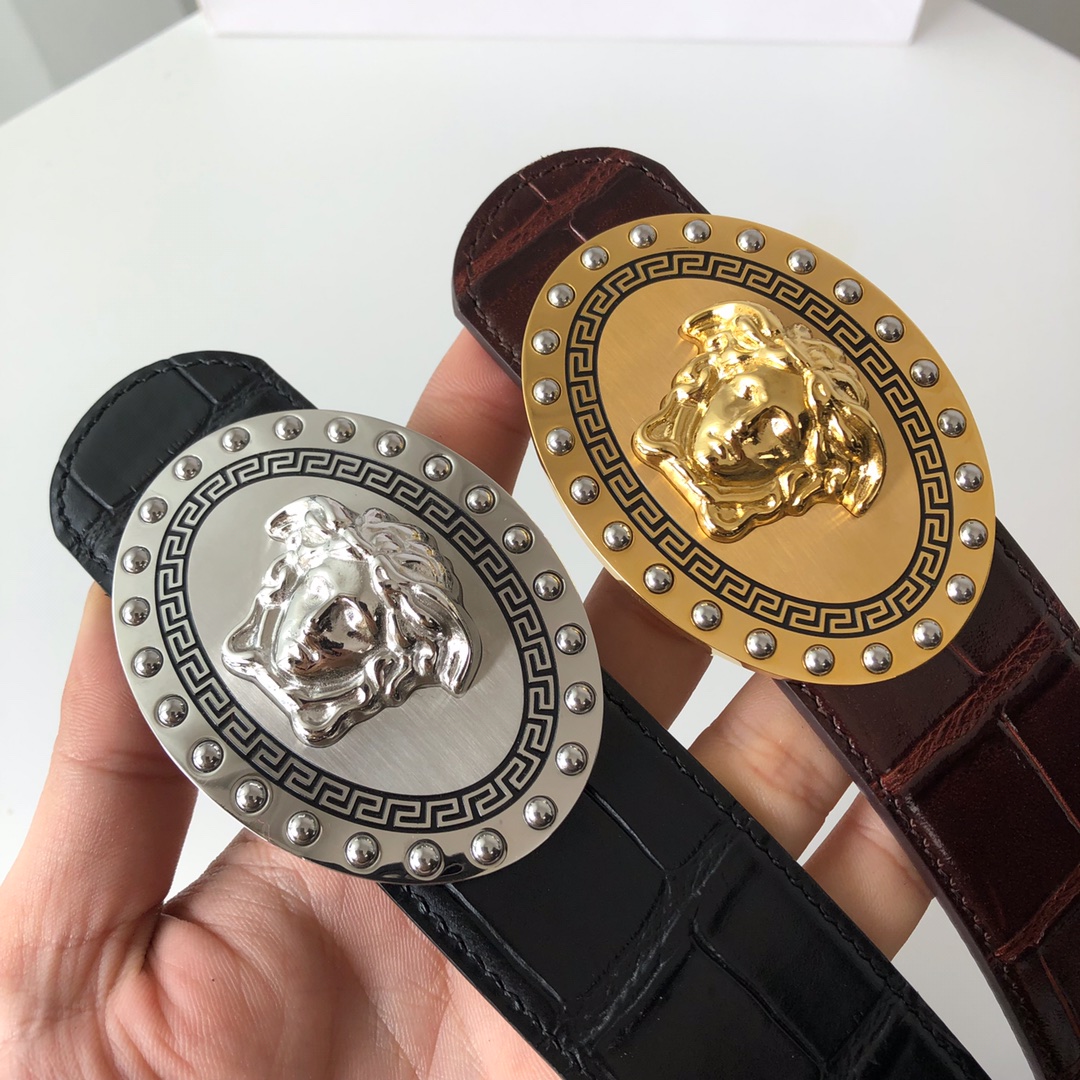 這款皮帶是AAAAA 1:1 質量(非常棒). 使用了和原版一模一樣的材料. 商標部分也保持了和范思哲/Versace一樣. 圖片拍攝是實物皮帶拍攝, 您所收到的實物保證和我們圖片一模一樣.