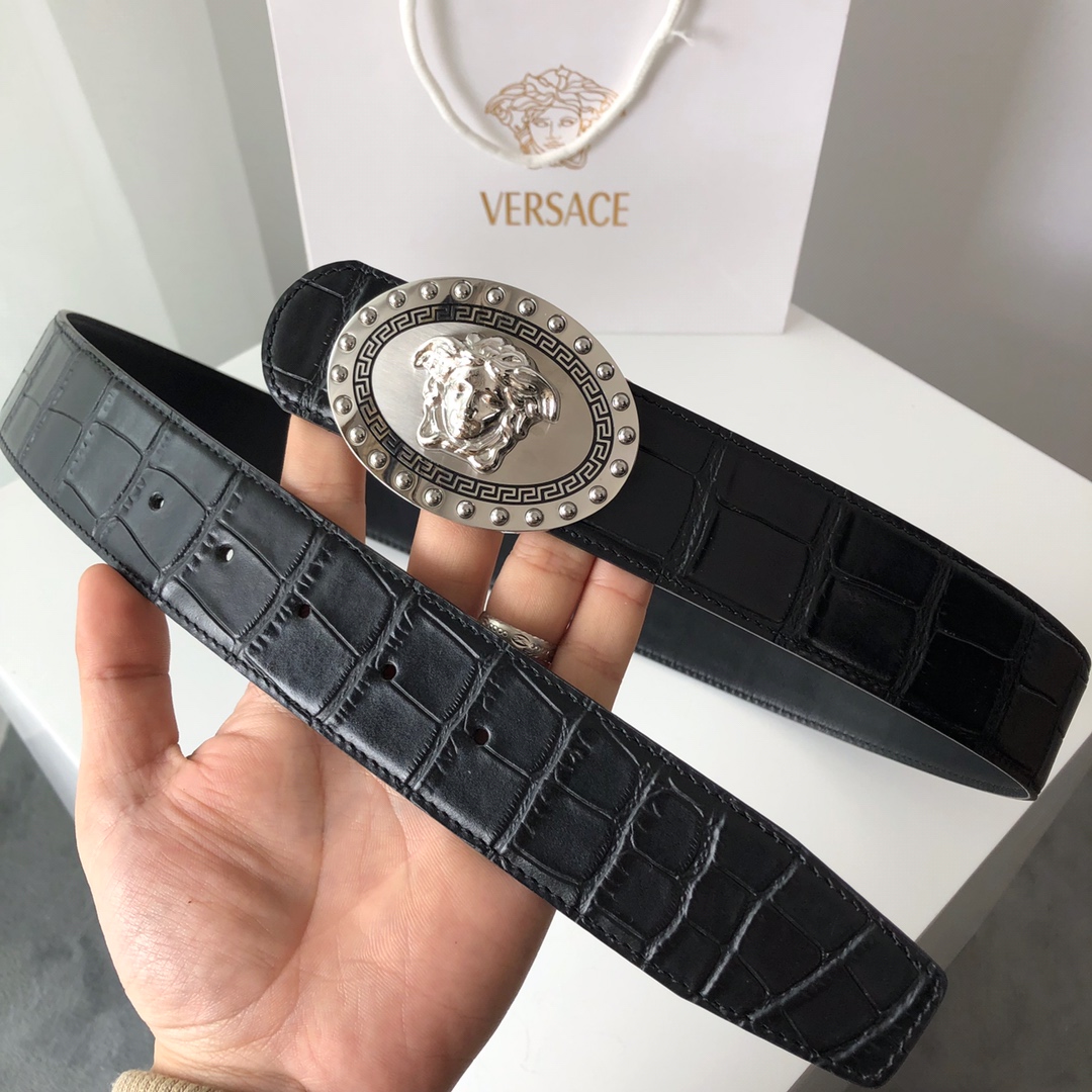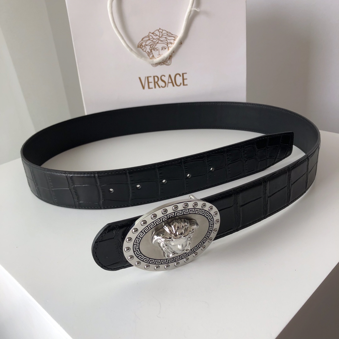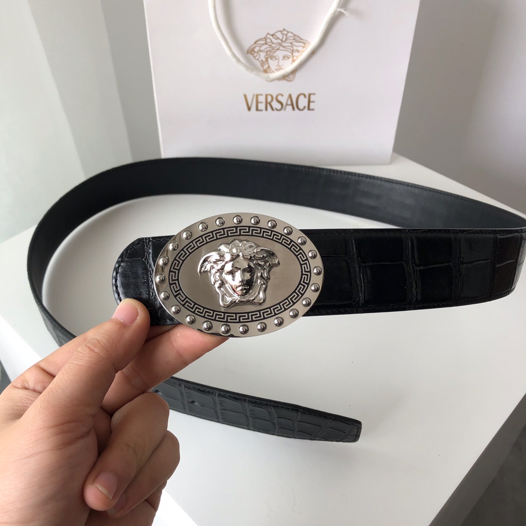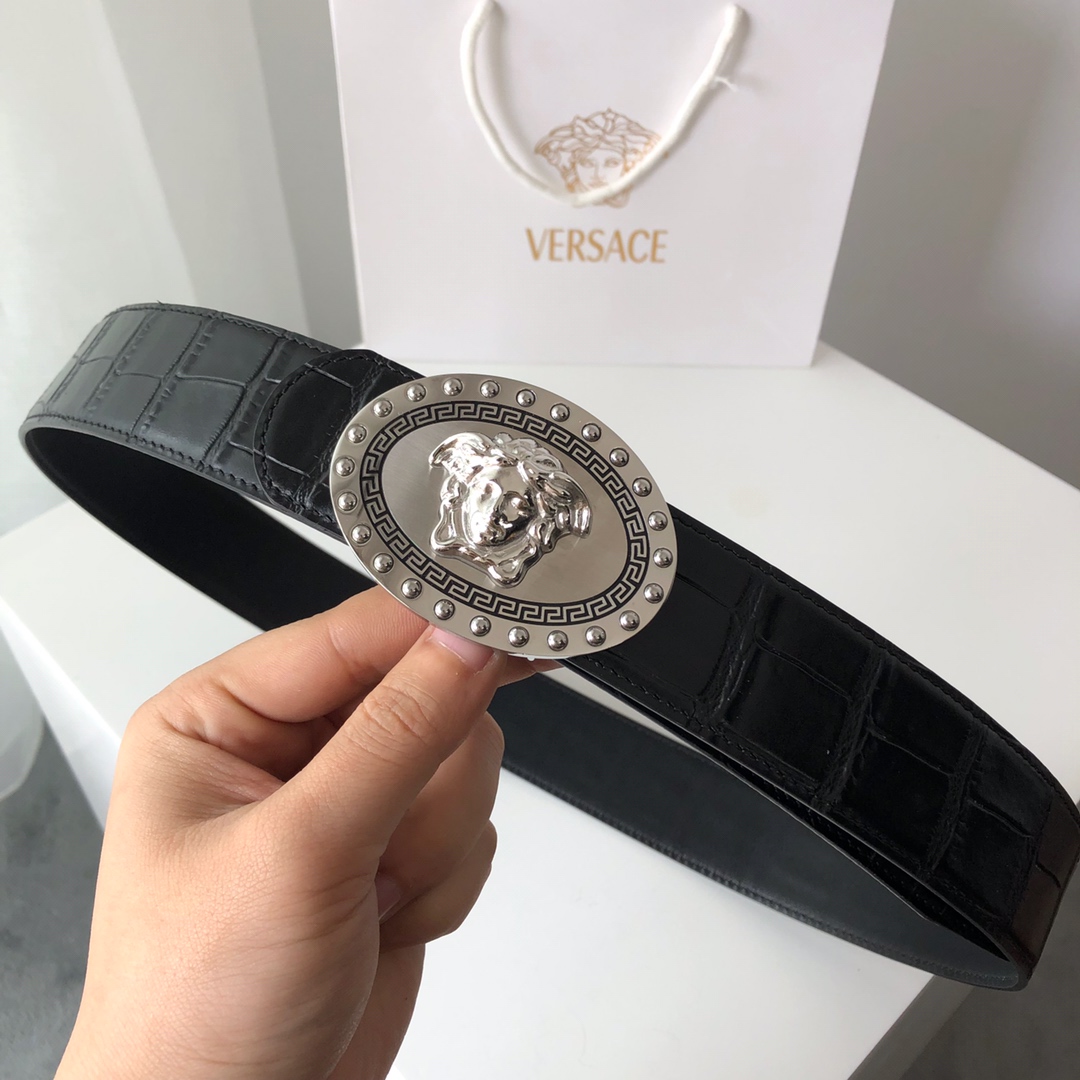 這款皮帶是AAAAA 1:1 質量(非常棒). 使用了和原版一模一樣的材料. 商標部分也保持了和范思哲/Versace一樣. 圖片拍攝是實物皮帶拍攝, 您所收到的實物保證和我們圖片一模一樣.