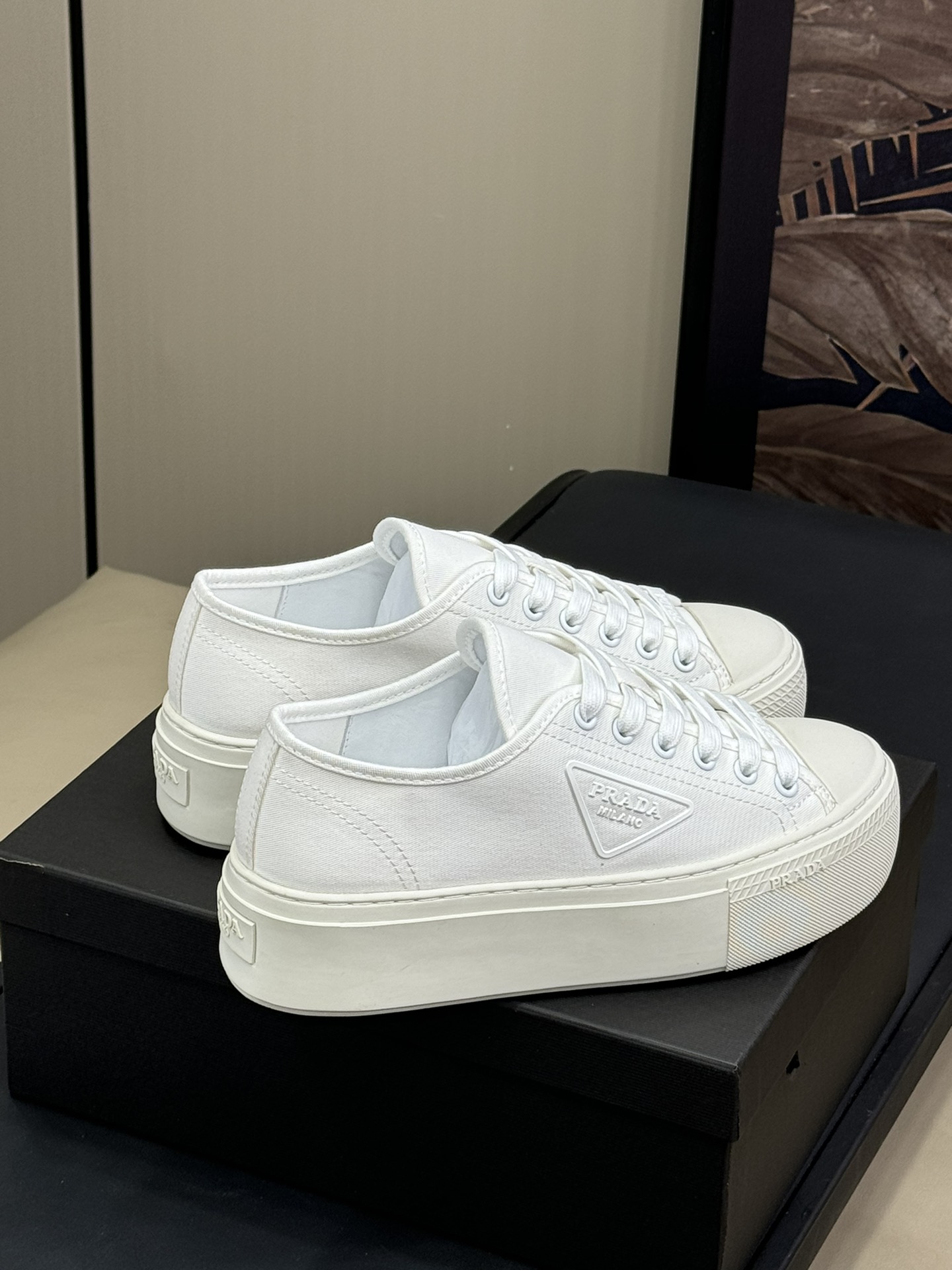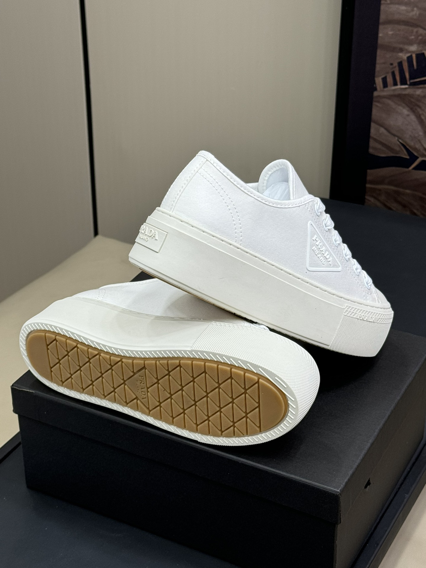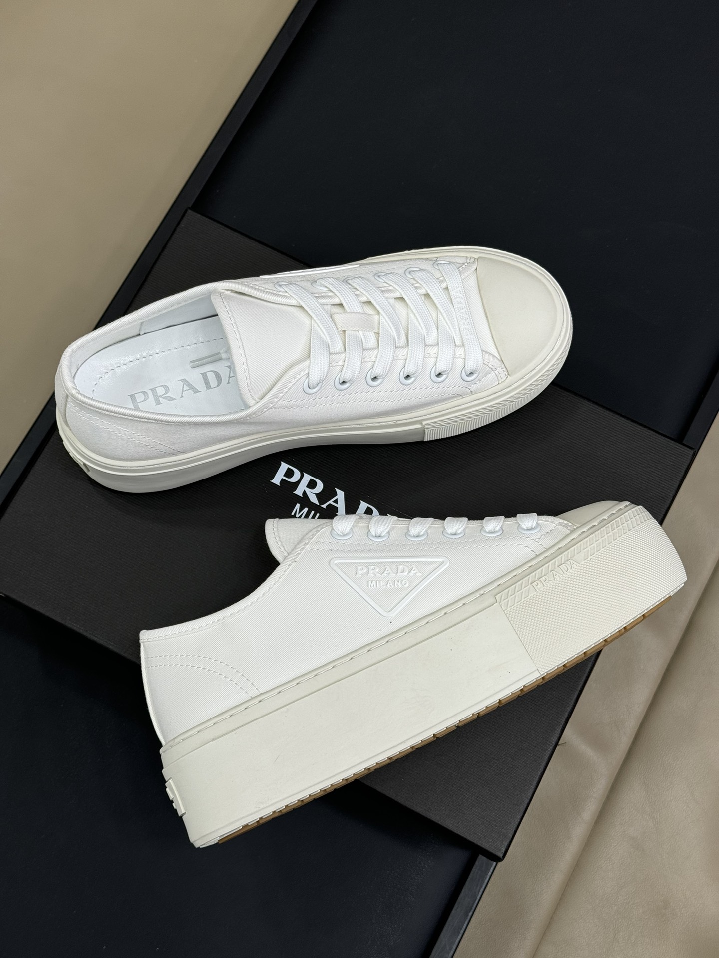 這款鞋子是AAAAA 1:1 質量(非常棒). 使用了和原版一模一樣的材料. 商標部分也保持了和普拉達/Prada一樣. 圖片拍攝是實物鞋子拍攝, 您所收到的實物保證和我們圖片一模一樣.