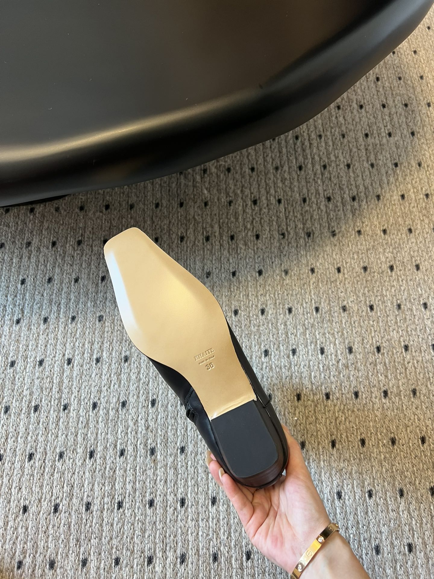 這款鞋子是AAAAA 1:1 質量(非常棒). 使用了和原版一模一樣的材料. 商標部分也保持了和Khaite一樣. 圖片拍攝是實物鞋子拍攝, 您所收到的實物保證和我們圖片一模一樣.