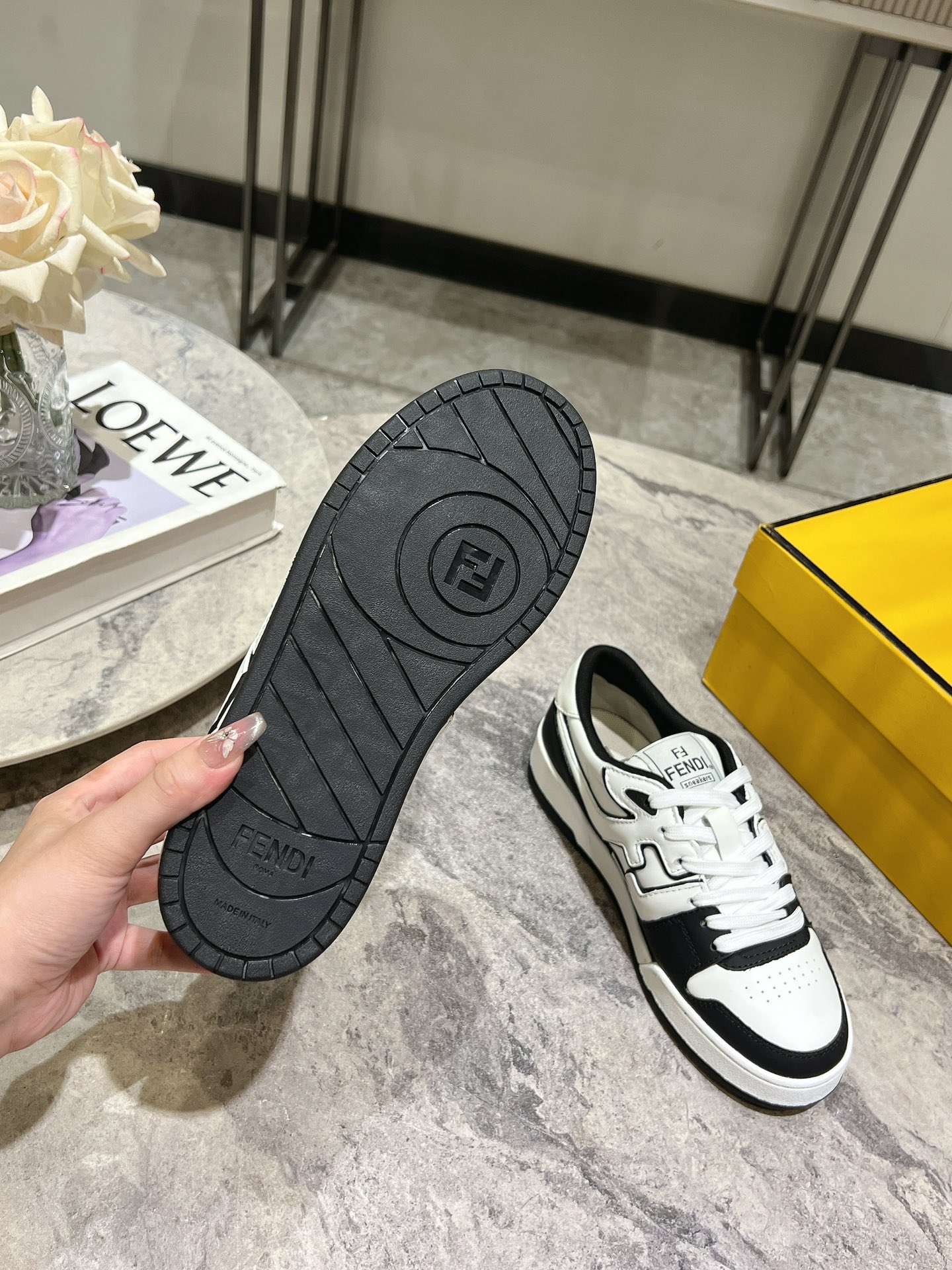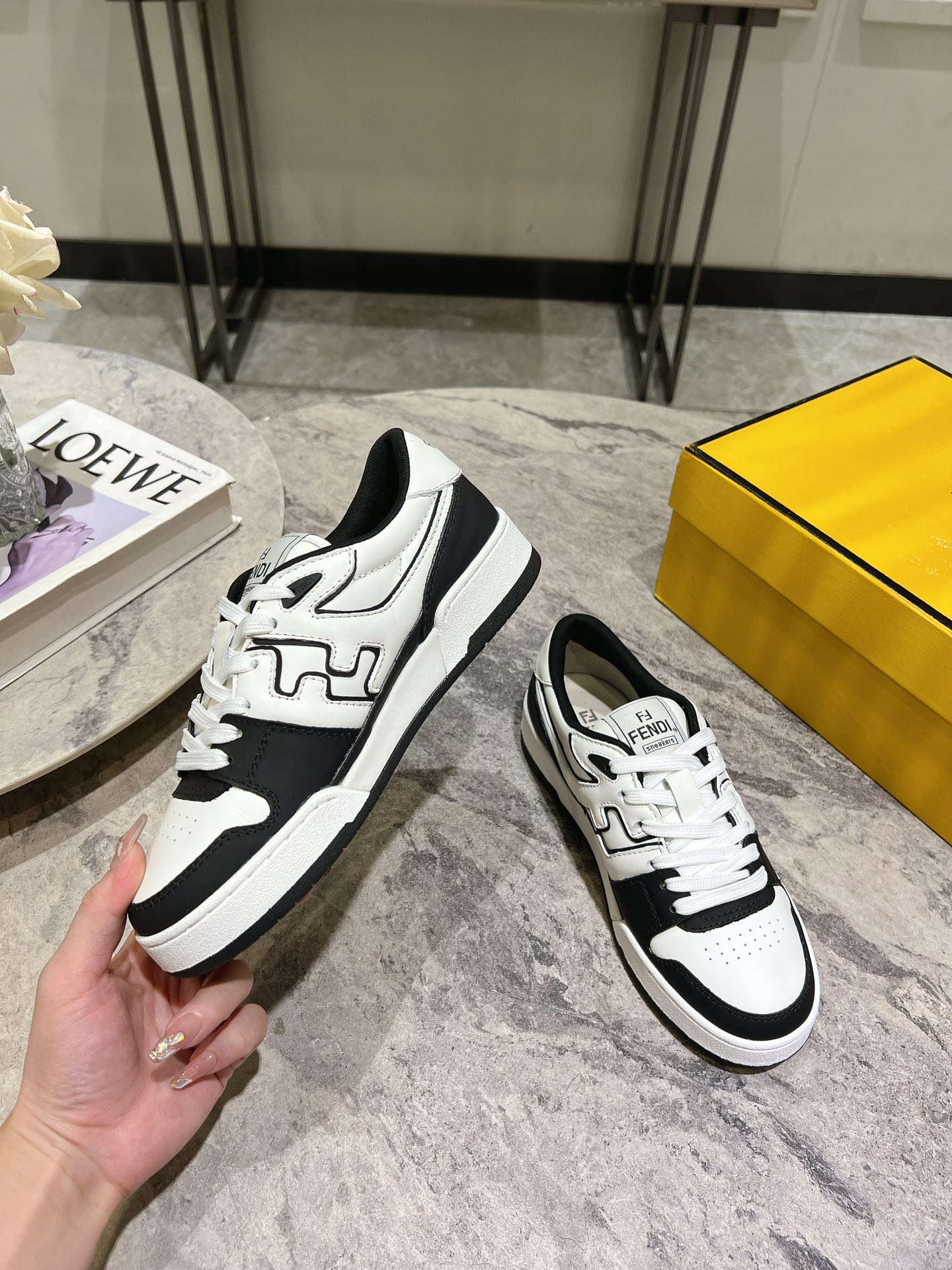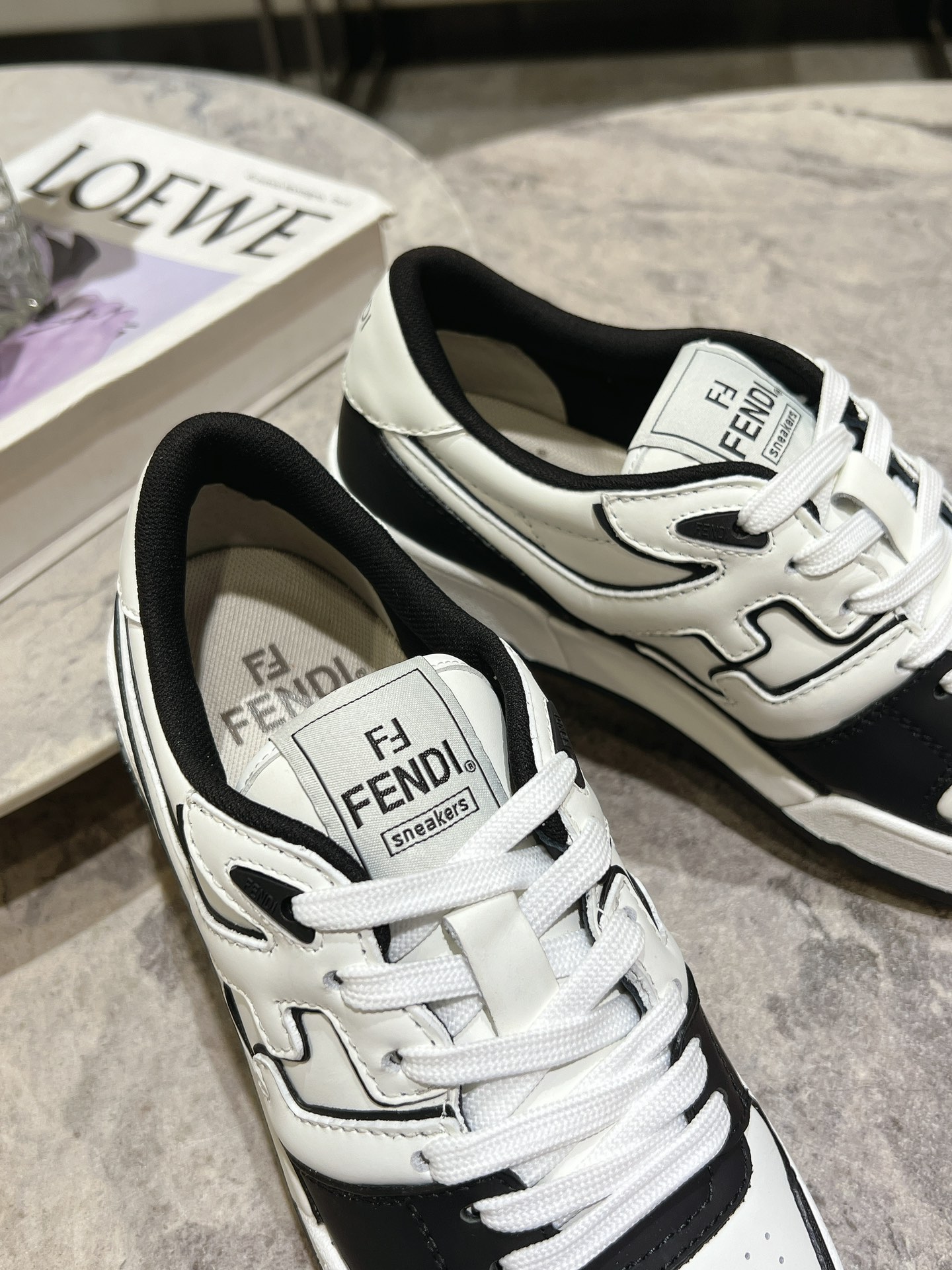 這款鞋子是AAAAA 1:1 質量(非常棒). 使用了和原版一模一樣的材料. 商標部分也保持了和芬迪/Fendi一樣. 圖片拍攝是實物鞋子拍攝, 您所收到的實物保證和我們圖片一模一樣.