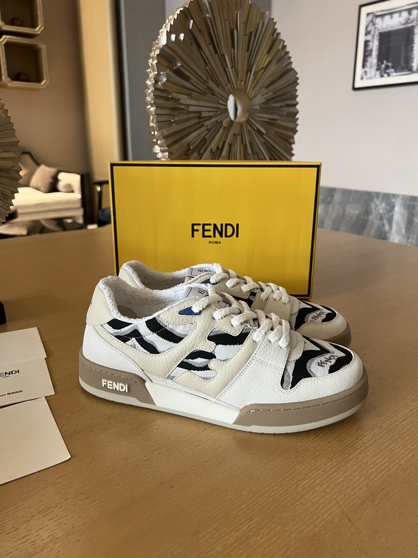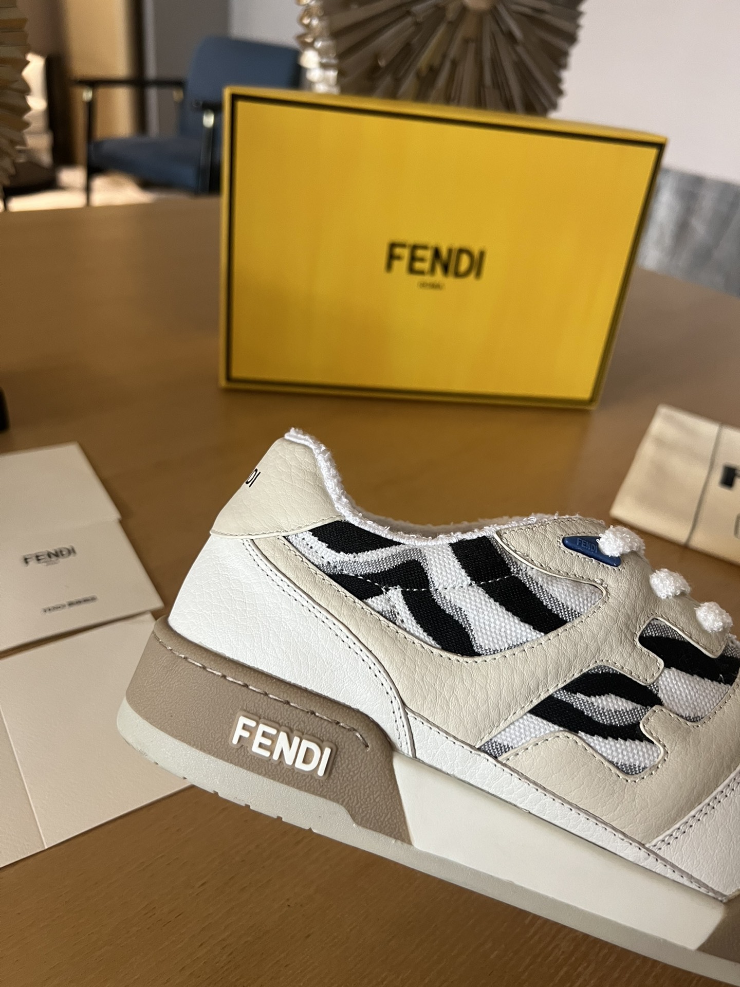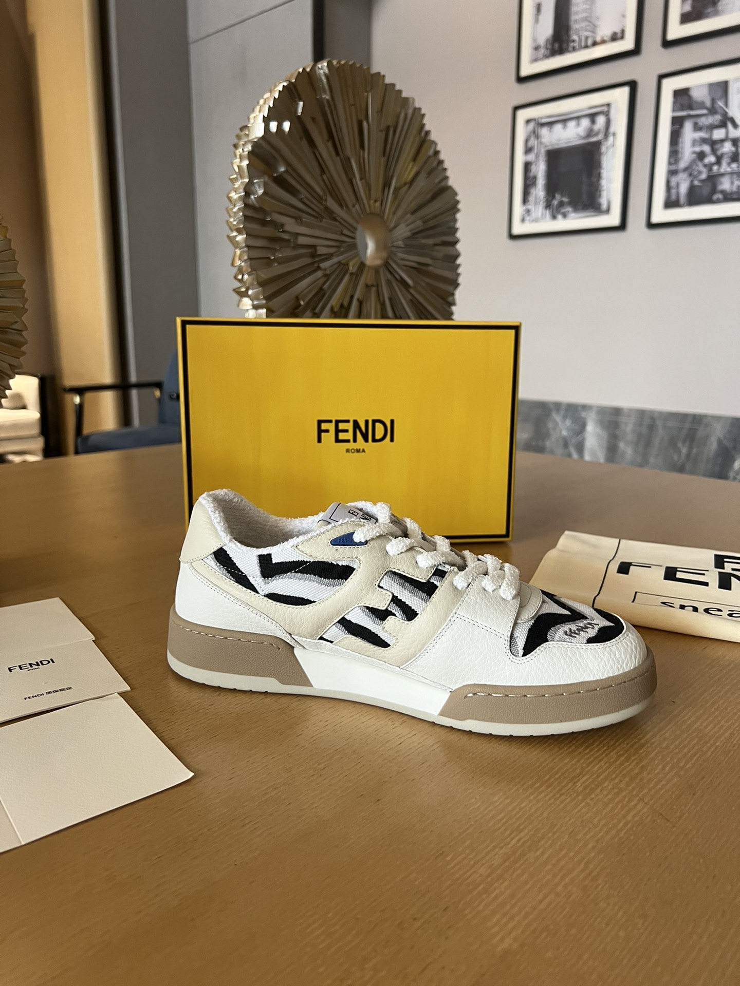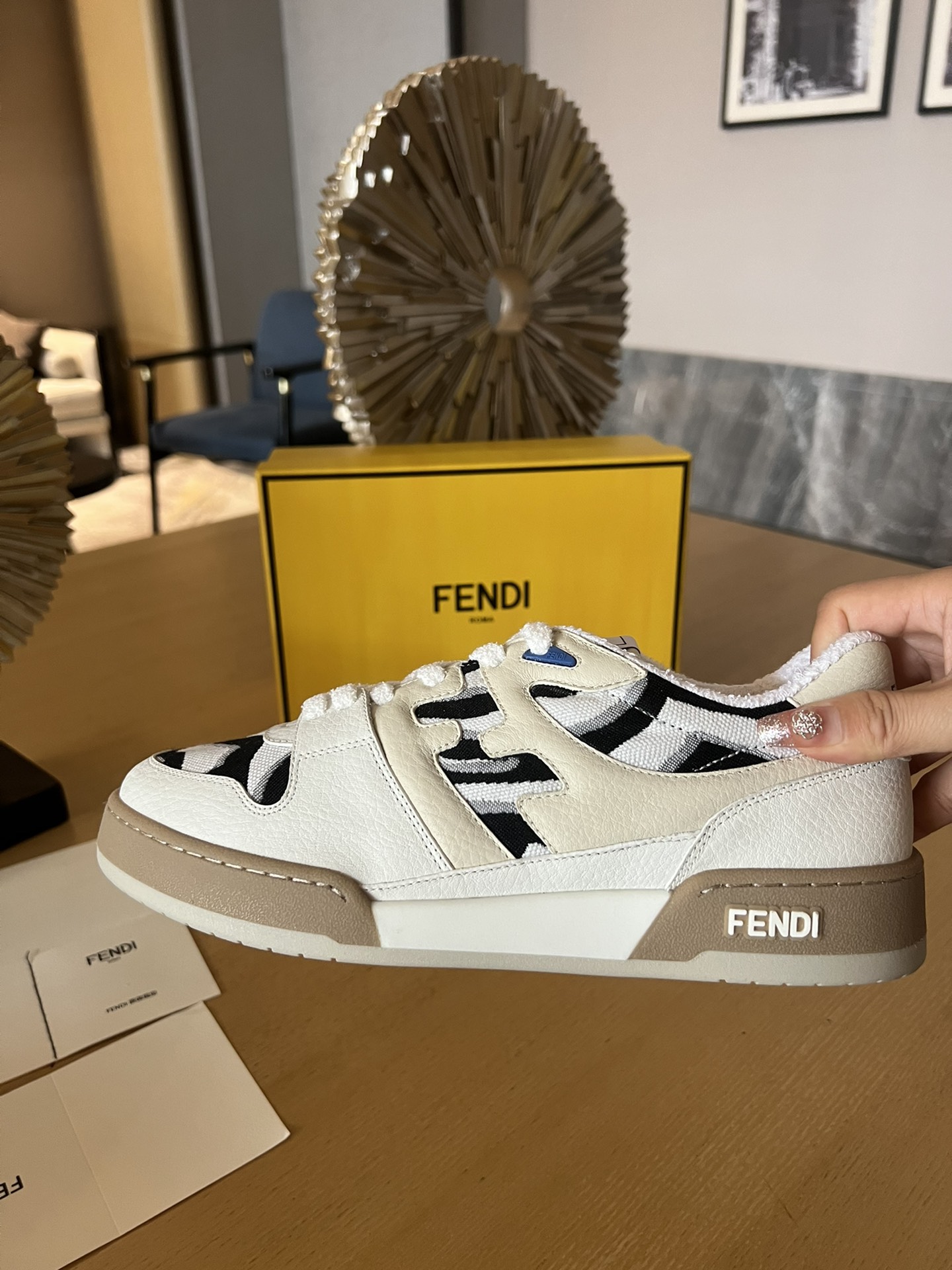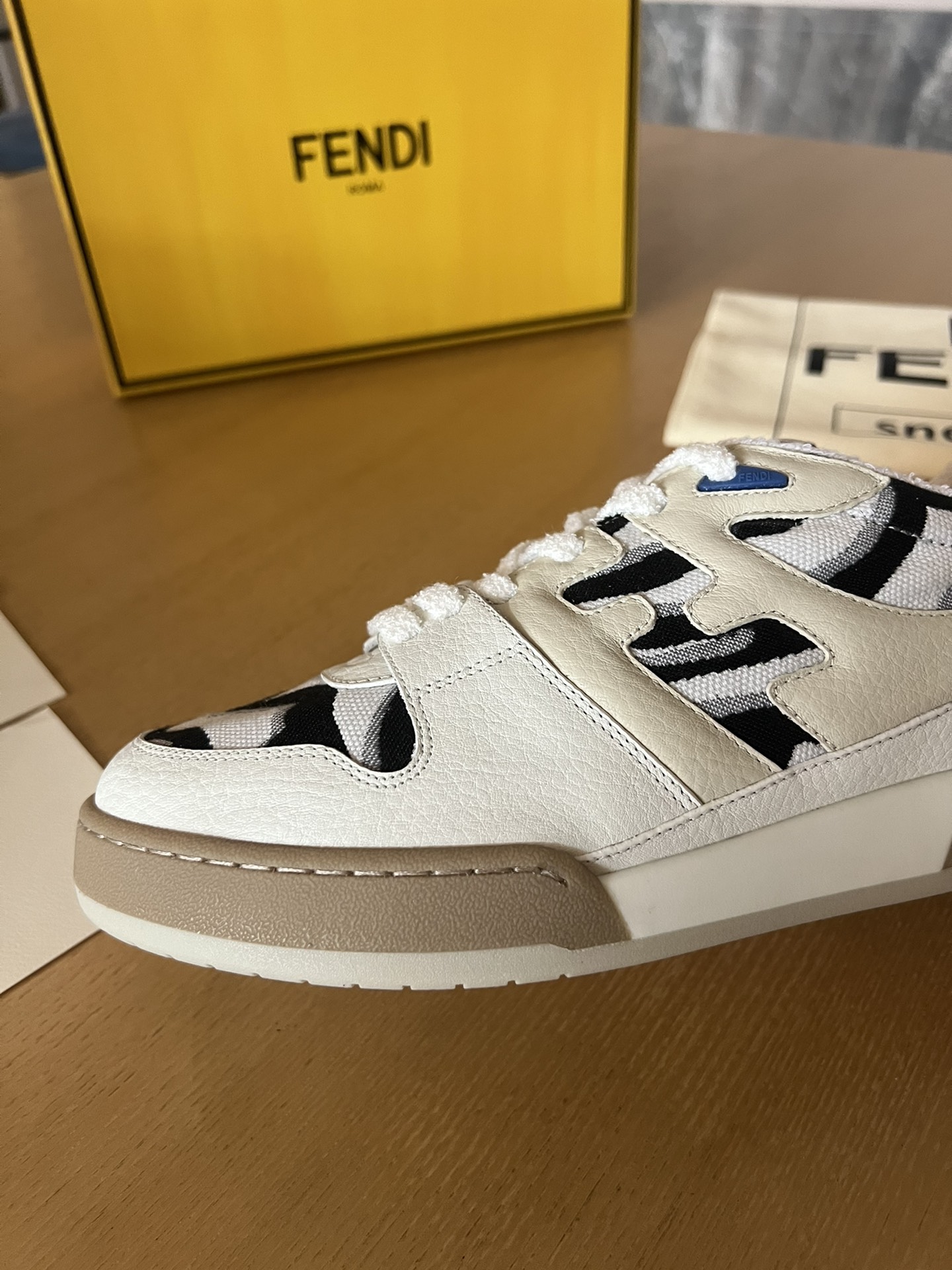 這款鞋子是AAAAA 1:1 質量(非常棒). 使用了和原版一模一樣的材料. 商標部分也保持了和芬迪/Fendi一樣. 圖片拍攝是實物鞋子拍攝, 您所收到的實物保證和我們圖片一模一樣.