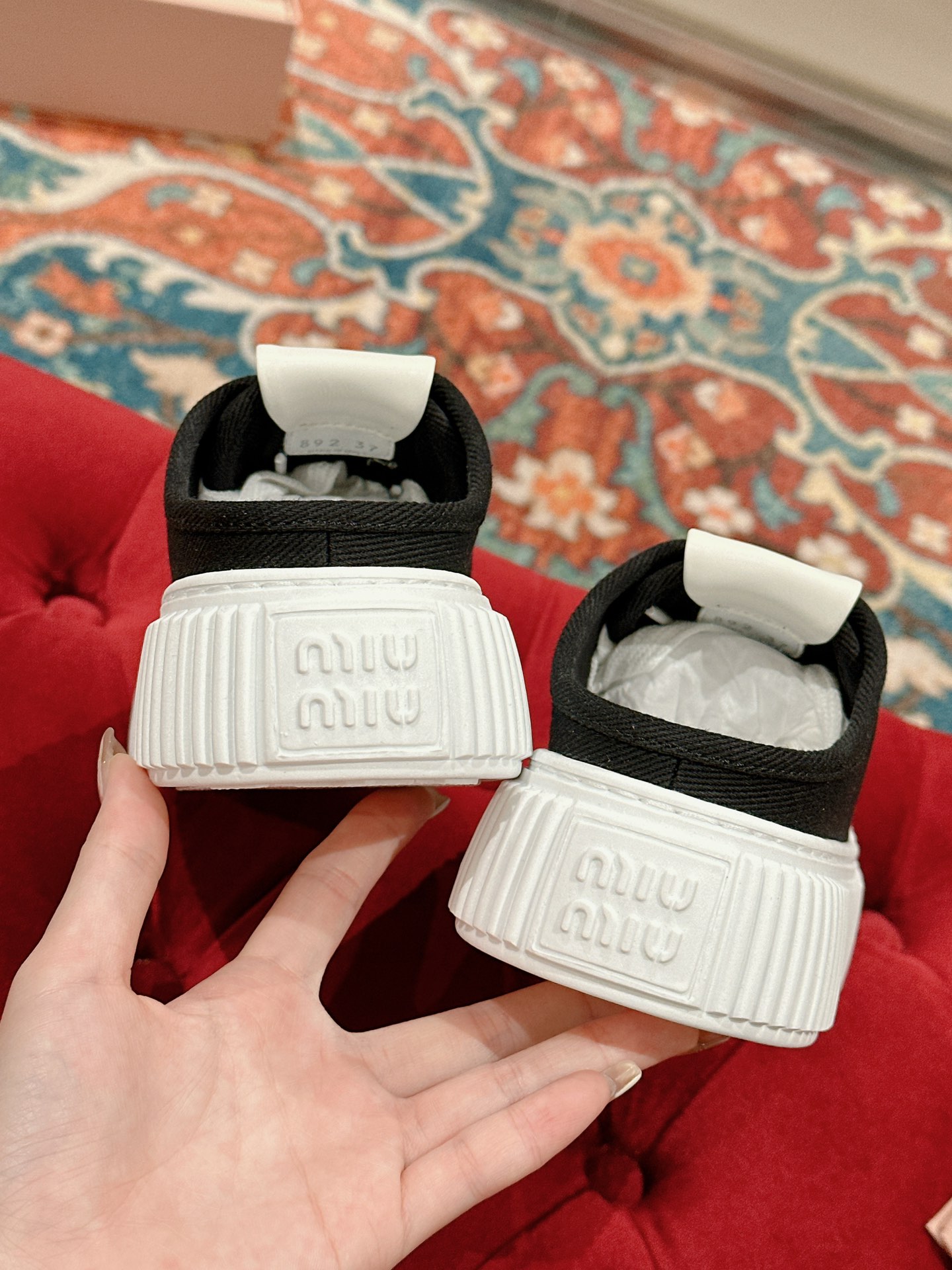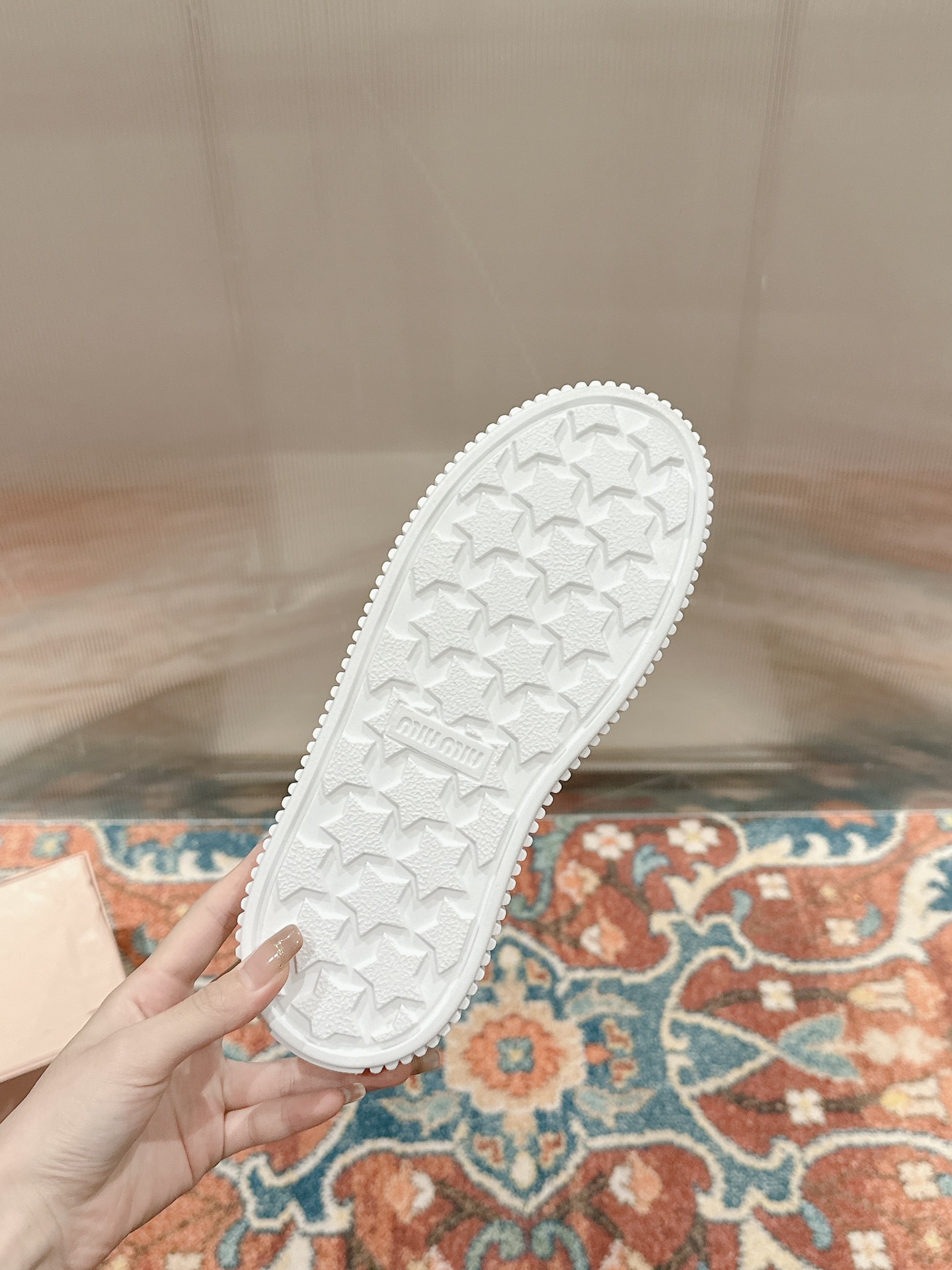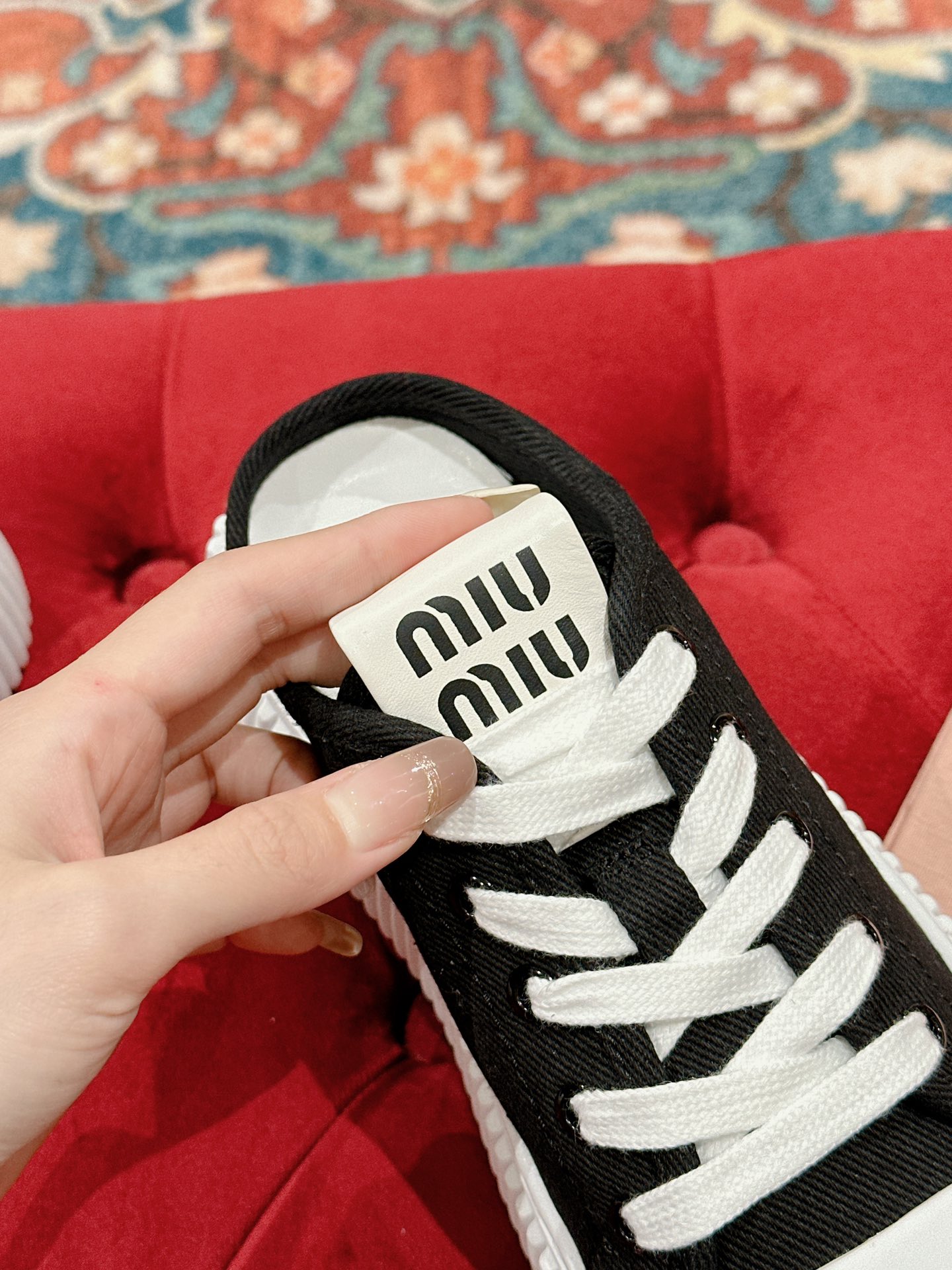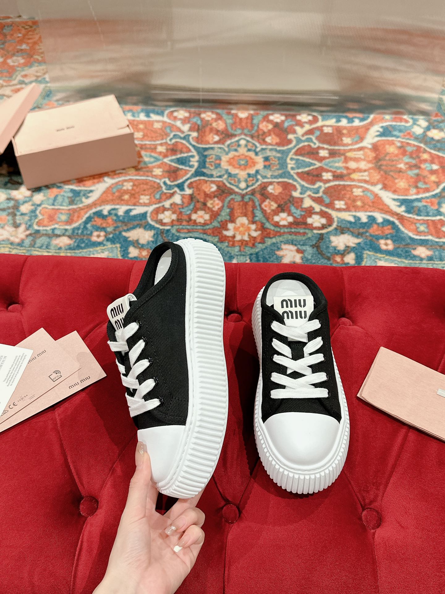 這款鞋子是AAAAA 1:1 質量(非常棒). 使用了和原版一模一樣的材料. 商標部分也保持了和繆繆/Miu Miu一樣. 圖片拍攝是實物鞋子拍攝, 您所收到的實物保證和我們圖片一模一樣.