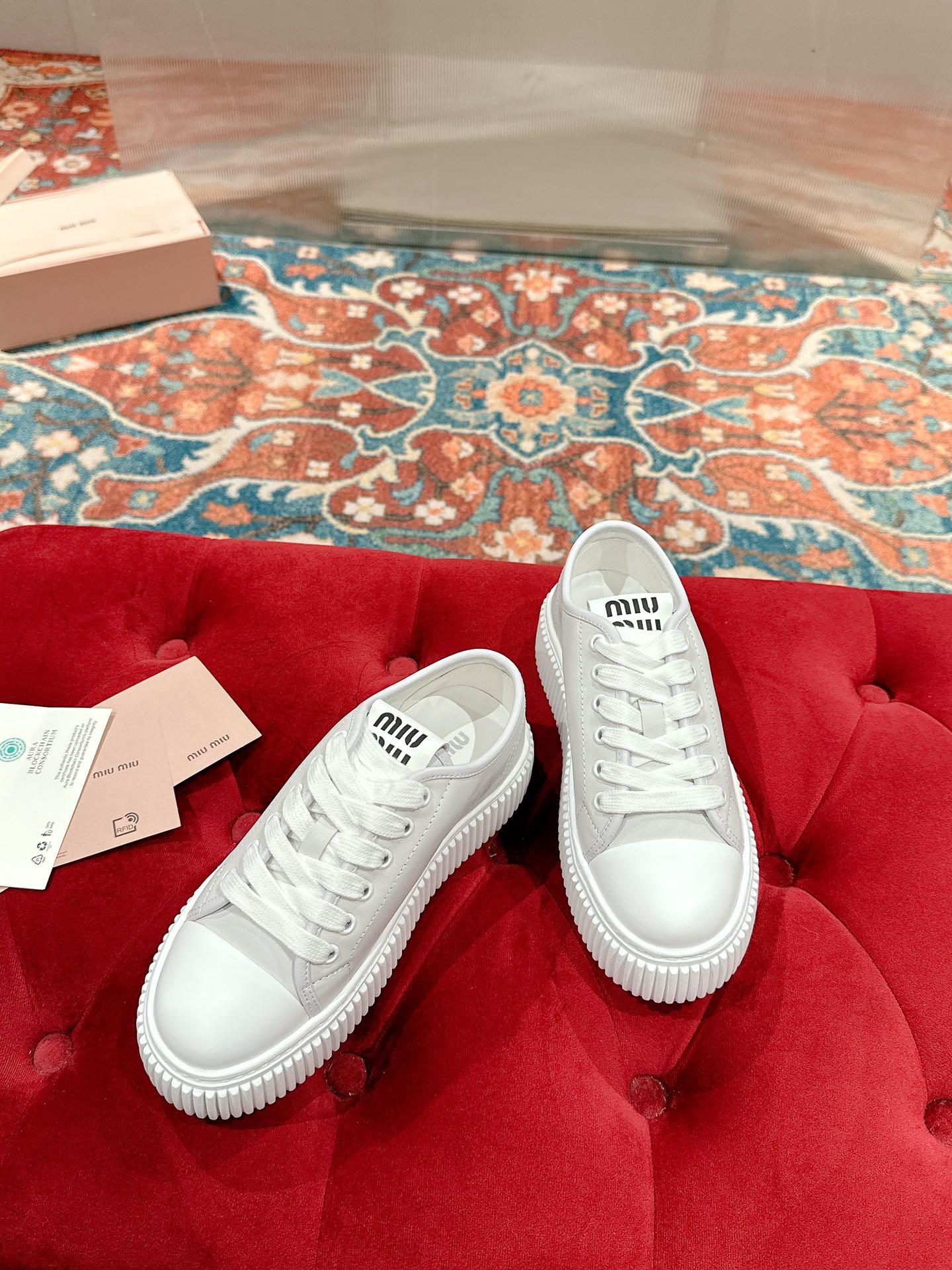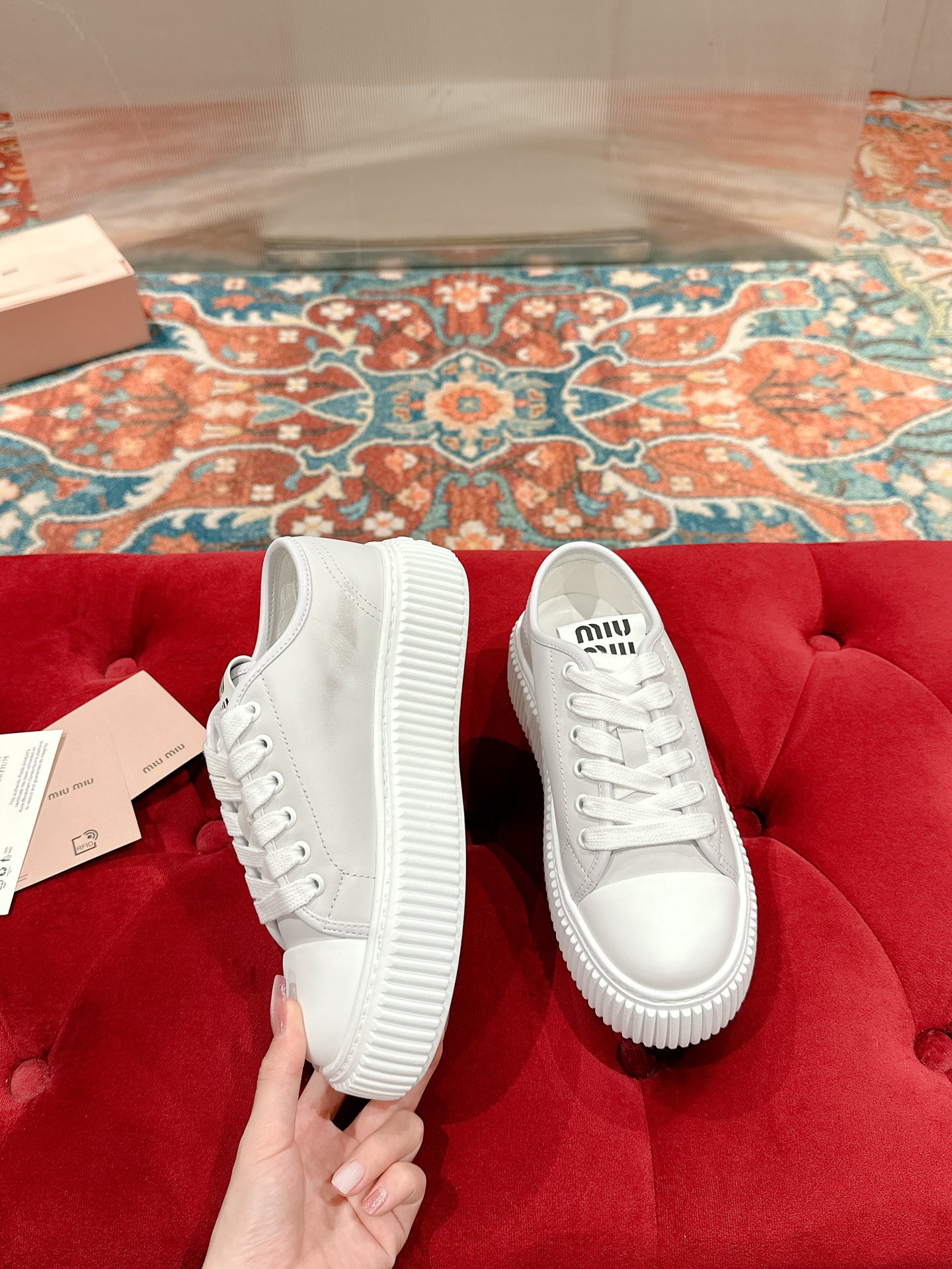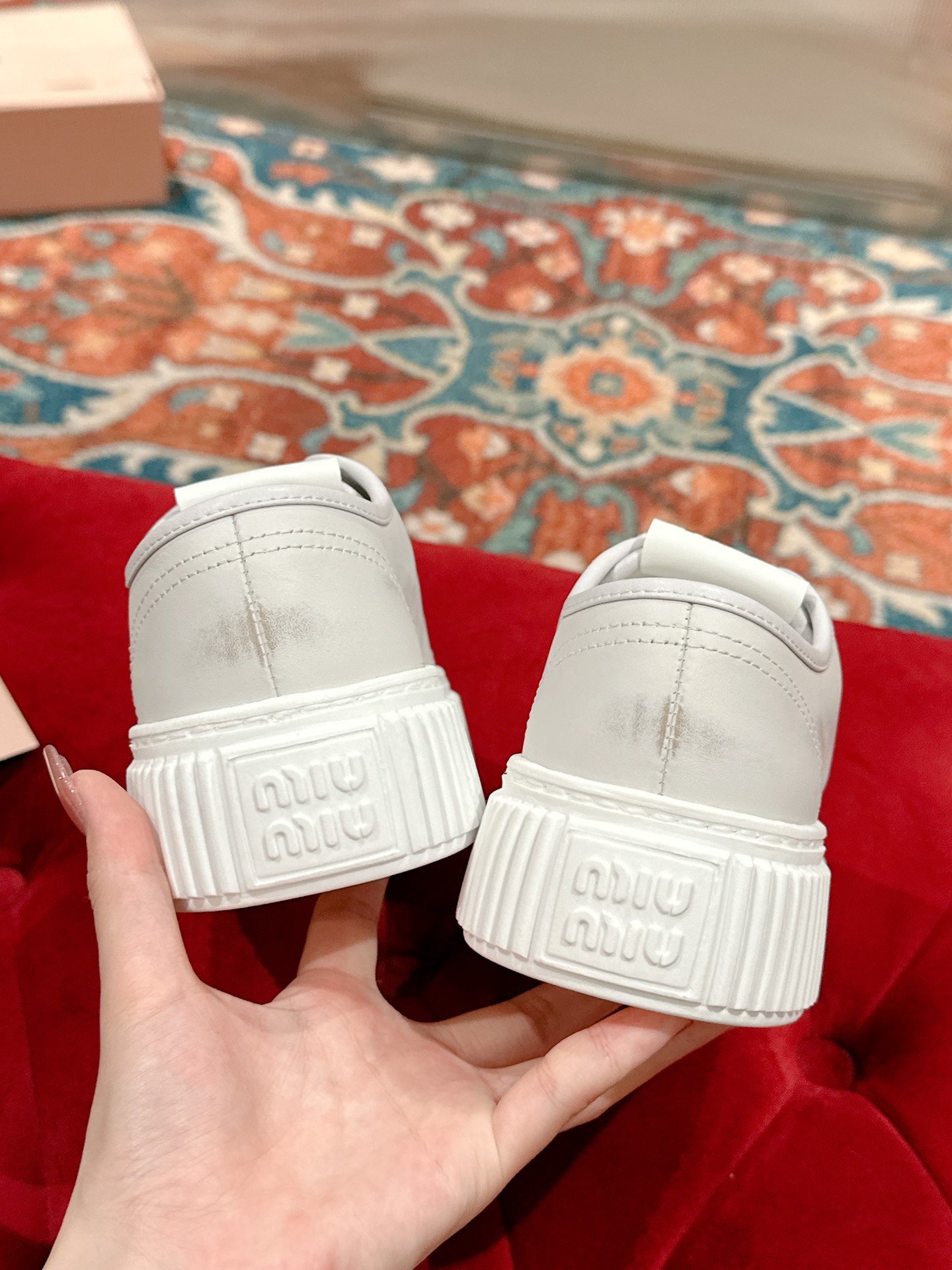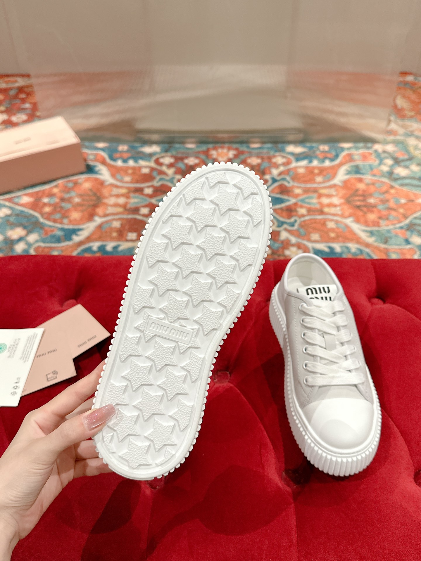 這款鞋子是AAAAA 1:1 質量(非常棒). 使用了和原版一模一樣的材料. 商標部分也保持了和繆繆/Miu Miu一樣. 圖片拍攝是實物鞋子拍攝, 您所收到的實物保證和我們圖片一模一樣.