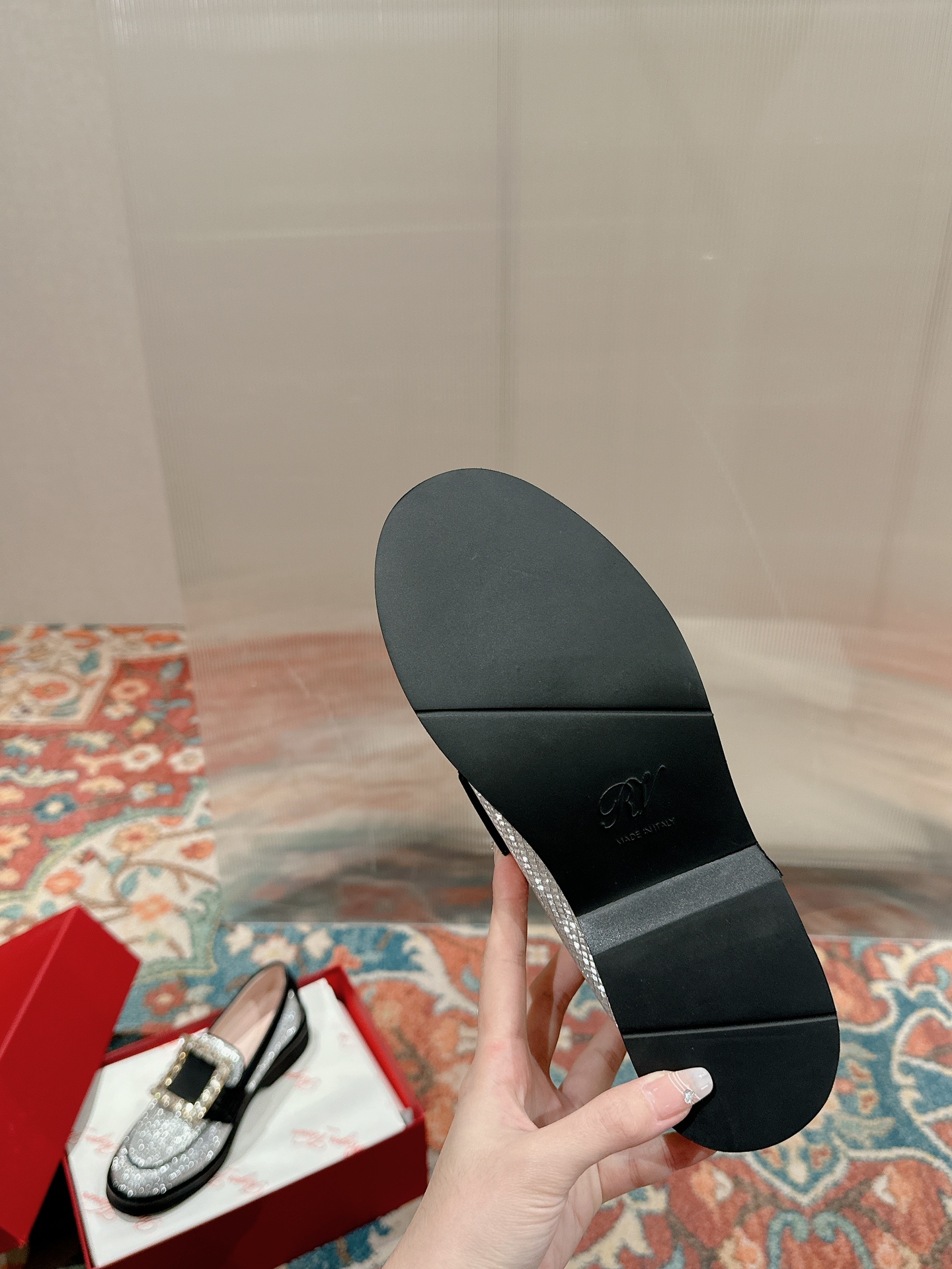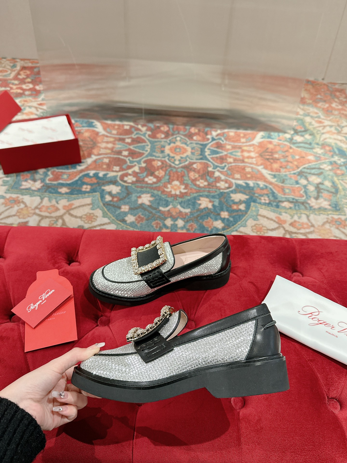 這款鞋子是AAAAA 1:1 質量(非常棒). 使用了和原版一模一樣的材料. 商標部分也保持了和施華洛世奇/Swarovski一樣. 圖片拍攝是實物鞋子拍攝, 您所收到的實物保證和我們圖片一模一樣.