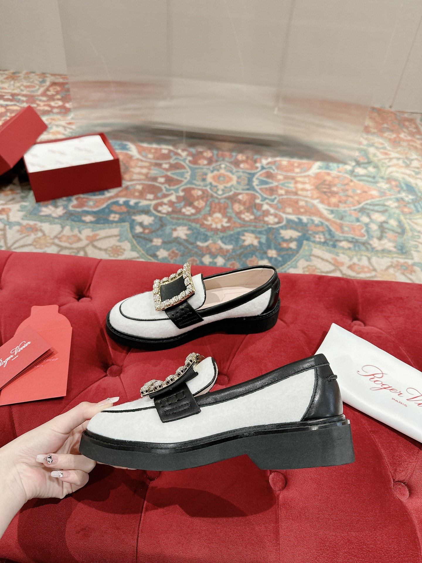 這款鞋子是AAAAA 1:1 質量(非常棒). 使用了和原版一模一樣的材料. 商標部分也保持了和施華洛世奇/Swarovski一樣. 圖片拍攝是實物鞋子拍攝, 您所收到的實物保證和我們圖片一模一樣.