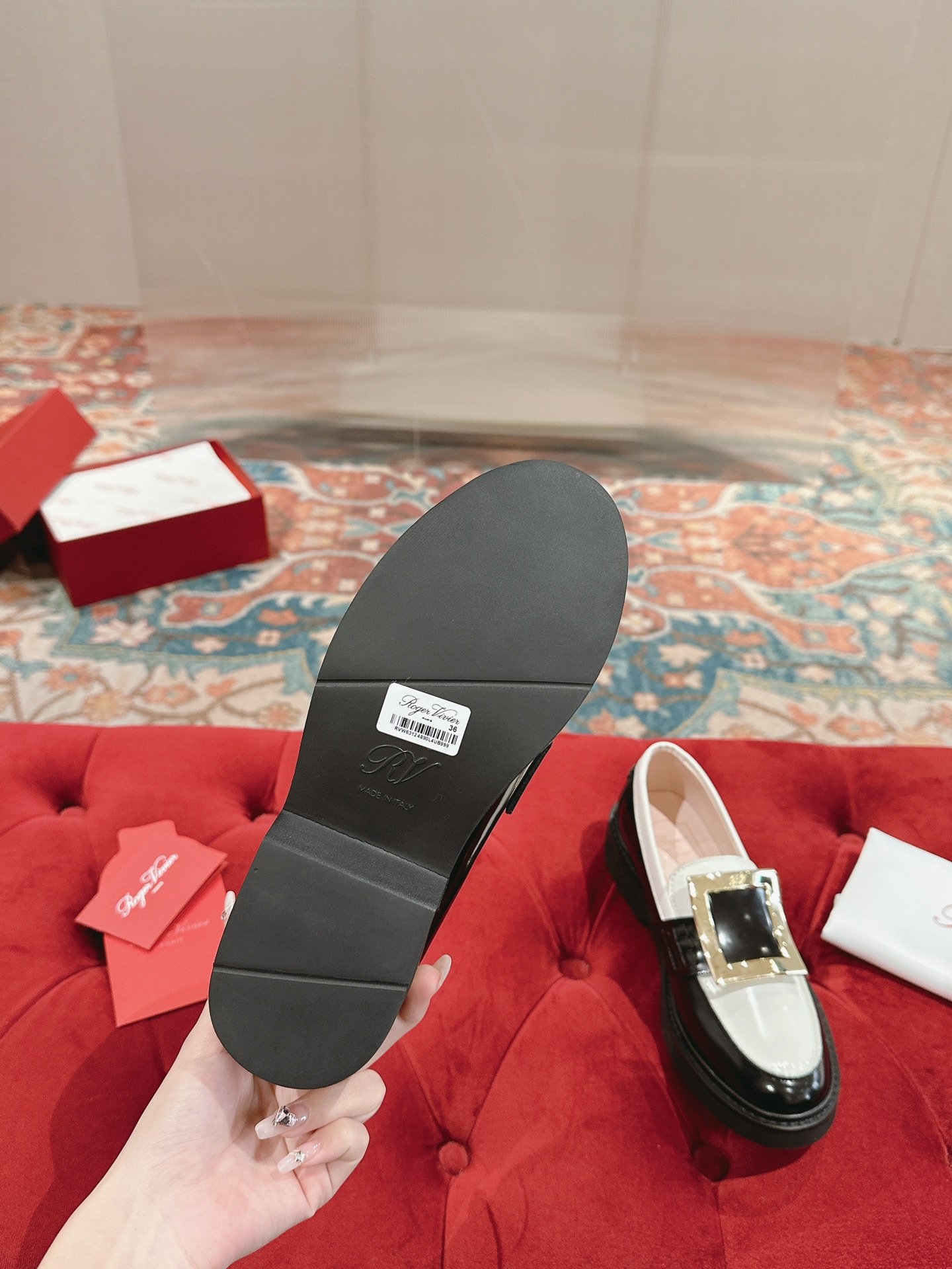 這款鞋子是AAAAA 1:1 質量(非常棒). 使用了和原版一模一樣的材料. 商標部分也保持了和施華洛世奇/Swarovski一樣. 圖片拍攝是實物鞋子拍攝, 您所收到的實物保證和我們圖片一模一樣.