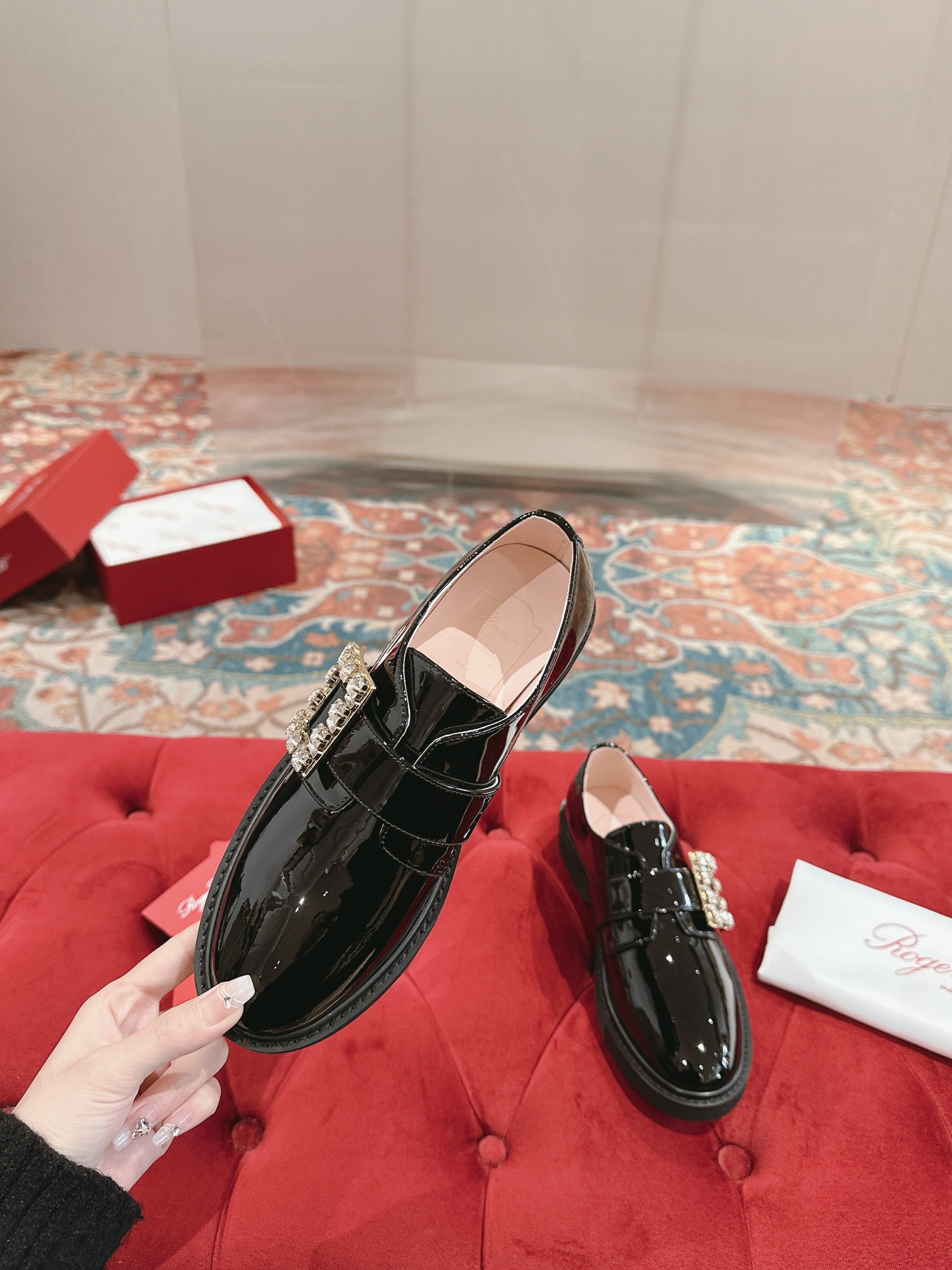 這款鞋子是AAAAA 1:1 質量(非常棒). 使用了和原版一模一樣的材料. 商標部分也保持了和施華洛世奇/Swarovski一樣. 圖片拍攝是實物鞋子拍攝, 您所收到的實物保證和我們圖片一模一樣.