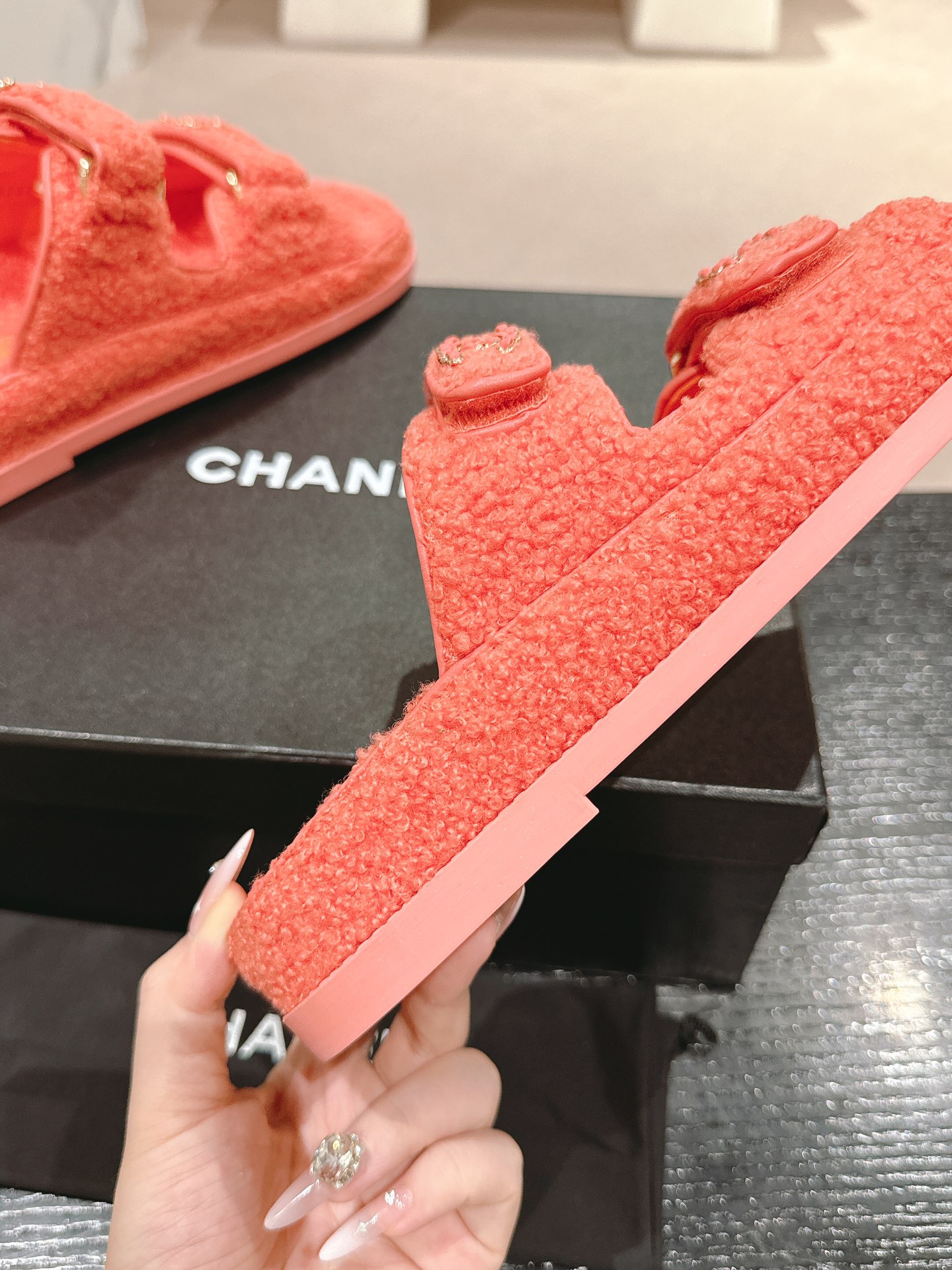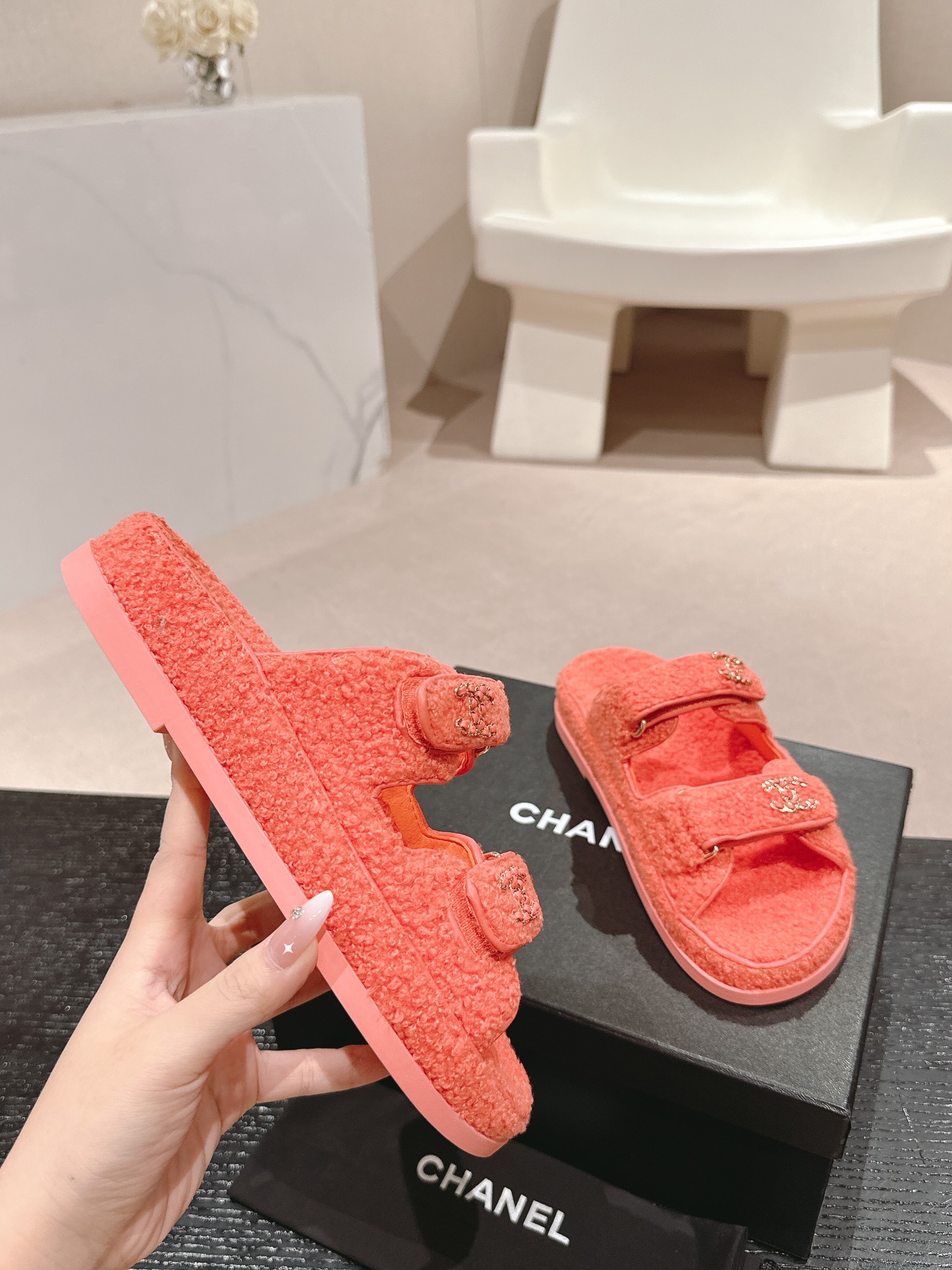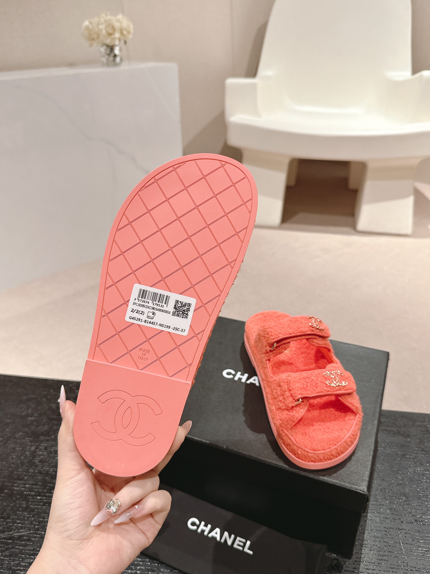這款鞋子是AAAAA 1:1 質量(非常棒). 使用了和原版一模一樣的材料. 商標部分也保持了和香奈兒/Chanel一樣. 圖片拍攝是實物鞋子拍攝, 您所收到的實物保證和我們圖片一模一樣.