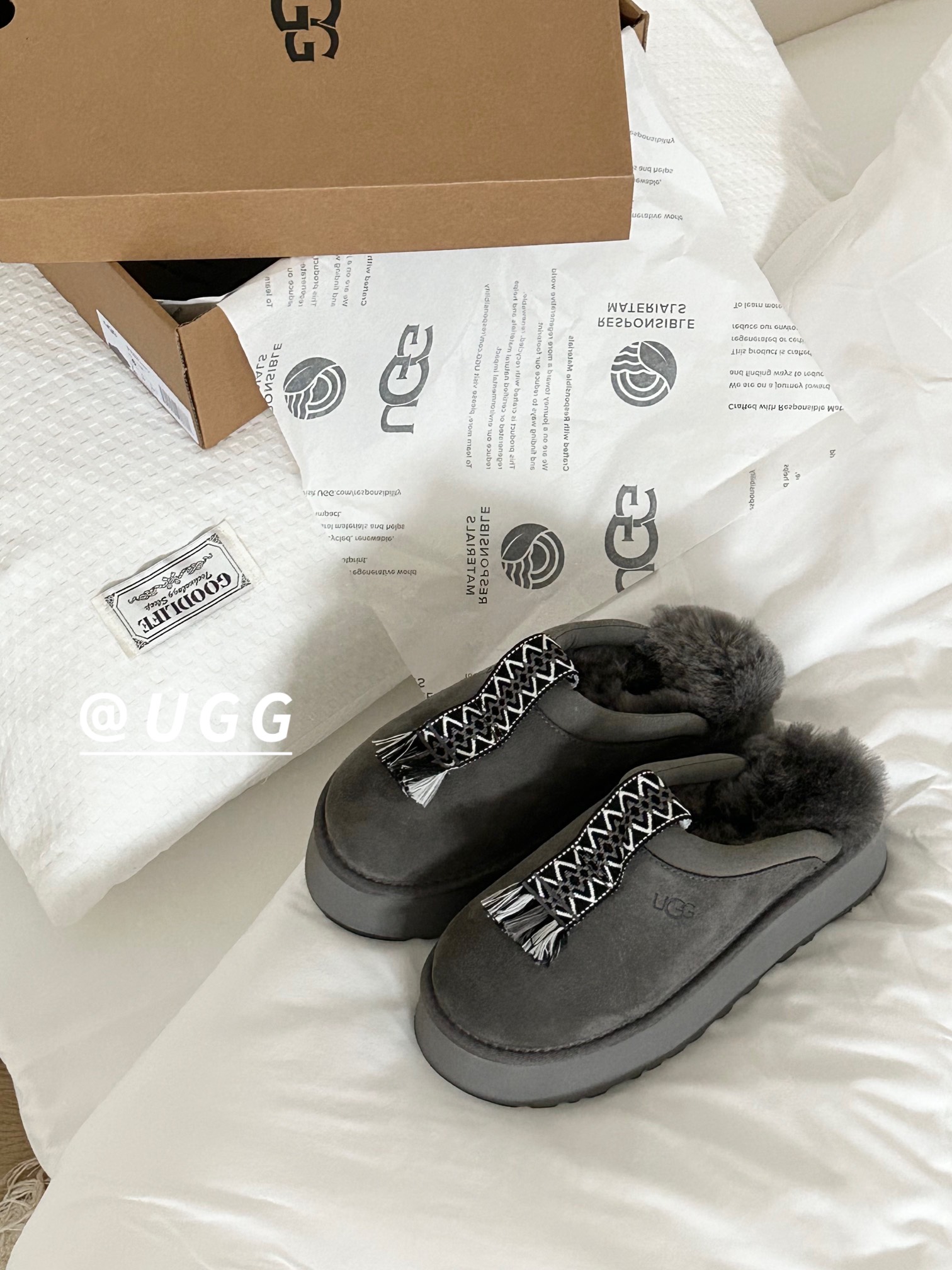 這款鞋子是AAAAA 1:1 質量(非常棒). 使用了和原版一模一樣的材料. 商標部分也保持了和UGG一樣. 圖片拍攝是實物鞋子拍攝, 您所收到的實物保證和我們圖片一模一樣.