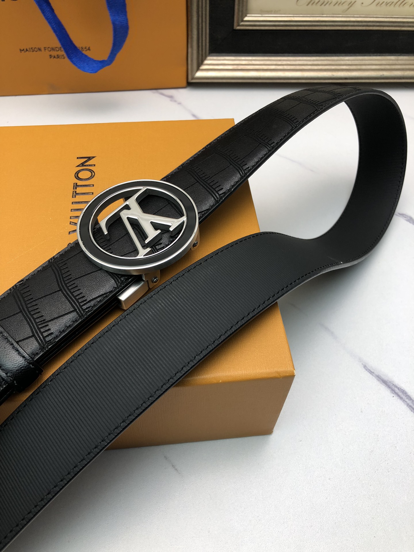 這款皮帶是AAAAA 1:1 質量(非常棒). 使用了和原版一模一樣的材料. 商標部分也保持了和一樣. 圖片拍攝是實物皮帶拍攝, 您所收到的實物保證和我們圖片一模一樣.