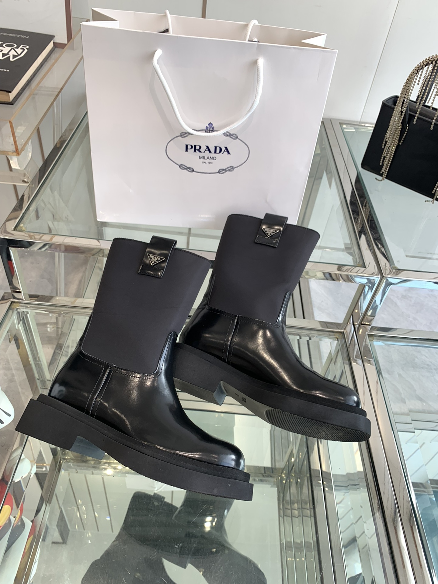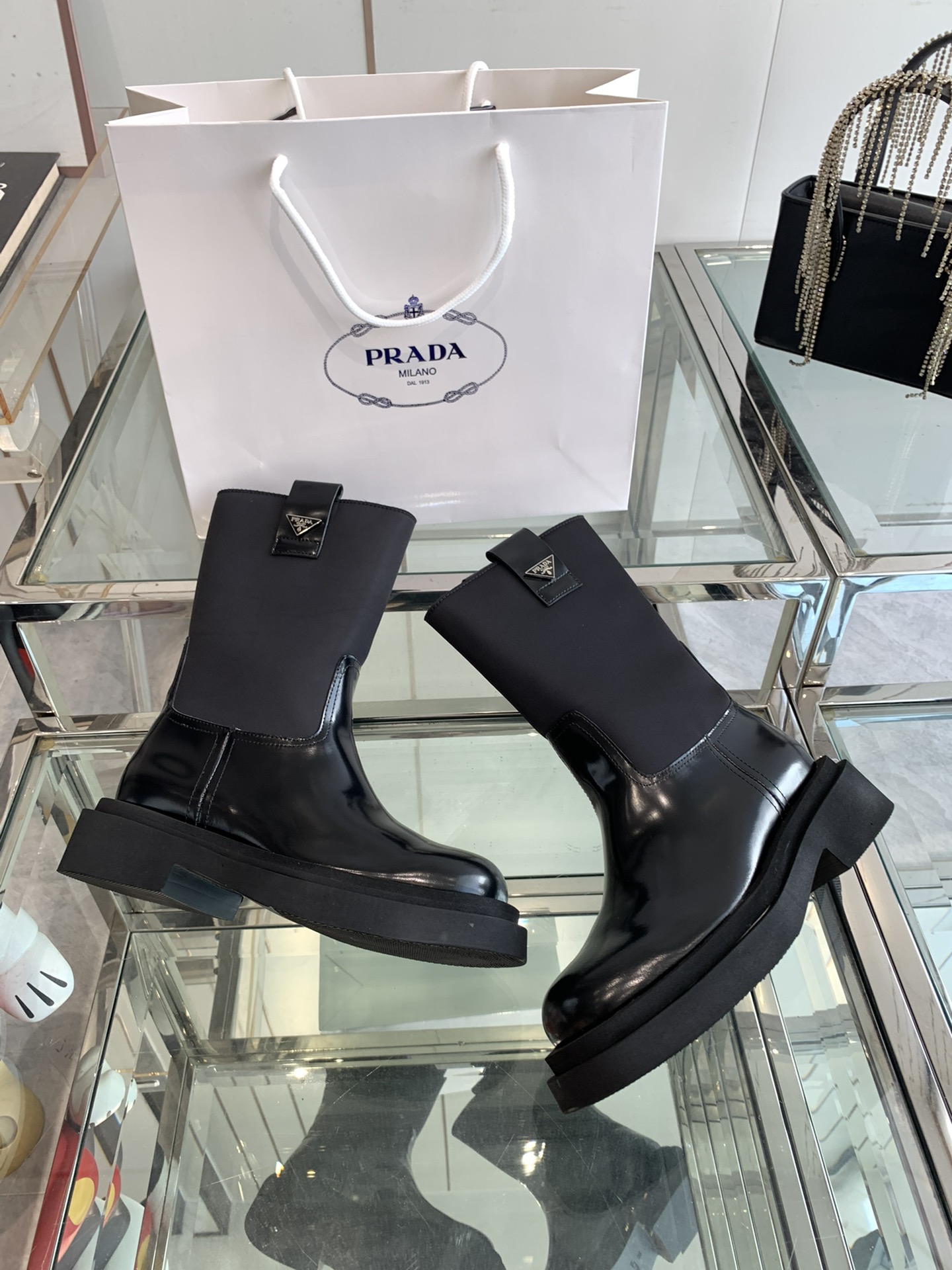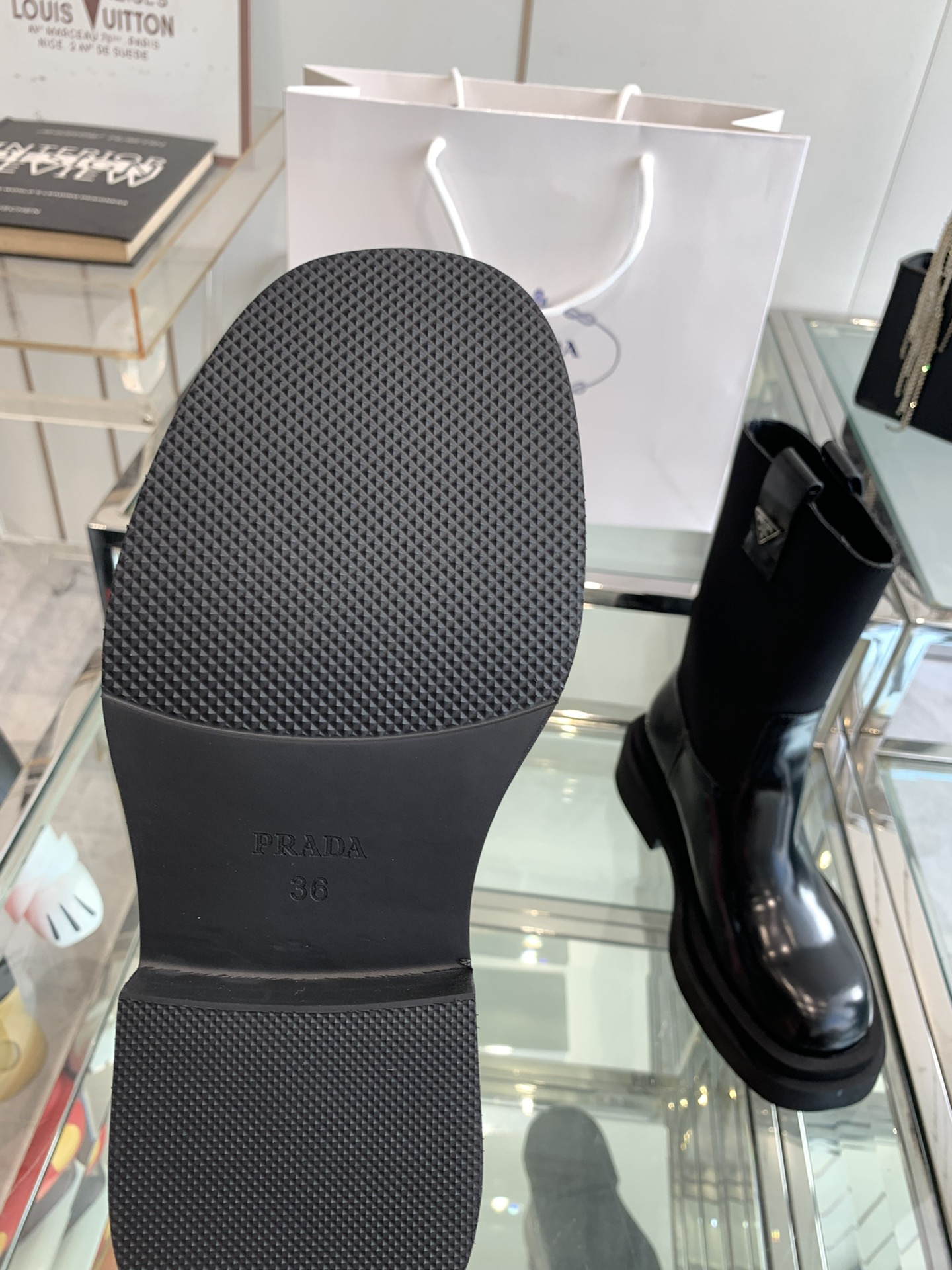 這款鞋子是AAAAA 1:1 質量(非常棒). 使用了和原版一模一樣的材料. 商標部分也保持了和普拉達/Prada一樣. 圖片拍攝是實物鞋子拍攝, 您所收到的實物保證和我們圖片一模一樣.