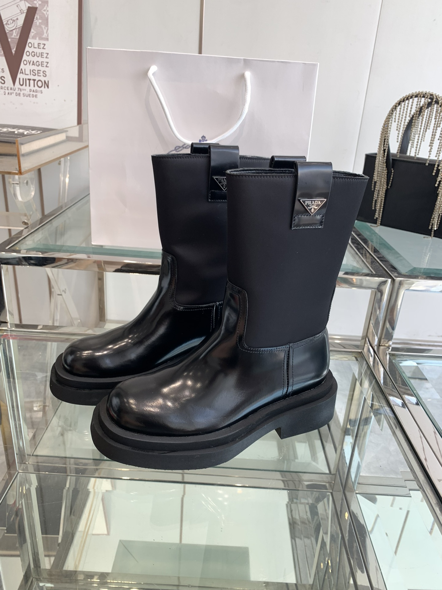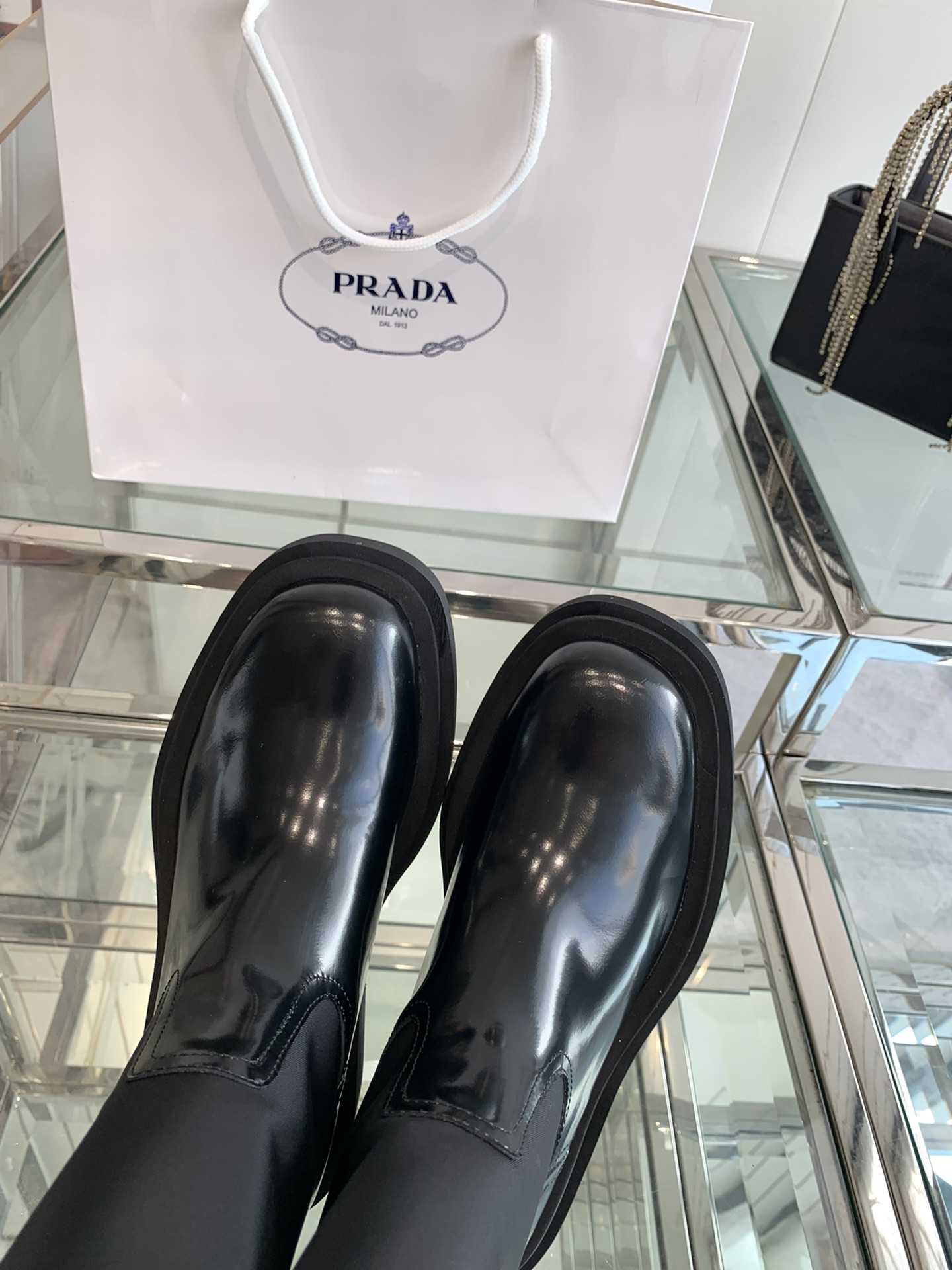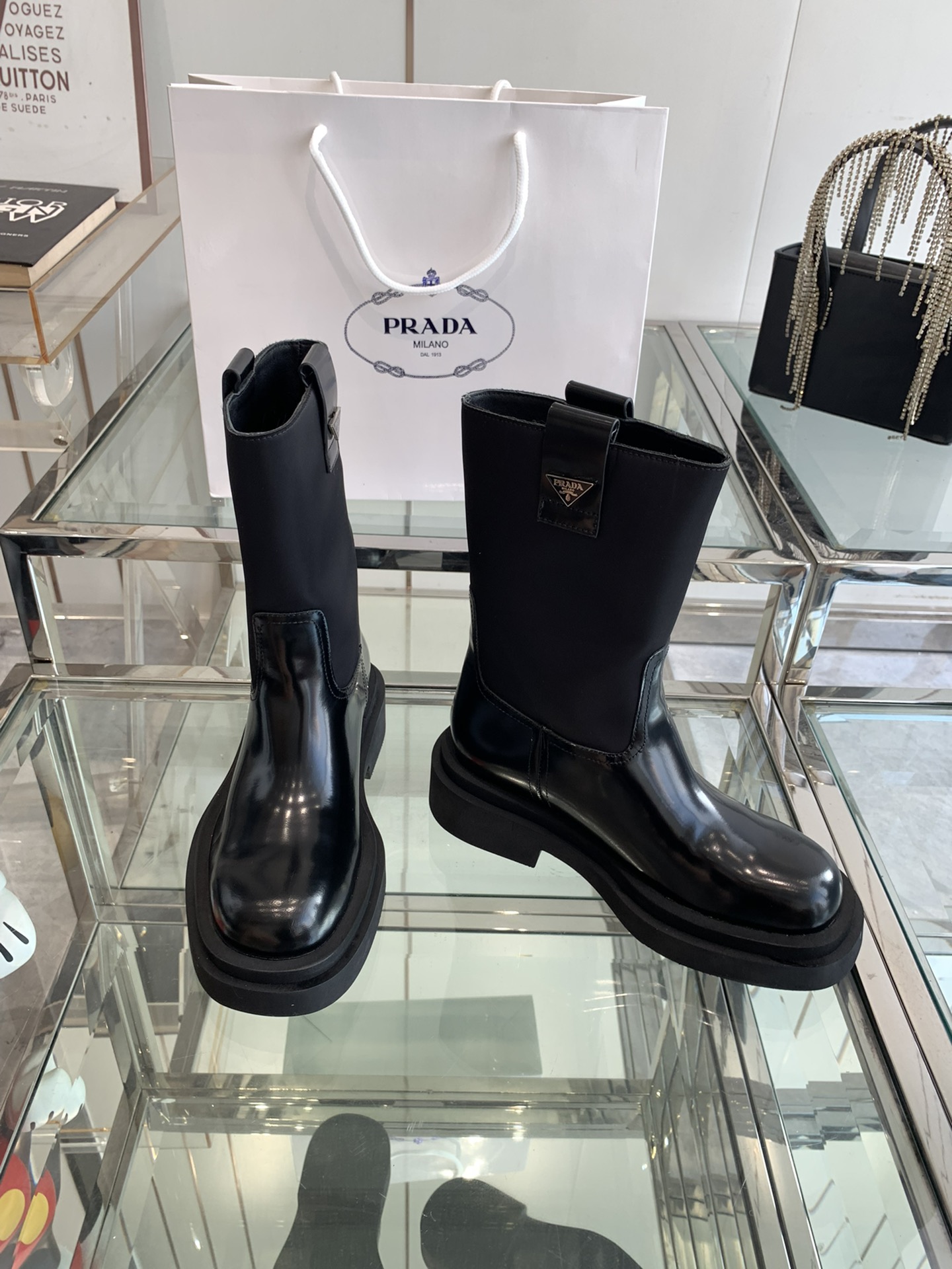 這款鞋子是AAAAA 1:1 質量(非常棒). 使用了和原版一模一樣的材料. 商標部分也保持了和普拉達/Prada一樣. 圖片拍攝是實物鞋子拍攝, 您所收到的實物保證和我們圖片一模一樣.